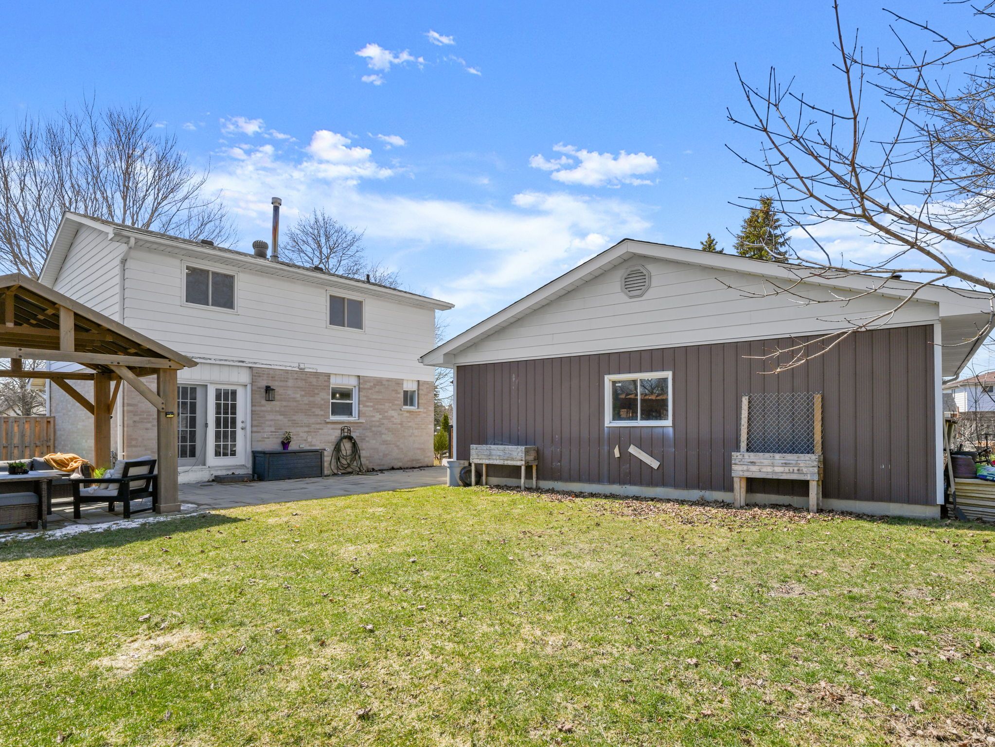 Welcome to this entertainer's dream! This impressive 4-bedroom home features a thoughtfully designed layout ideal for families and hosting alike. The beautifully renovated kitchen showcases quartz countertops, a stylish backsplash, and professionally painted cabinetry, all seamlessly connected to the dining area with patio doors leading to the backyard - perfect for indoor-outdoor living. The main floor offers a spacious living room highlighted by a large bay window that floods the space with natural light. Downstairs, the finished basement expands your living spacewith a generous rec room, and ample storage - perfect for entertaining or relaxing. With a full bathroom on both the upper level and in thebasement, plus a convenient powder room on the main floor, comfort and convenience are built in. Step outside and enjoy the backyard, featuring a beautiful patio with gazebo and a generous green space ideal for kids and pets to play. Car enthusiasts, hobbyists, or anyone in needof extra workspace will be blown away by the show-stopping heated and insulated 2-car garage/shop. Additional highlights include newer shingles and furnace, both replaced within the last 2 years, offering peace of mind for years to come. With ample driveway parking and incredible indoor and outdoor living spaces, this home truly checks all the boxes. Don't miss your opportunity to own this exceptional property!