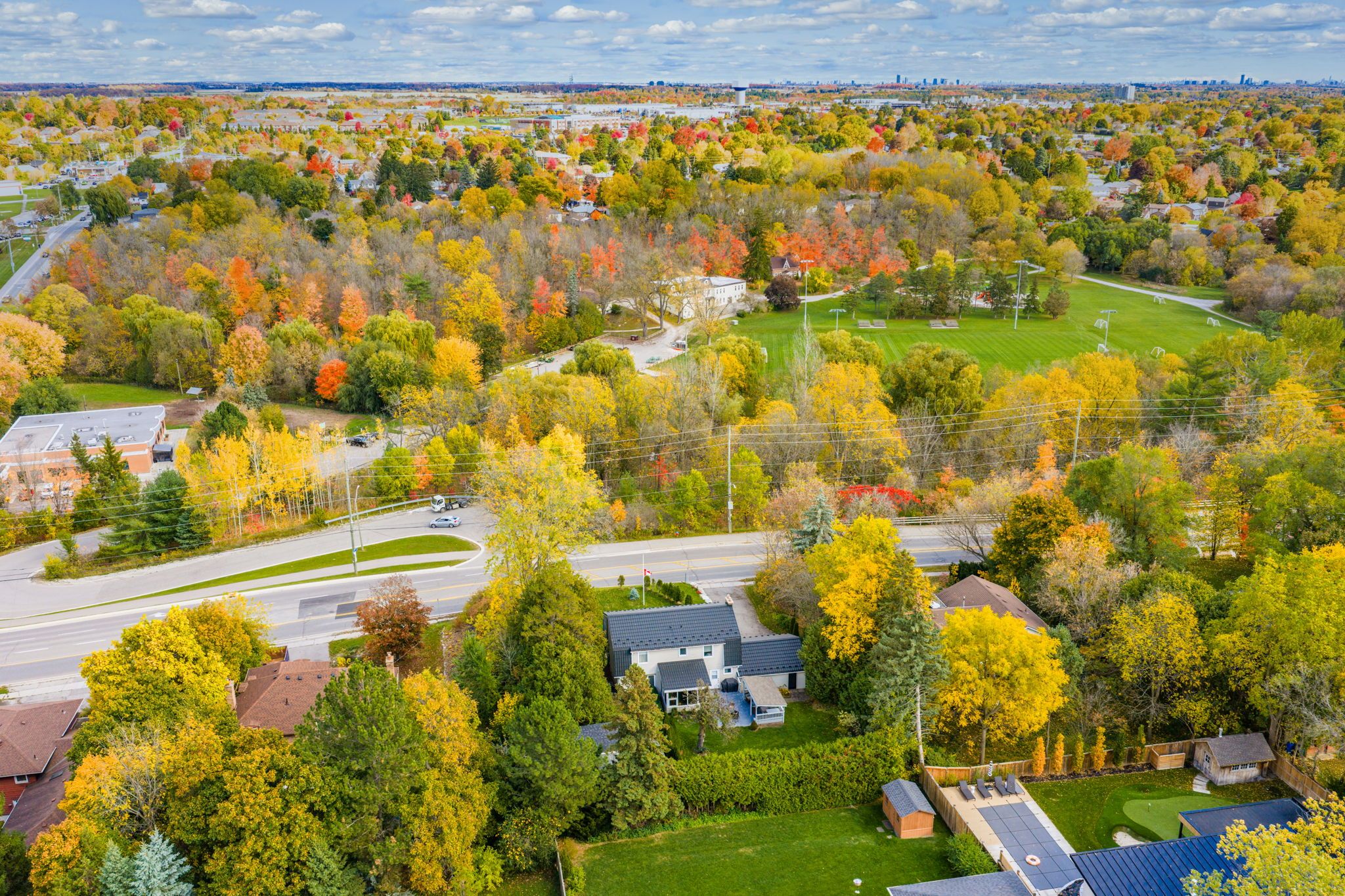 Sought after park district- extensively renovated! A huge, beautifully landscaped lot (. 298 acre) and private backyard oasis complete with a large partially covered deck, enclosed swim spa (year-round enjoyment) and gorgeous mature grounds set the stage for this exceptional custom-built home. Inside, the meticulous, recently updated, interior showcases elegant quality finishes paired with a designer flair and attention to detail a winning combination! The modern kitchen features heated ceramic tile flooring, quartz countertops, island, breakfast bar with striking waterfall edge, stainless steel appliances and two pantries. The kitchen opens to the dining room which flows into the living room, both rooms accented by striking wood-beamed ceilings and oversized windows that fill the space with natural light. Just off the kitchen, a bright four-season sunroom (heated ceramic floor) offers a tranquil retreat with walkout access to a partially covered deck ideal for seamless indoor-outdoor entertaining. The inviting family room features a cozy gas fireplace along with direct access to the main floor laundry room, powder room and attached garage, blending comfort with everyday practicality. A lovely wood staircase leads to the upper level, where four spacious bedrooms including three with spa-like ensuite bathrooms (all with heated ceramic tile flooring), offering comfort, privacy, and a touch of luxury. The finished lower level adds to the living space with a large recreation room, den/bedroom, office area, 3-piece bath and plenty of storage/utility space. Set on a breathtaking mature lot with a durable metal roof and excellent parking, this home blends timeless character with lasting quality. Ideally situated across from cedarvale park - home to the best tobogganing hill around and just minutes to schools, rec centre, hospital, library, downtown, go, trails and golf. A rare opportunity in a coveted location, perfect for commuters and families alike.