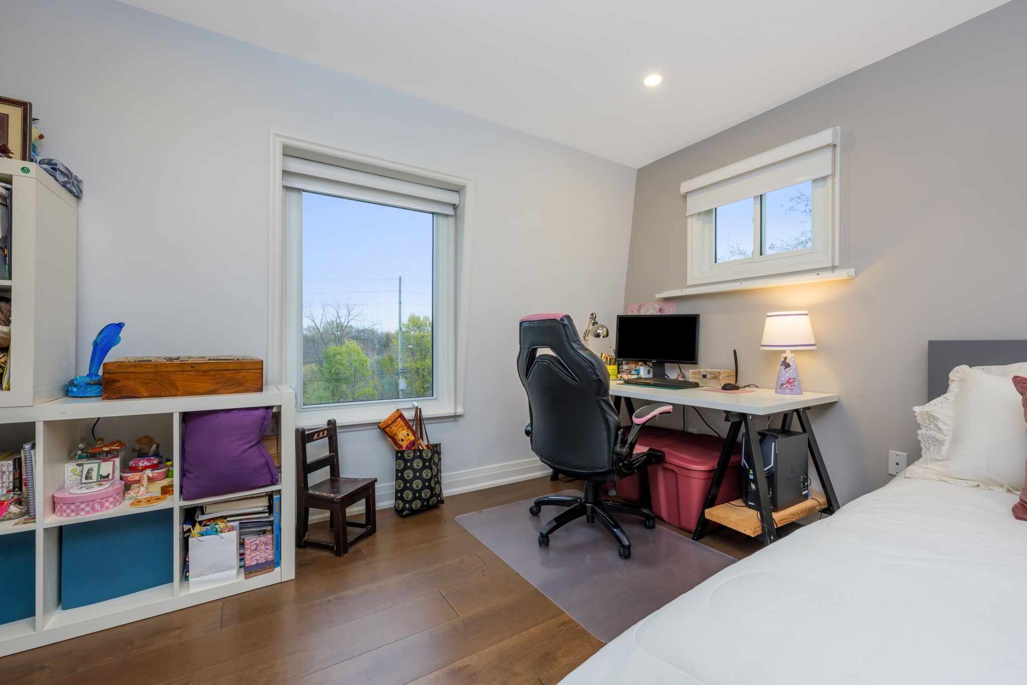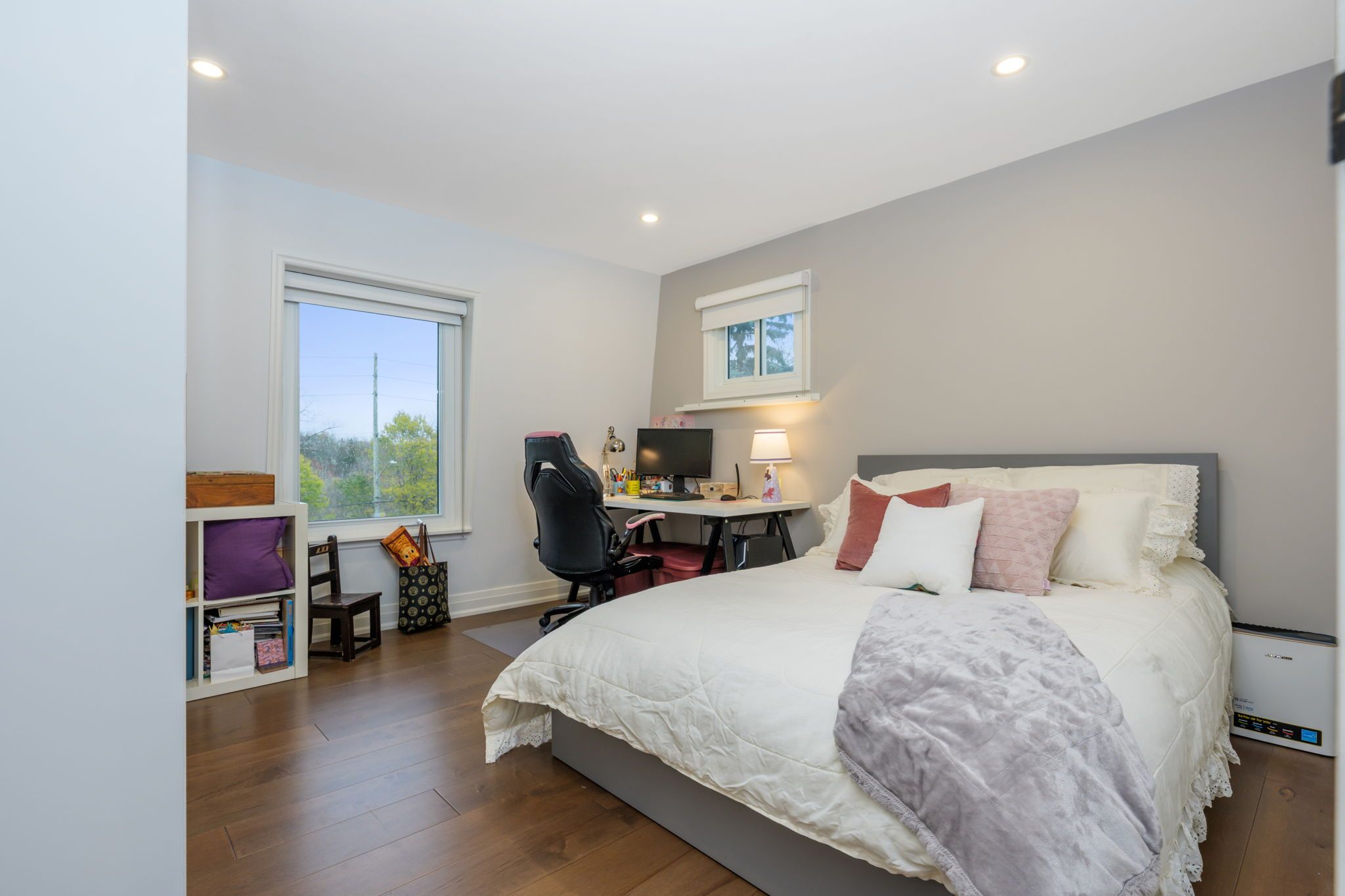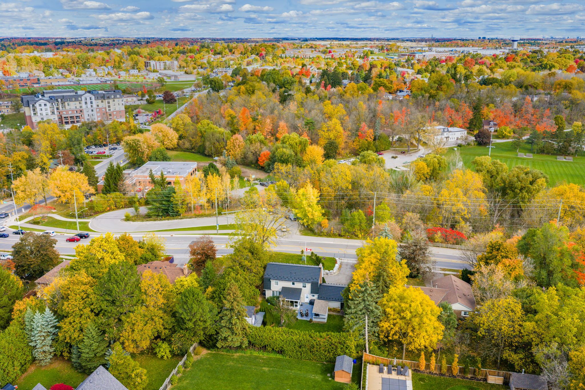 Sought after park district- extensively renovated! A huge, beautifully landscaped lot (. 298 acre) and private backyard oasis complete with a large partially covered deck, enclosed swim spa (year-round enjoyment) and gorgeous mature grounds set the stage for this exceptional custom-built home. Inside, the meticulous, recently updated, interior showcases elegant quality finishes paired with a designer flair and attention to detail a winning combination! The modern kitchen features heated ceramic tile flooring, quartz countertops, island, breakfast bar with striking waterfall edge, stainless steel appliances and two pantries. The kitchen opens to the dining room which flows into the living room, both rooms accented by striking wood-beamed ceilings and oversized windows that fill the space with natural light. Just off the kitchen, a bright four-season sunroom (heated ceramic floor) offers a tranquil retreat with walkout access to a partially covered deck ideal for seamless indoor-outdoor entertaining. The inviting family room features a cozy gas fireplace along with direct access to the main floor laundry room, powder room and attached garage, blending comfort with everyday practicality. A lovely wood staircase leads to the upper level, where four spacious bedrooms including three with spa-like ensuite bathrooms (all with heated ceramic tile flooring), offering comfort, privacy, and a touch of luxury. The finished lower level adds to the living space with a large recreation room, den/bedroom, office area, 3-piece bath and plenty of storage/utility space. Set on a breathtaking mature lot with a durable metal roof and excellent parking, this home blends timeless character with lasting quality. Ideally situated across from cedarvale park - home to the best tobogganing hill around and just minutes to schools, rec centre, hospital, library, downtown, go, trails and golf. A rare opportunity in a coveted location, perfect for commuters and families alike.
