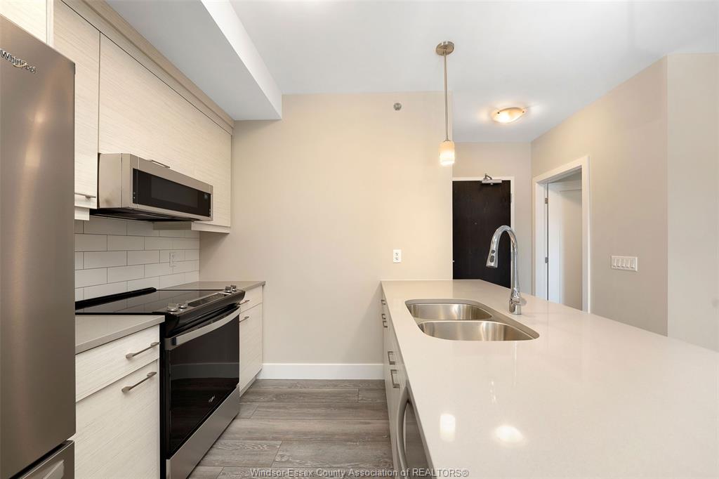 Welcome to this centrally located luxurious condo in the town of kingsville, canada's most southern town! Brand new, never occupied 2 bedroom unit featuring open concept kitchen, dining, and living rooms. Primary bedroom has walk-in closet and ensuite bath, in-suite laundry room, additional 4 piece bath, kitchen with quartz counters and private balcony with eastern views. Location is fantastic with so many amenities within walking distance.