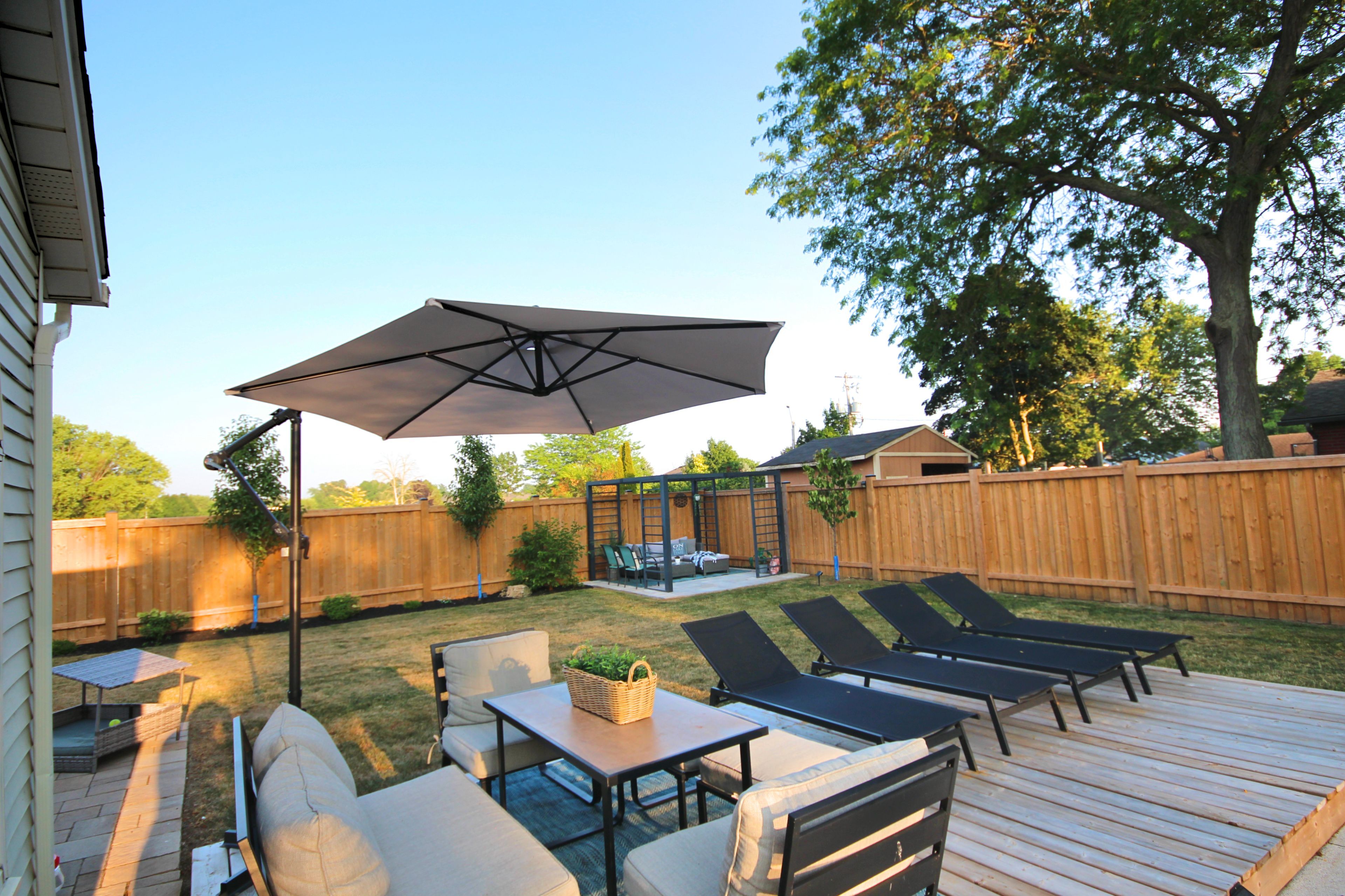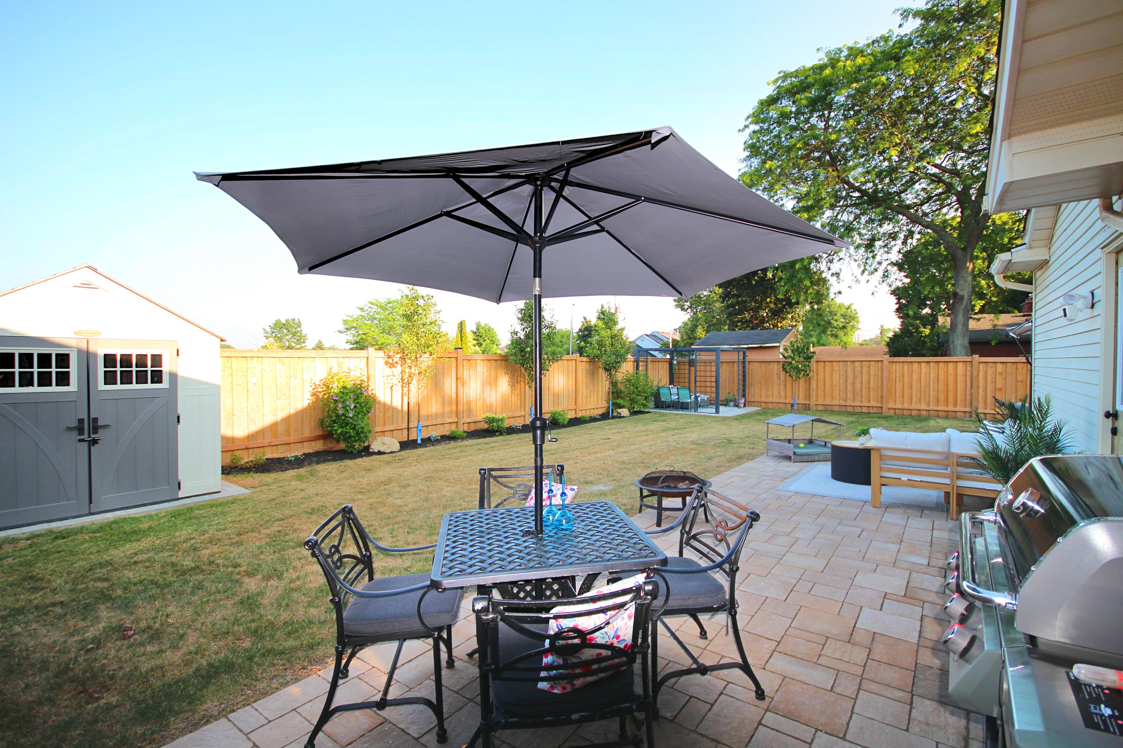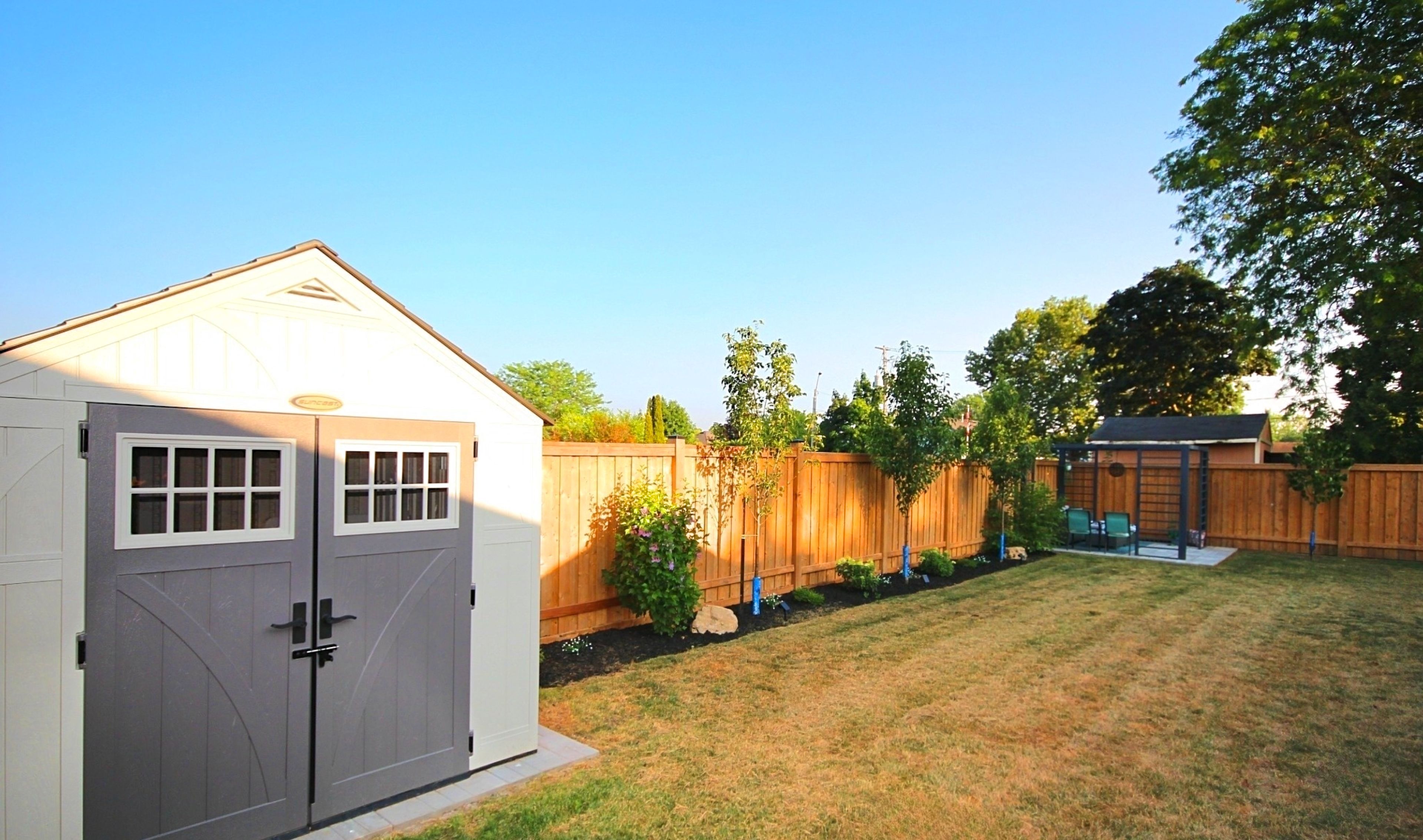 • Outdoor space includes patio, pergola retreat, and ample storage sheds.
