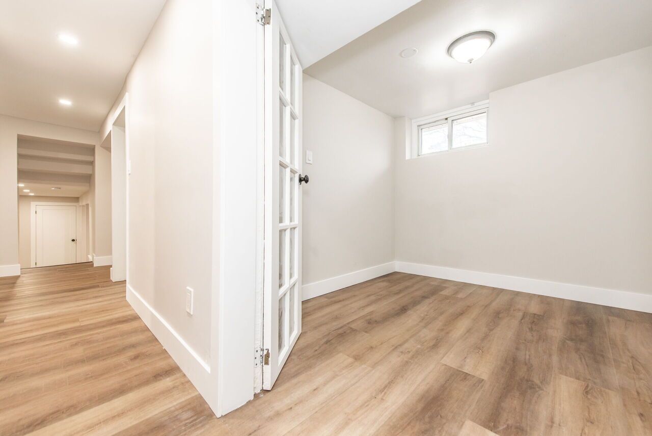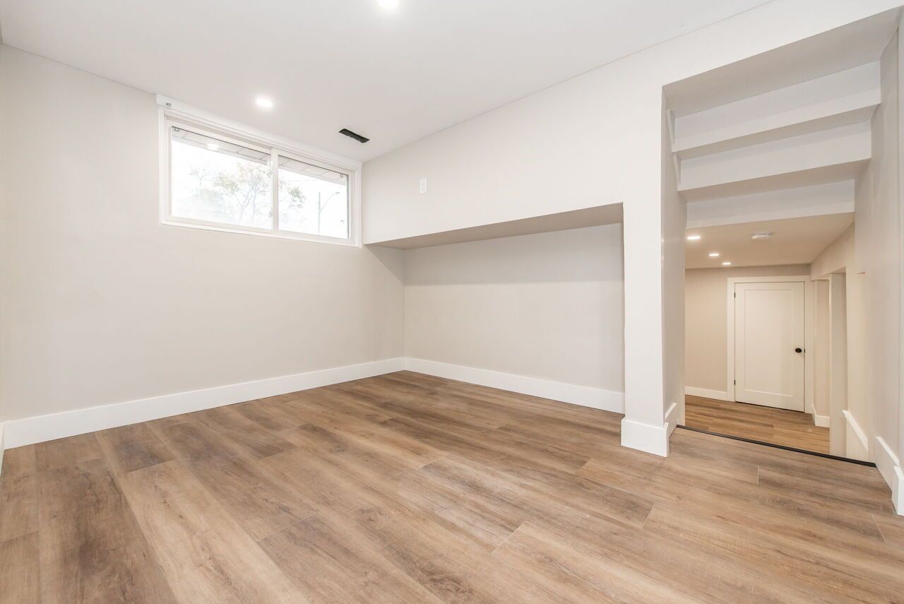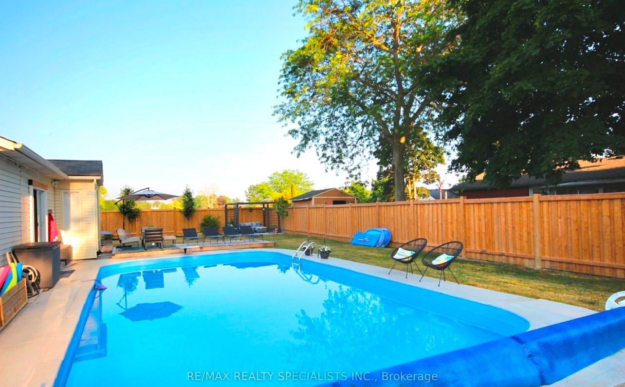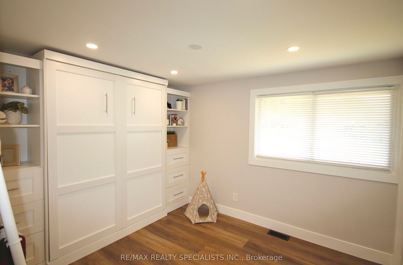 Rarely offered corner lot with fully wrap around entertainer's yard featuring an in-ground pool. Located in a highly sought-after enclave, this one-of-a-kind ranch style side-split has been fully renovated with the highest standard of quality finishes. Thoughtful features for the discerning buyer grace this home with it's generous living space boasting high end custom cabinetry and custom wall mouldings throughout. The fully re-modelled kitchen spares no detail; solid wood cabinetry, vaulted shiplap ceiling, quartz counters & backsplash, large servery area with built-in wine rack & bar fridge, custom built-in coffee nook, upgraded stainless appliances & integrated dishwasher! The showstopper yard features a comfortable lounging area overlooking the oversized 18x32ft pool surrounded by a fully landscaped space including interlocked patio, separate pergola retreat and generous storage space with 3 sheds. In addition the exterior has been upgraded with a newly built fence, custom wooden pool deck, driveway (all in 2024) and new garage door (2025). The primary bedroom offers a semi-ensuite including a built in storage/laundry machine configuration, plus a separate oversized dressing/sitting room with wall-to-wall cabinetry (previously a 3rd bedroom which can easily be converted back if desired). Basement unit is accessed through it's own gate with back entry door and features a separate private yard space for privacy between occupants of the main and lower levels! Lower level unit is a versatile and airy 2 bedroom basement, with an open concept office, large custom kitchen, laundry area & 3pc bath which is currently rented month to month with aaa tenant who would like to stay.
