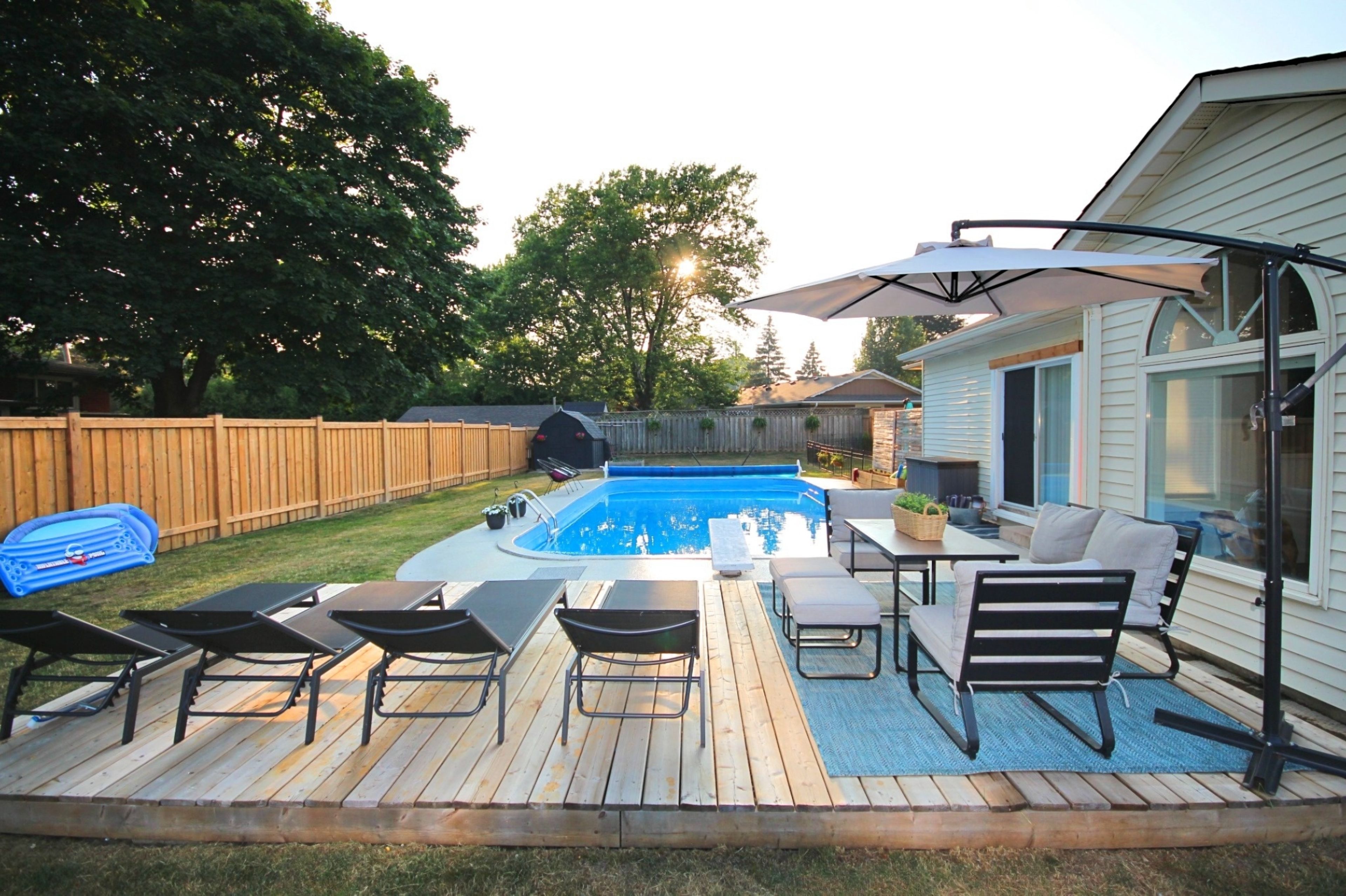 • Corner lot with a wrap-around yard featuring an in-ground pool.