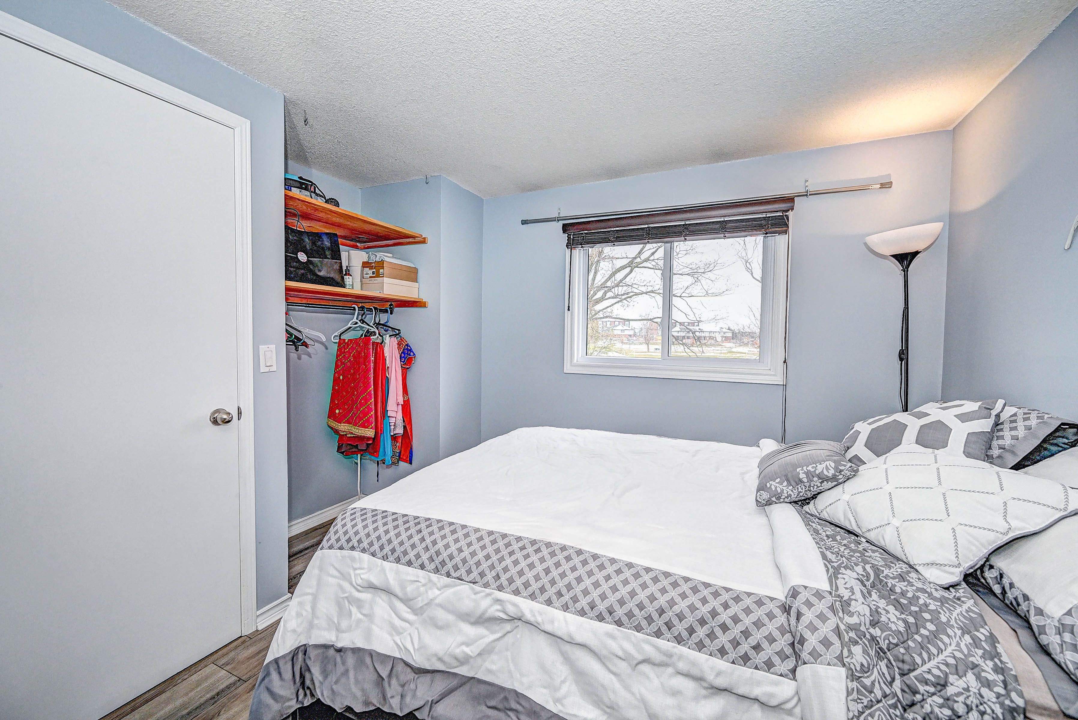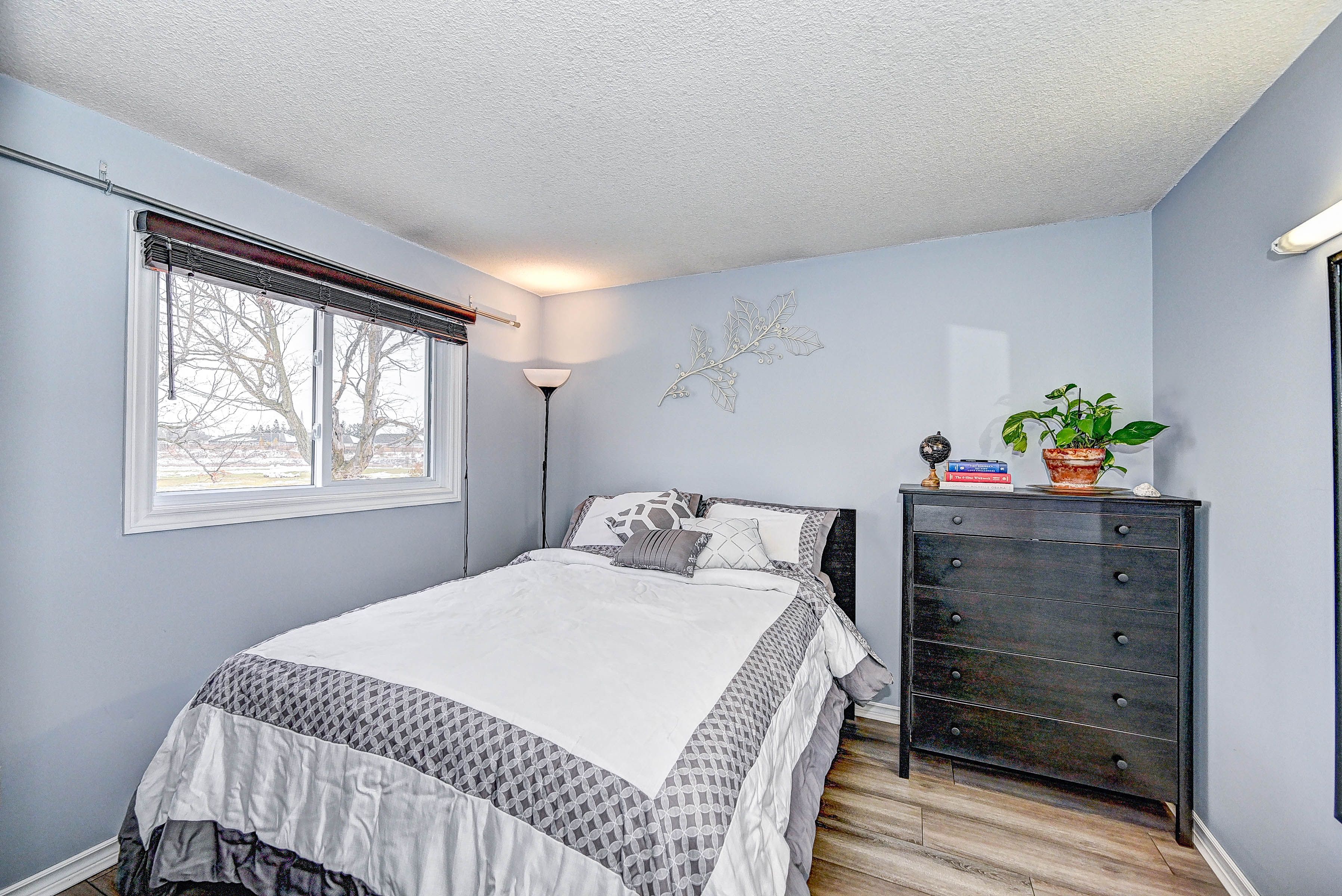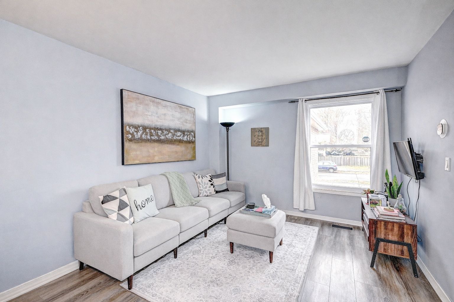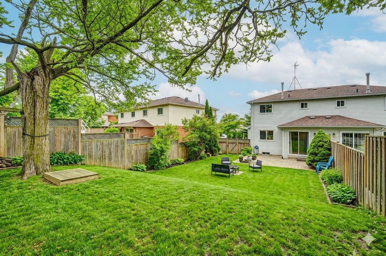 This semi-detached home is located in a quiet, established neighbourhood and offers a large, fully fenced yard. The property is steps from st. Brigid school, owl day care, and within walking distance to piper's glen trails and douglas park. The home features a newly installed double-wide asphalt driveway and an attached garage. The main level includes a combined living and dining area with large windows, and a galley-style kitchen with patio doors providing access to the rear yard. The backyard offers an interlock patio and mature trees. The upper level includes a primary bedroom with walk-in closet, an additional bedroom, and a 4-piece bathroom. The basement is partially finished with a recreation room, laundry/utility area, and a storage room. Additional features include central air conditioning, water softener, updated vinyl windows, and a rented hot water heater. Conveniently located near ayr foodland, local restaurants, parks, and walking trails.