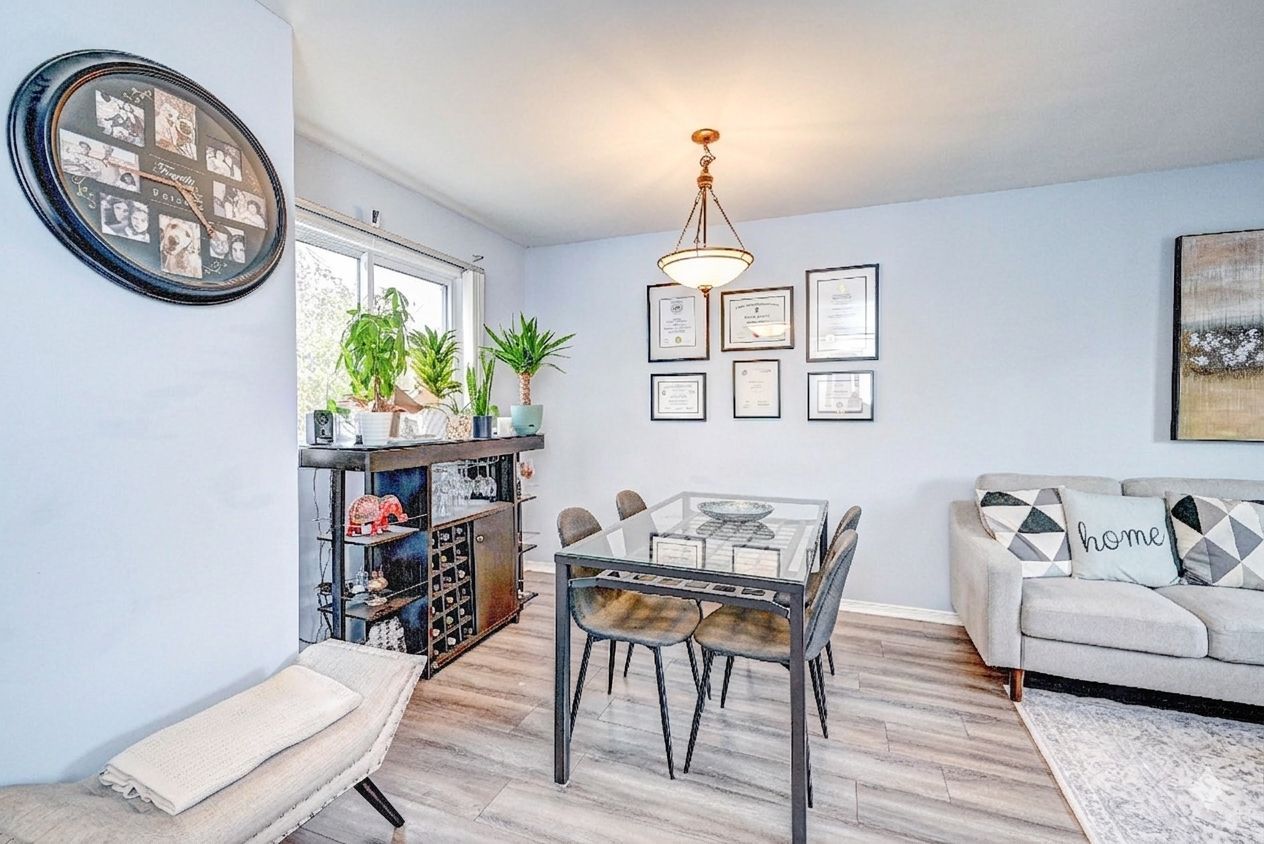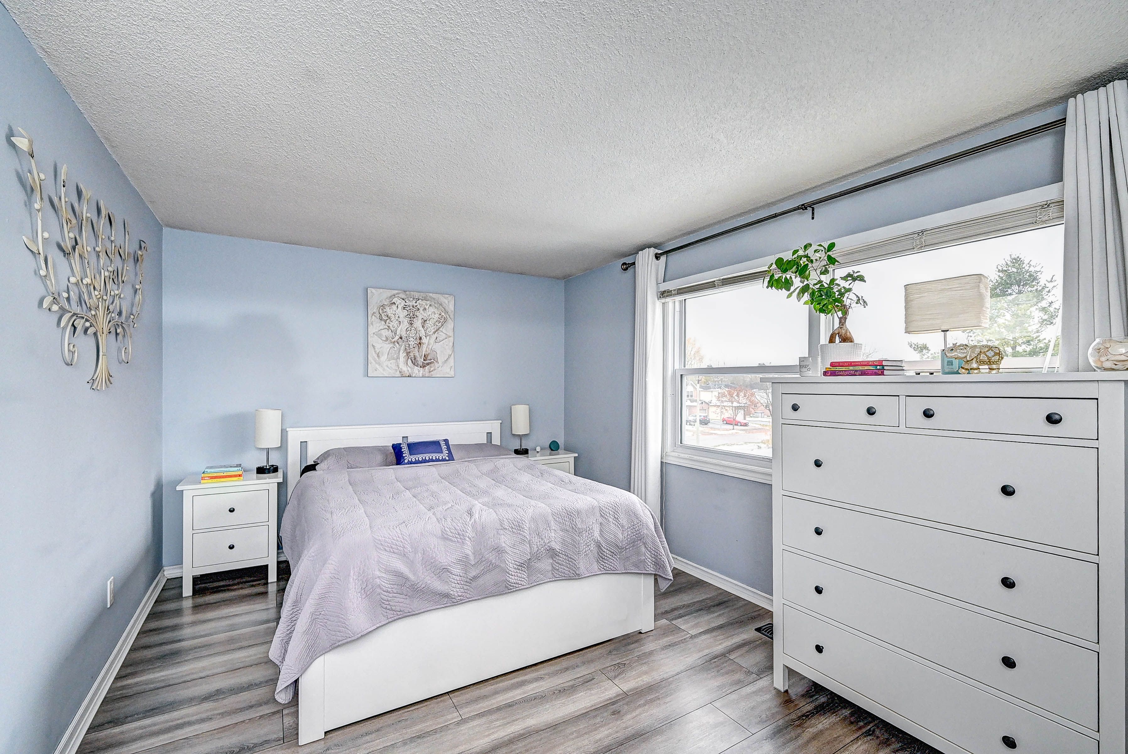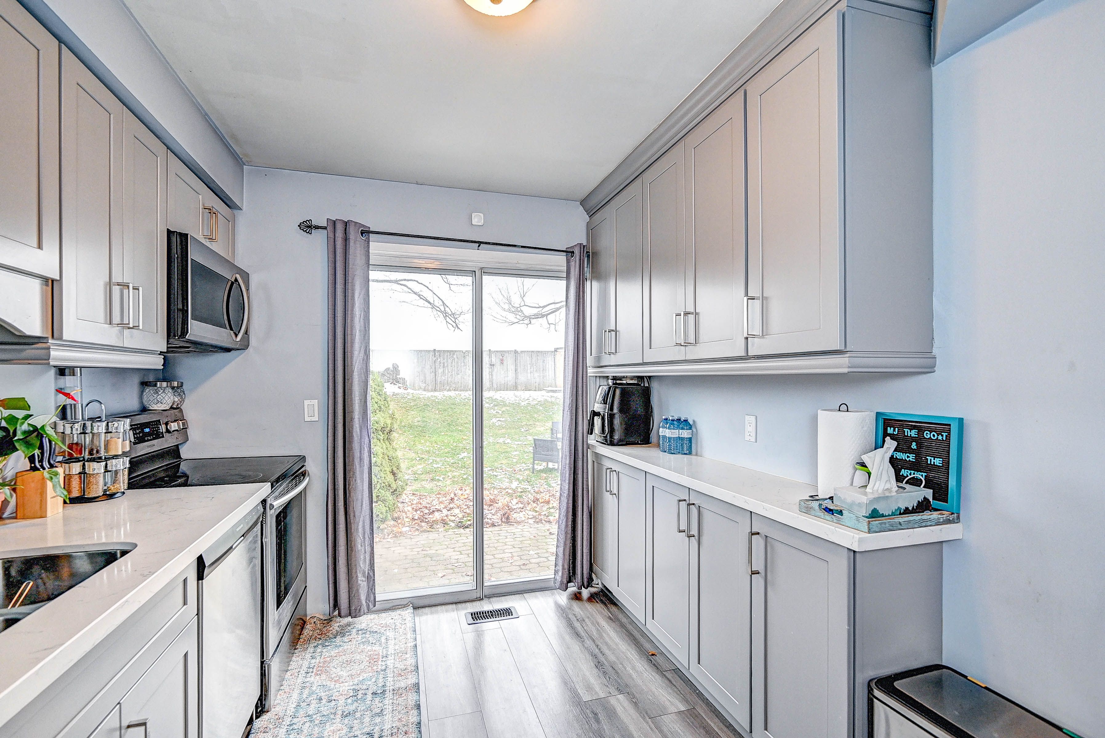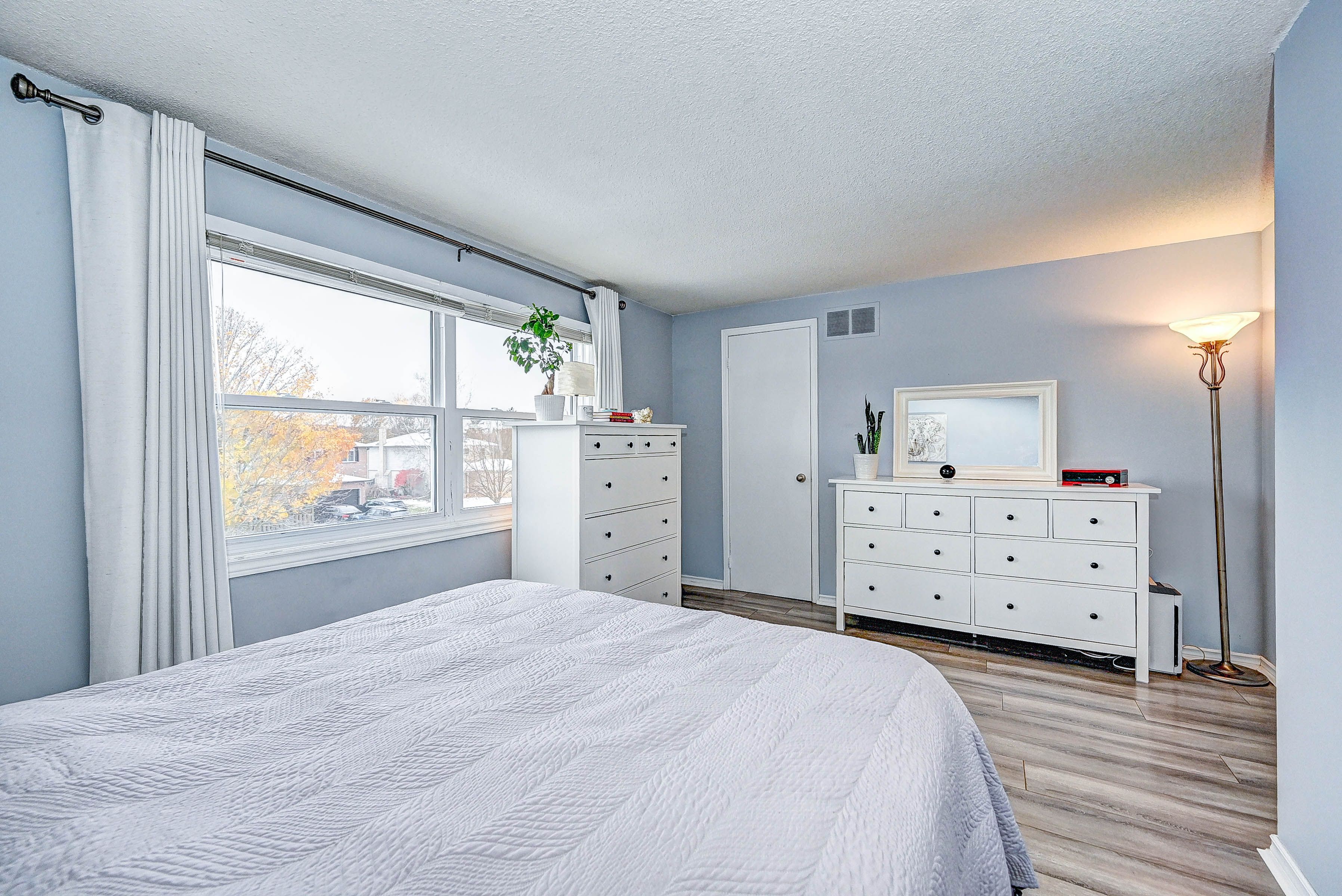 This semi-detached home is located in a quiet, established neighbourhood and offers a large, fully fenced yard. The property is steps from st. Brigid school, owl day care, and within walking distance to piper's glen trails and douglas park. The home features a newly installed double-wide asphalt driveway and an attached garage. The main level includes a combined living and dining area with large windows, and a galley-style kitchen with patio doors providing access to the rear yard. The backyard offers an interlock patio and mature trees. The upper level includes a primary bedroom with walk-in closet, an additional bedroom, and a 4-piece bathroom. The basement is partially finished with a recreation room, laundry/utility area, and a storage room. Additional features include central air conditioning, water softener, updated vinyl windows, and a rented hot water heater. Conveniently located near ayr foodland, local restaurants, parks, and walking trails.