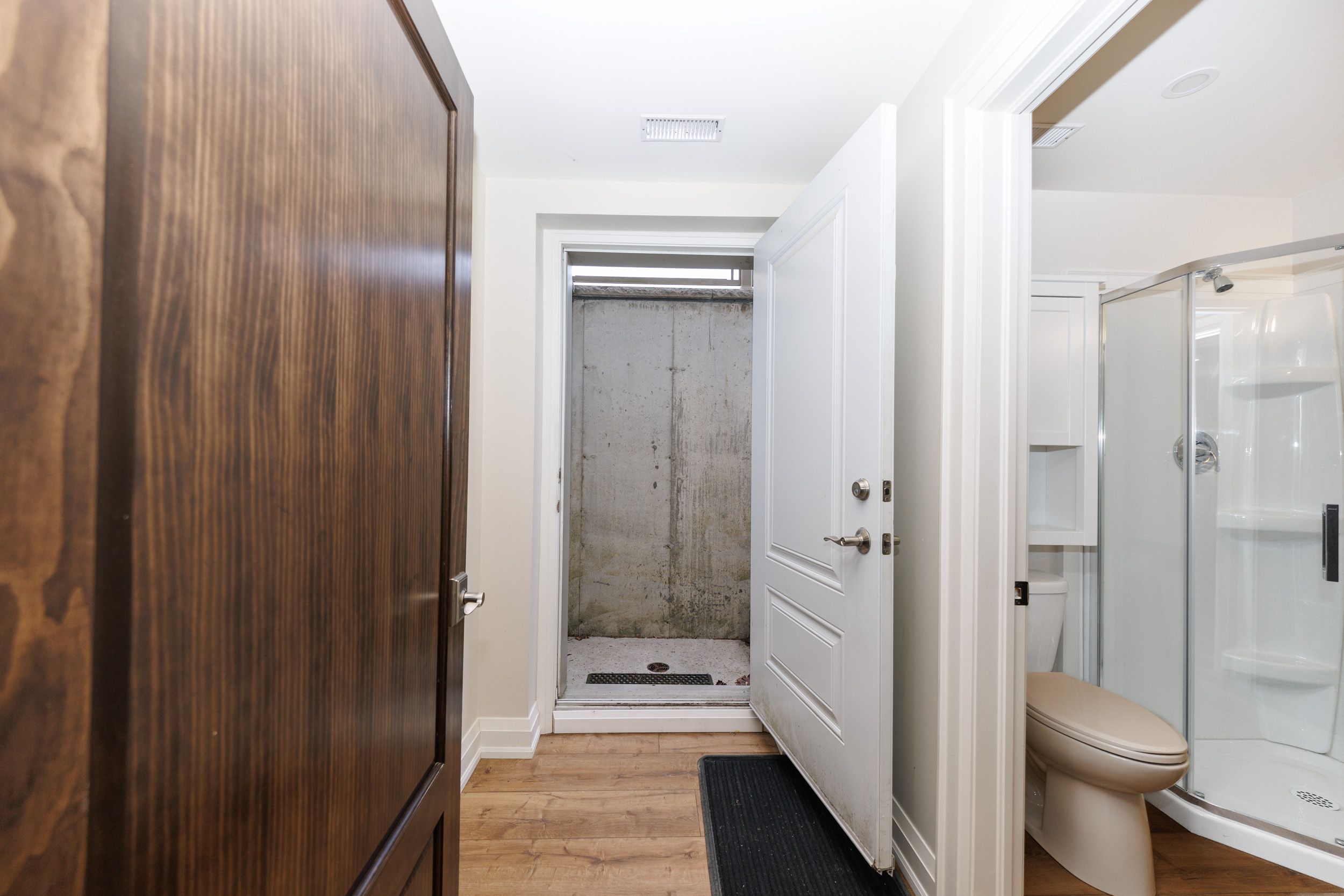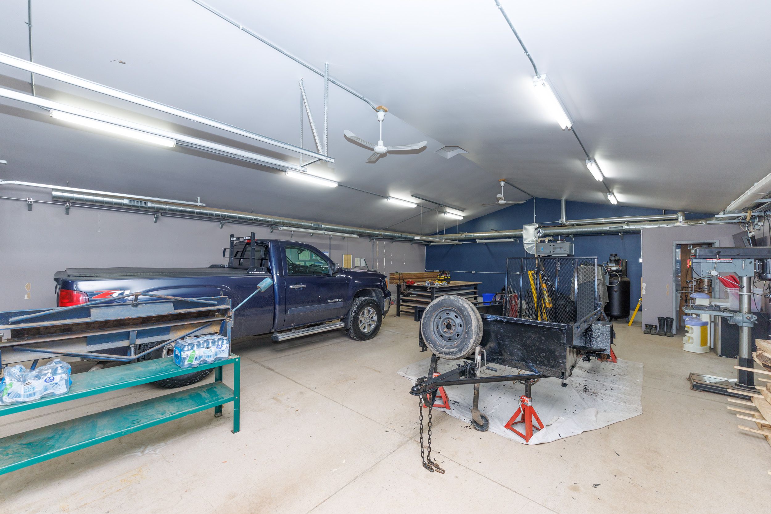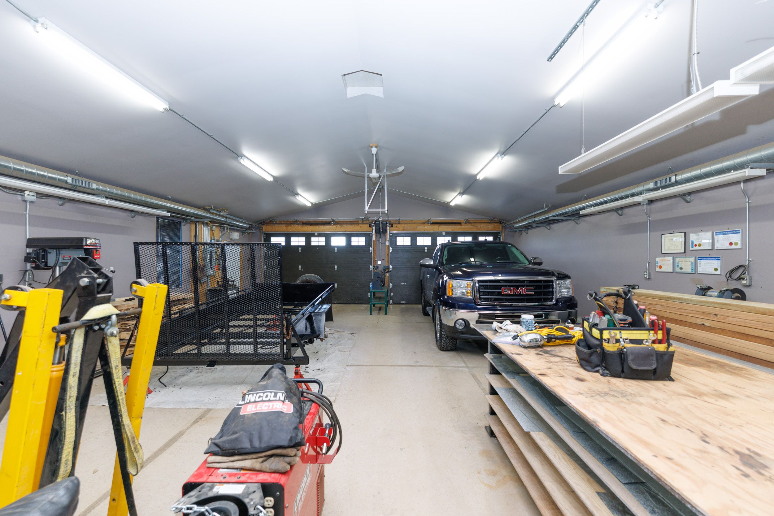 • Spacious heated garage with soundproofing and two large doors.