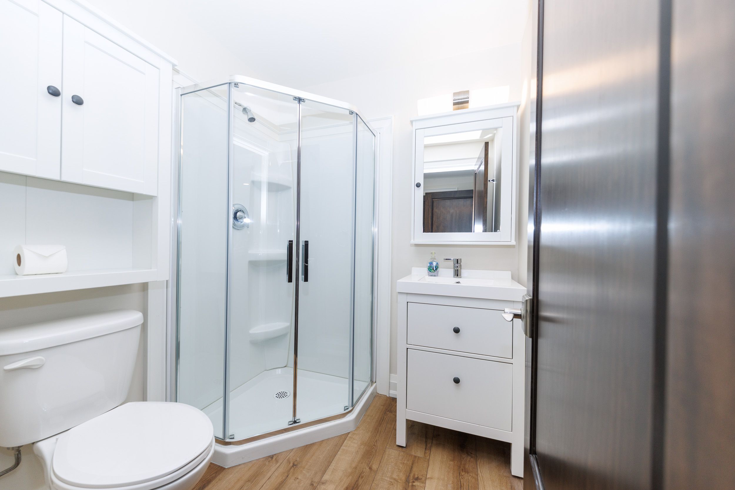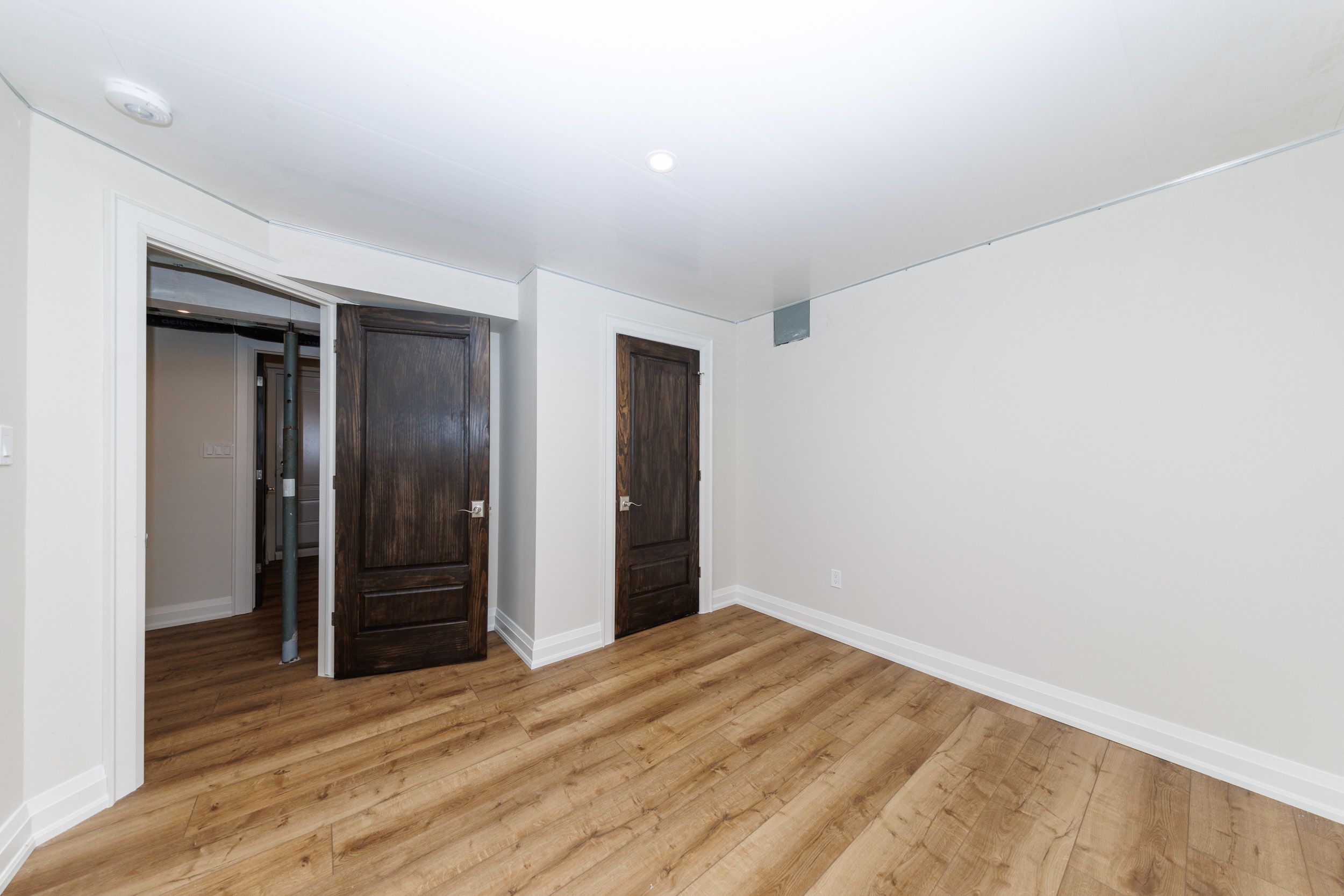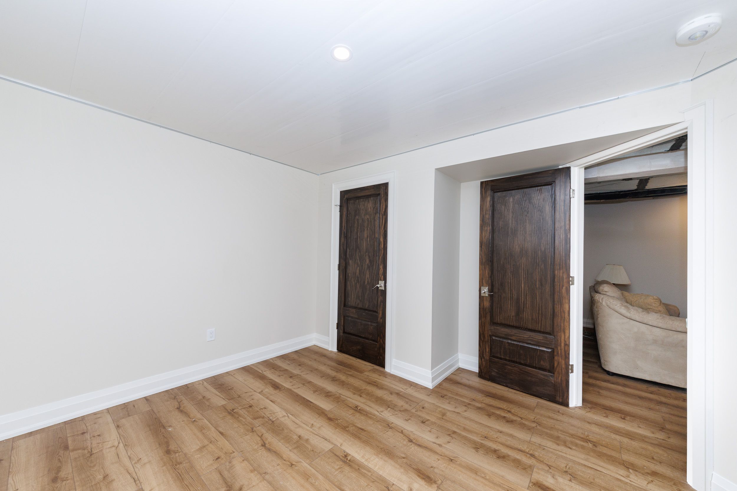 • Spacious heated garage with soundproofing and two large doors.