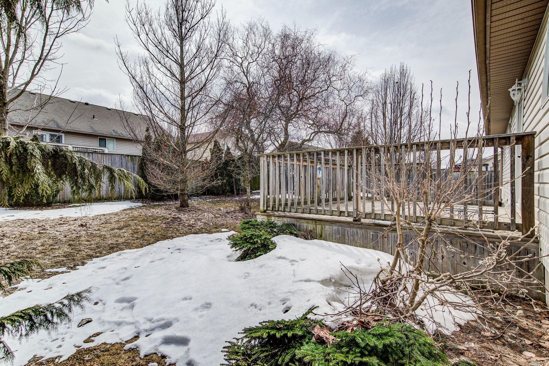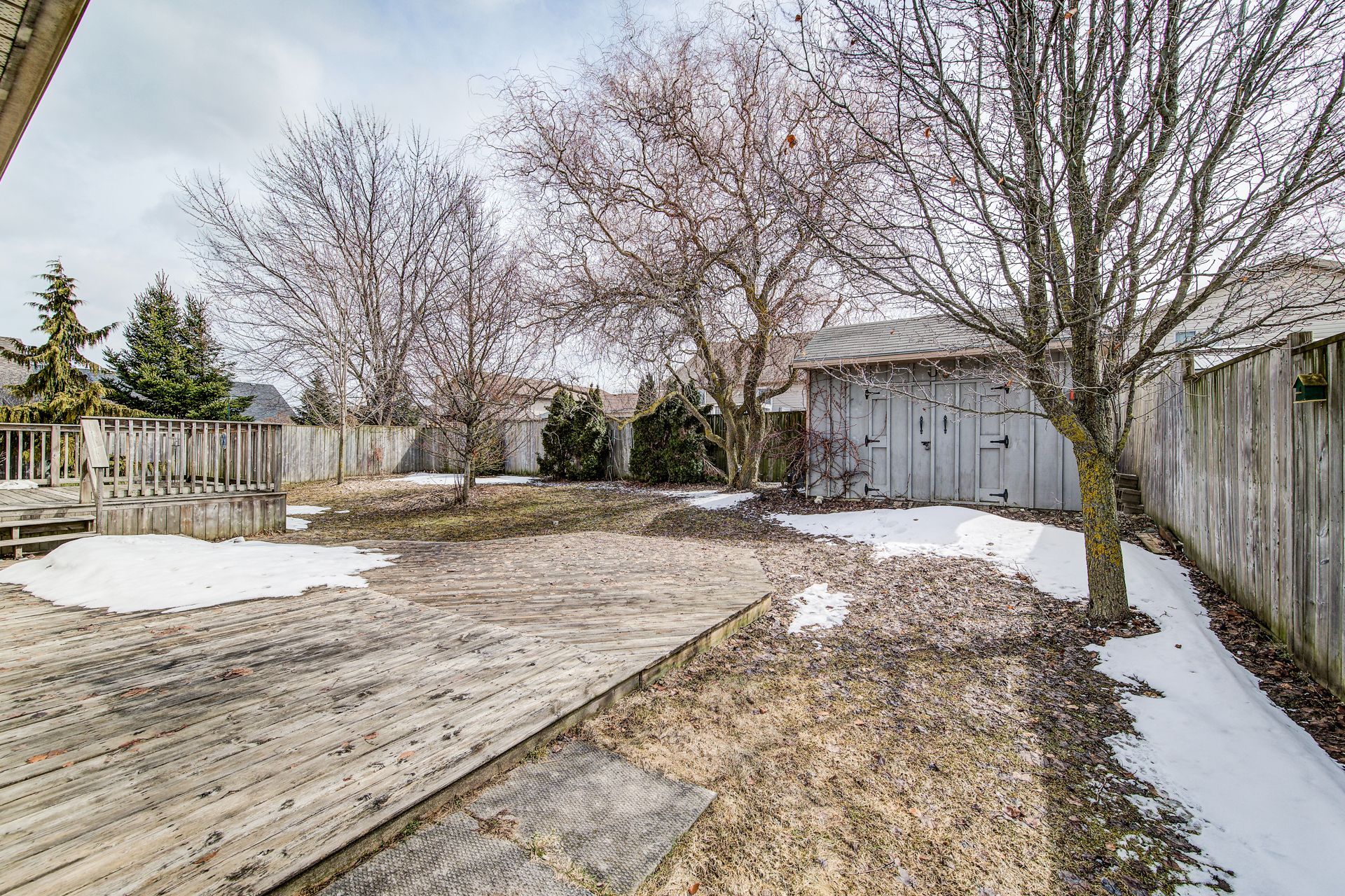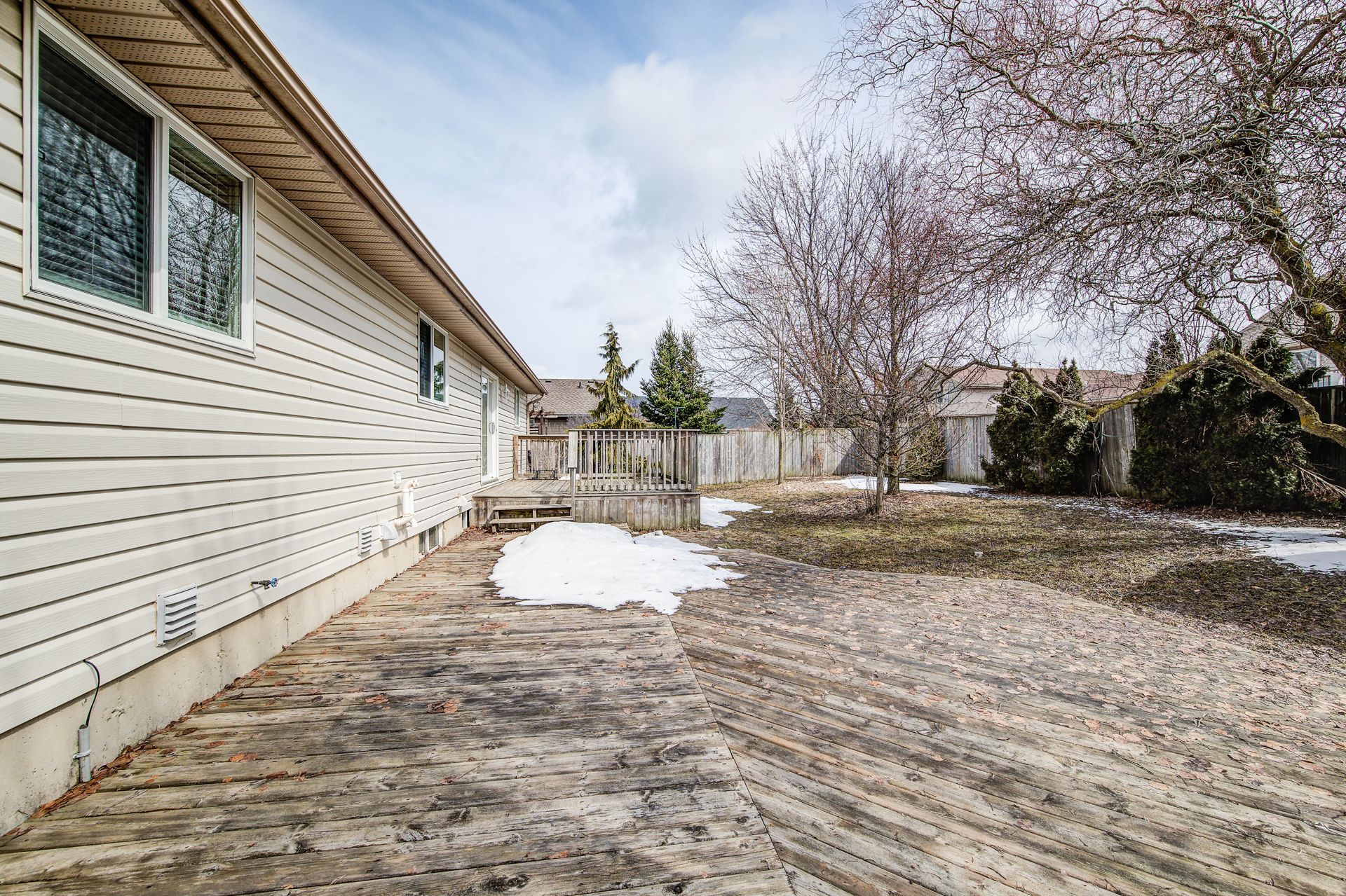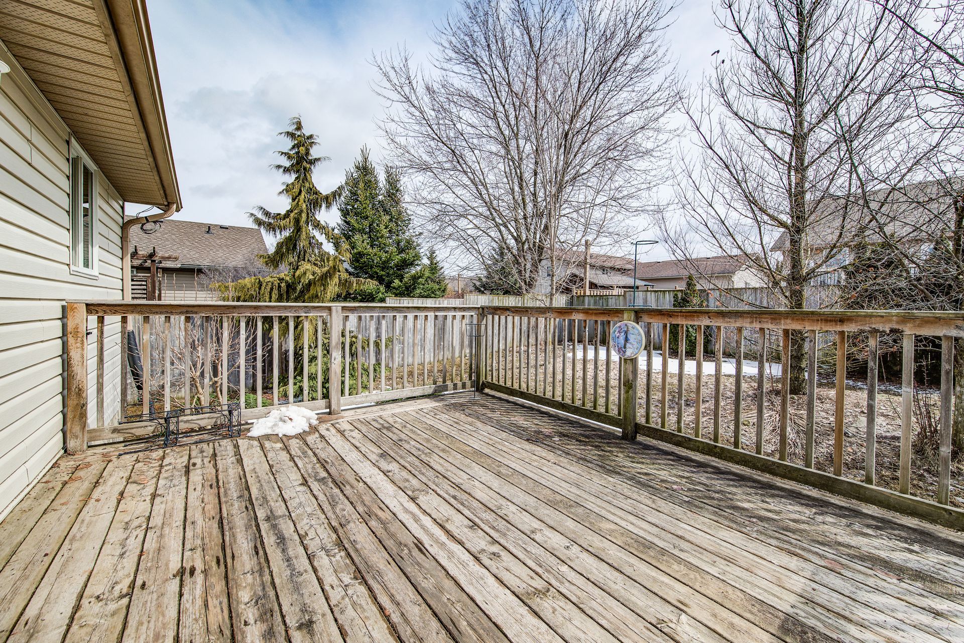 • South-facing deck overlooking a fenced rear yard, great for relaxation.