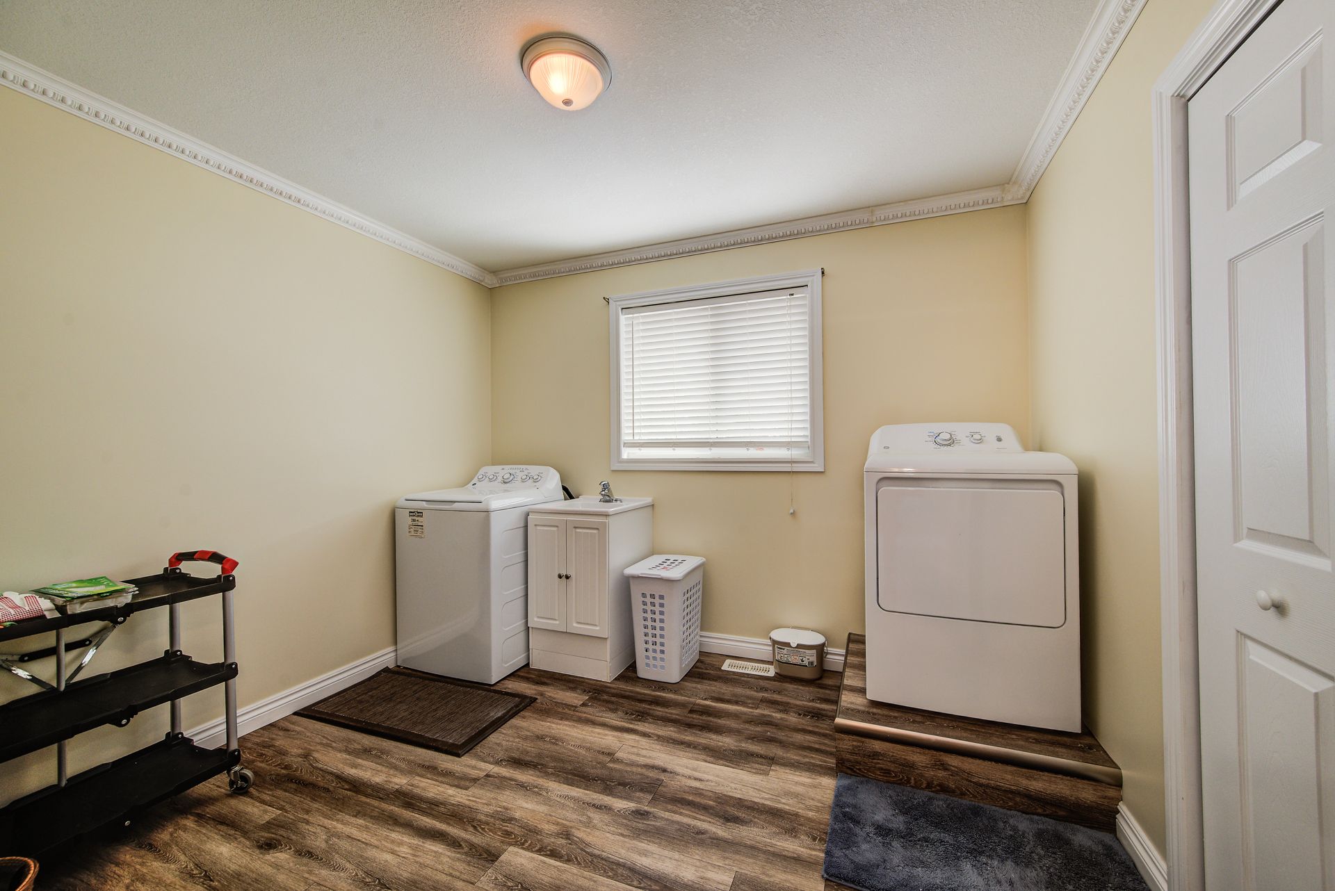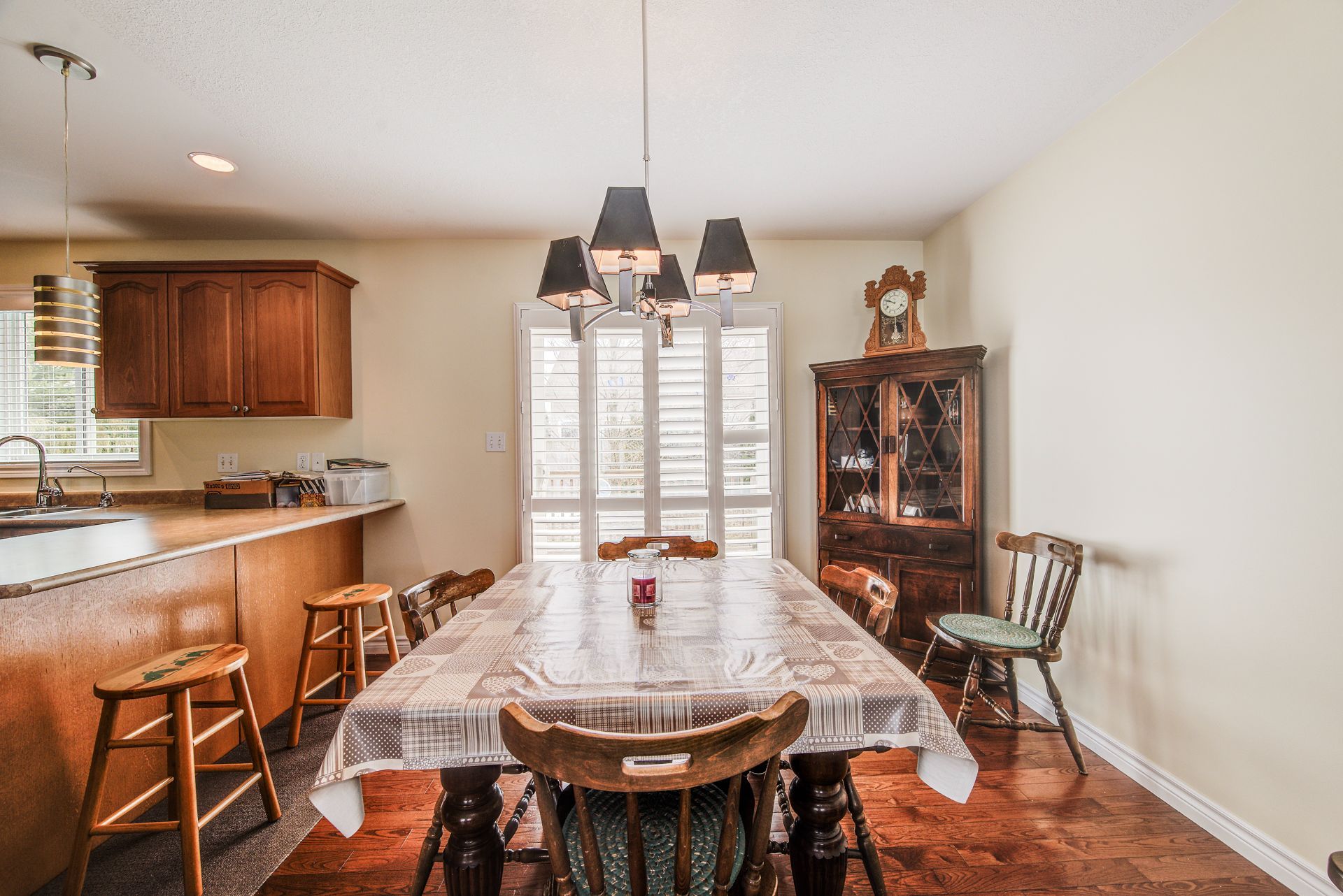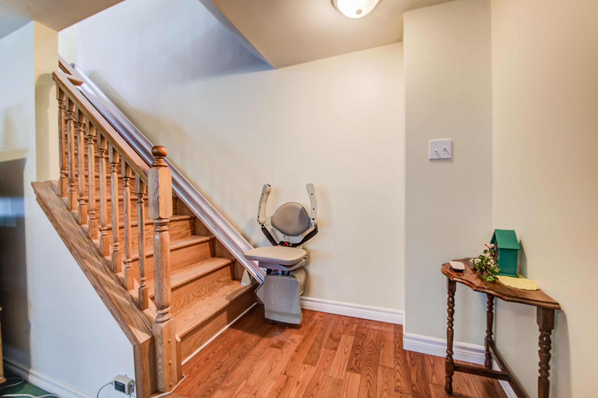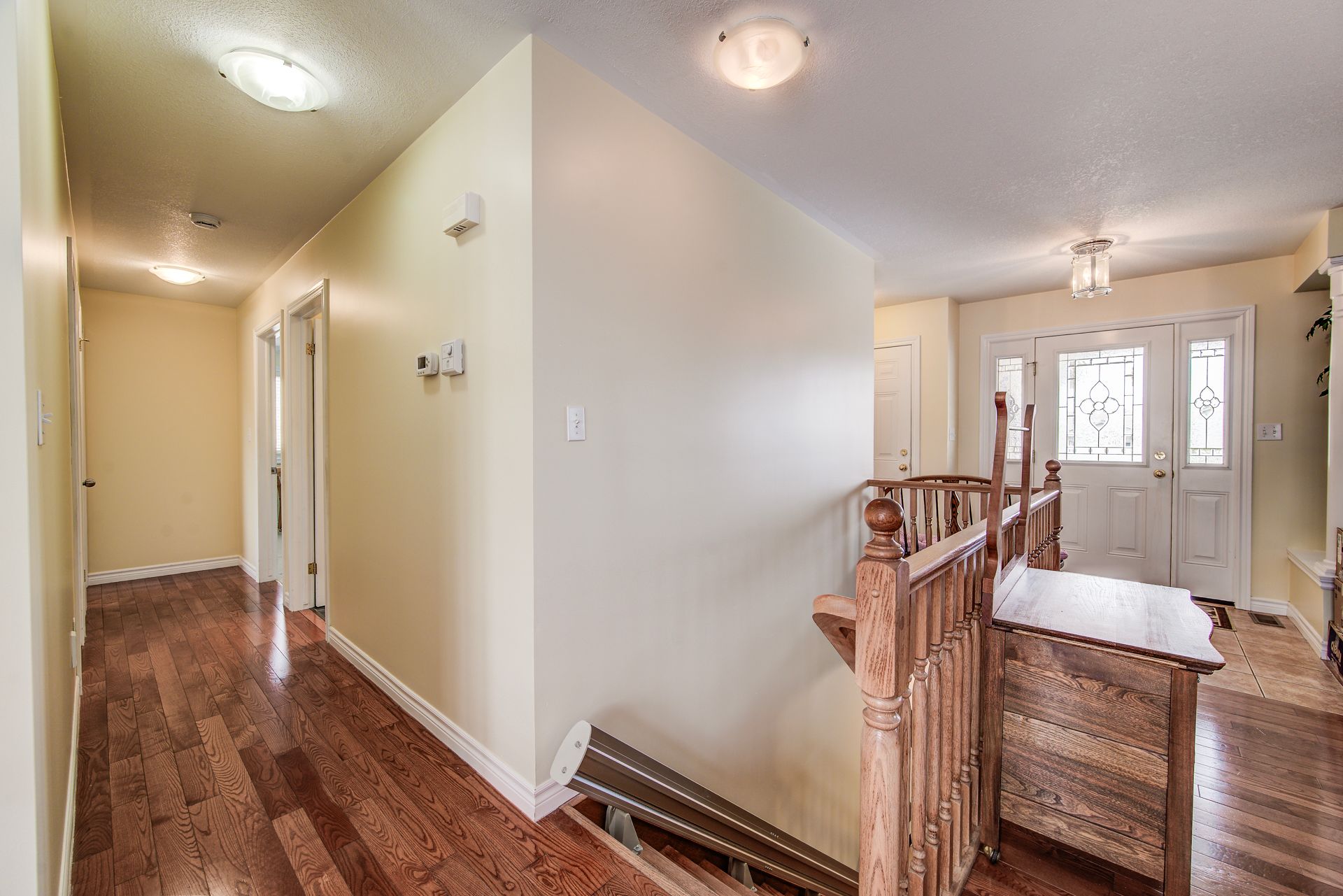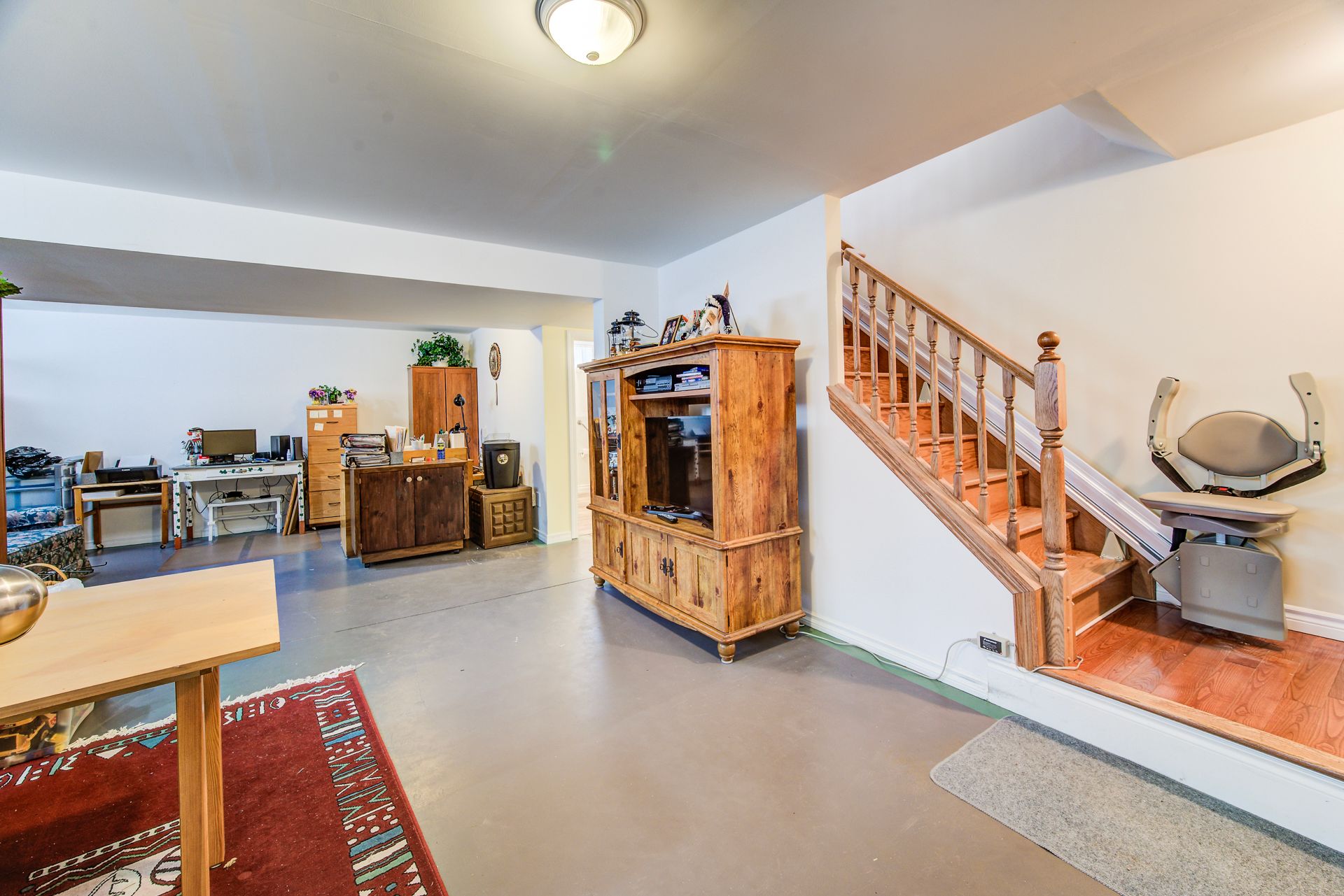 Welcome to this well maintained and freshly painted 3 + 1 bedroom, 3 bath bungalow located in a low traffic, quiet area. Upon entering this home you will find a large foyer which opens into the open concept principal rooms with beautifully finished hardwood floors. The kitchen features a peninsula as well as a walk-in pantry to provide that extra storage space. Walking from the dining area through the walk out you will find yourself on the south facing deck overlooking a substantially fenced rear yard. One of the main floor bedrooms has been converted to a laundry room but this can be easily removed and relocated to the existing laundry facilities on the lower level. The basement level has been substantially completed with just the flooring to finish. Some of the interior features are the 3 pc en suite washroom and california shutters. Some of the other features of this home include a steel roof as well as a automatic natural gas-powered generator. The wheelchair ramp in the large double garage and the chair stair lift accommodates those you are mobility challenged. These can be included or removed easily.