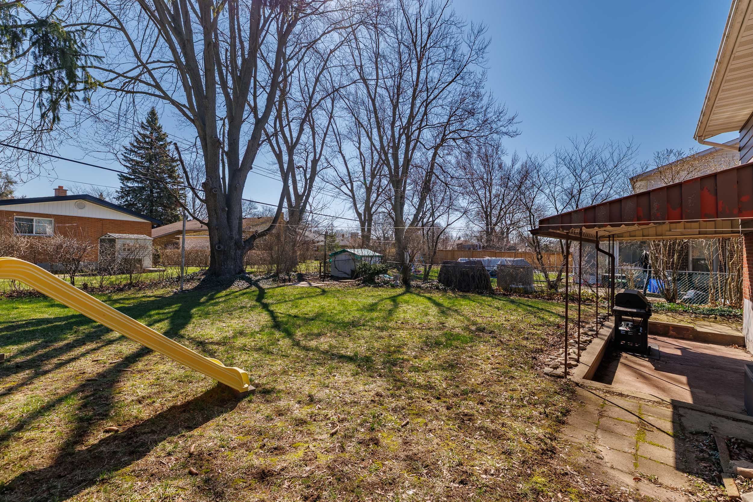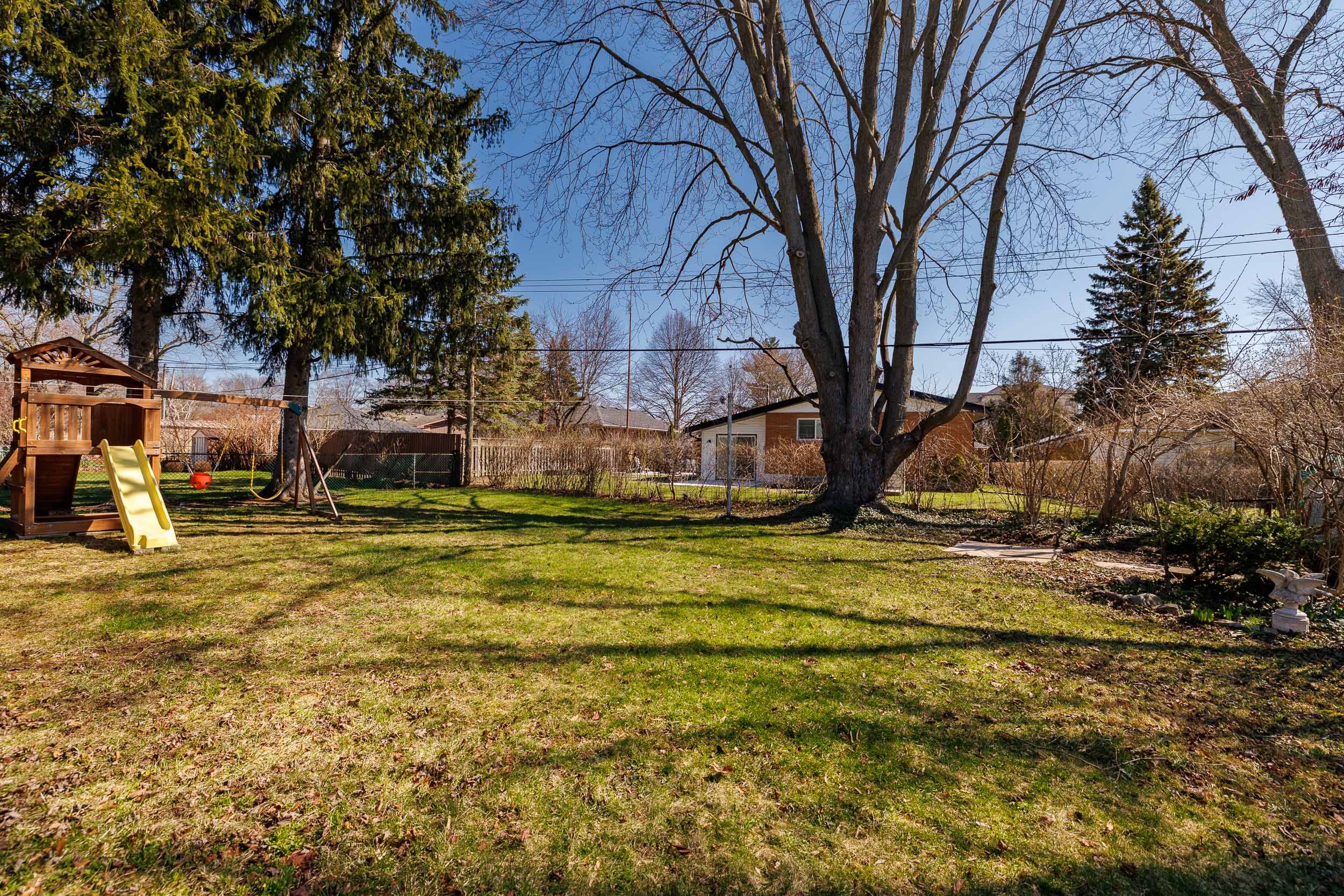 • Gorgeous backyard with green space and mature trees for outdoor enjoyment.