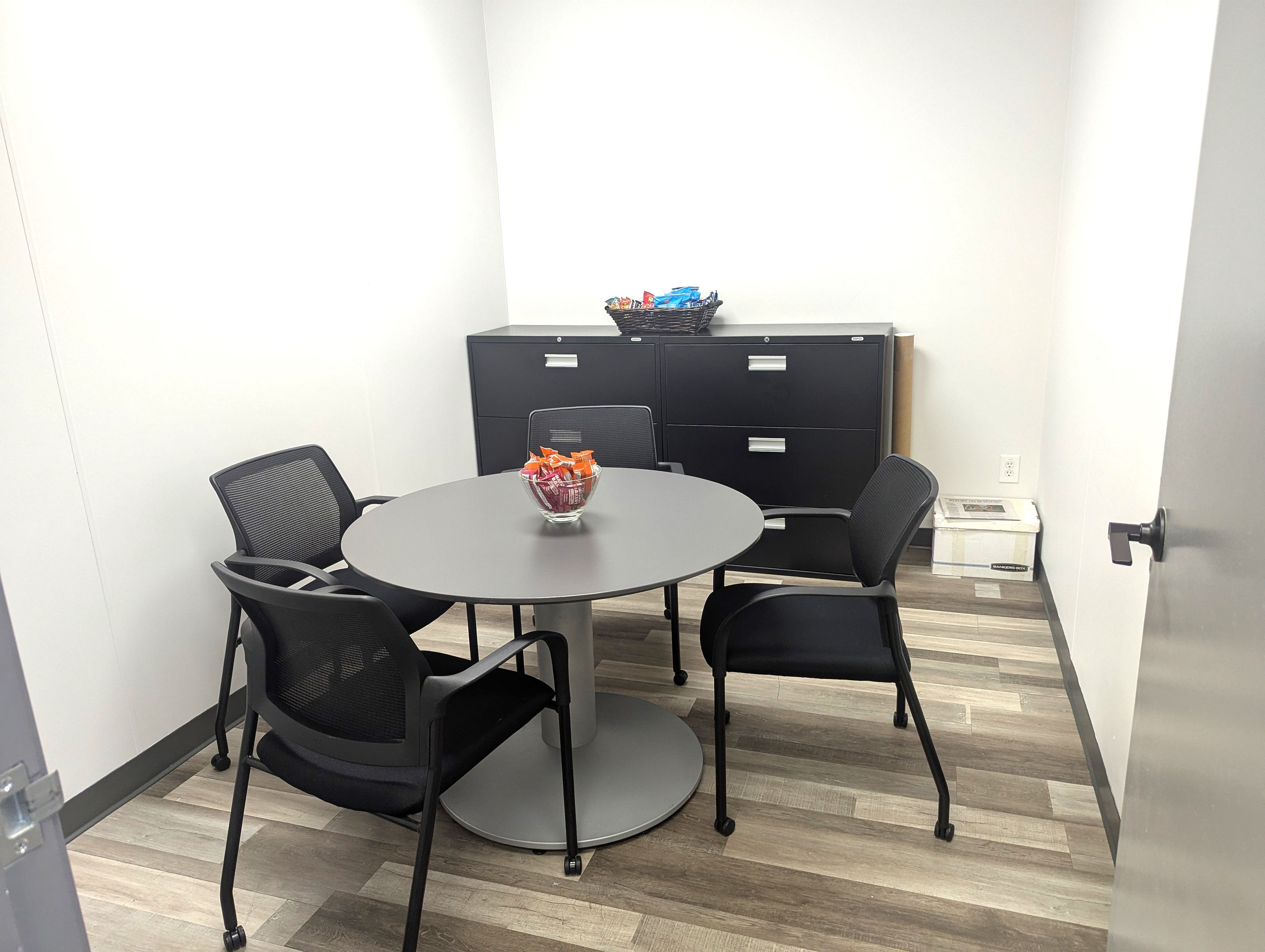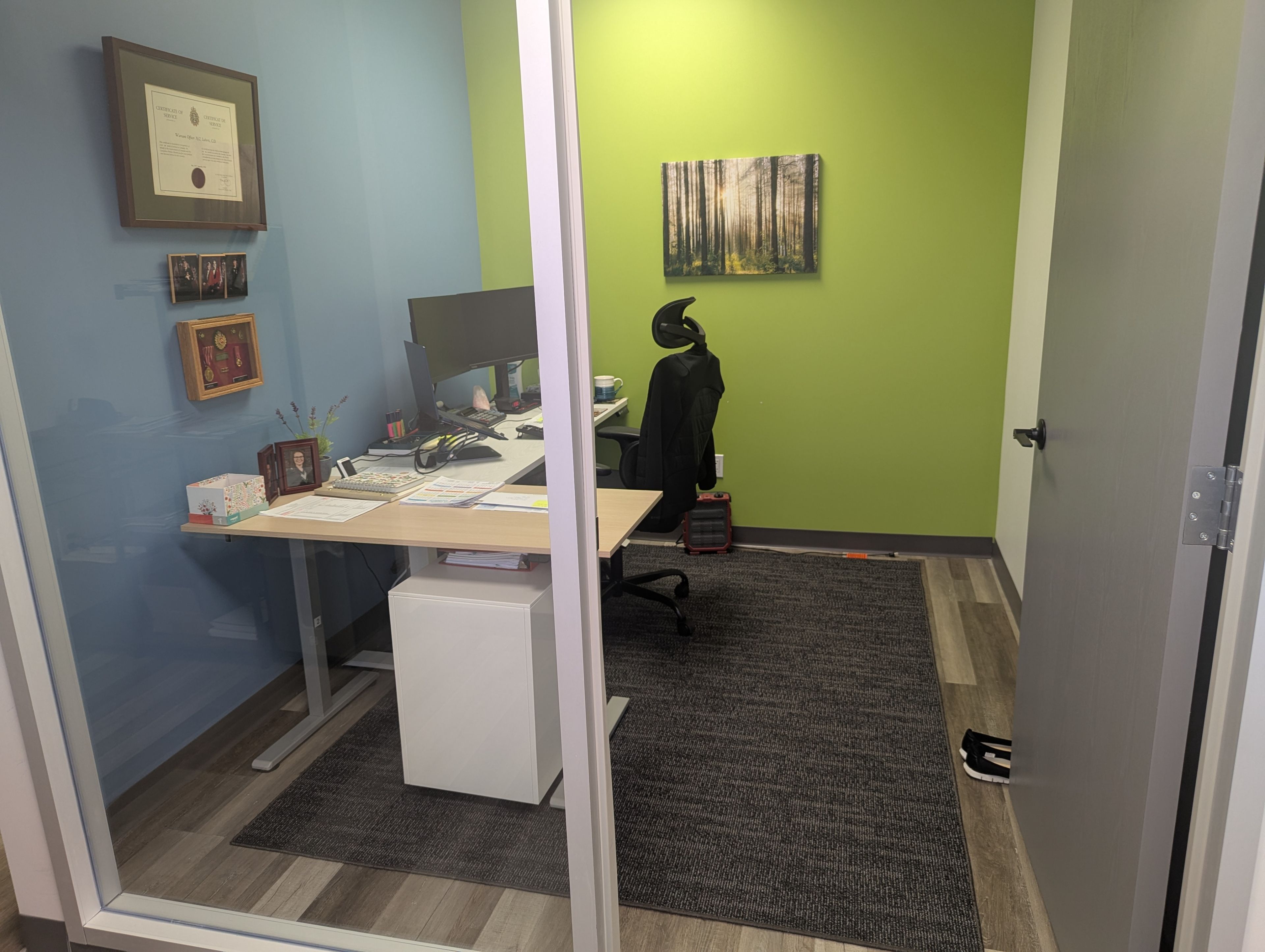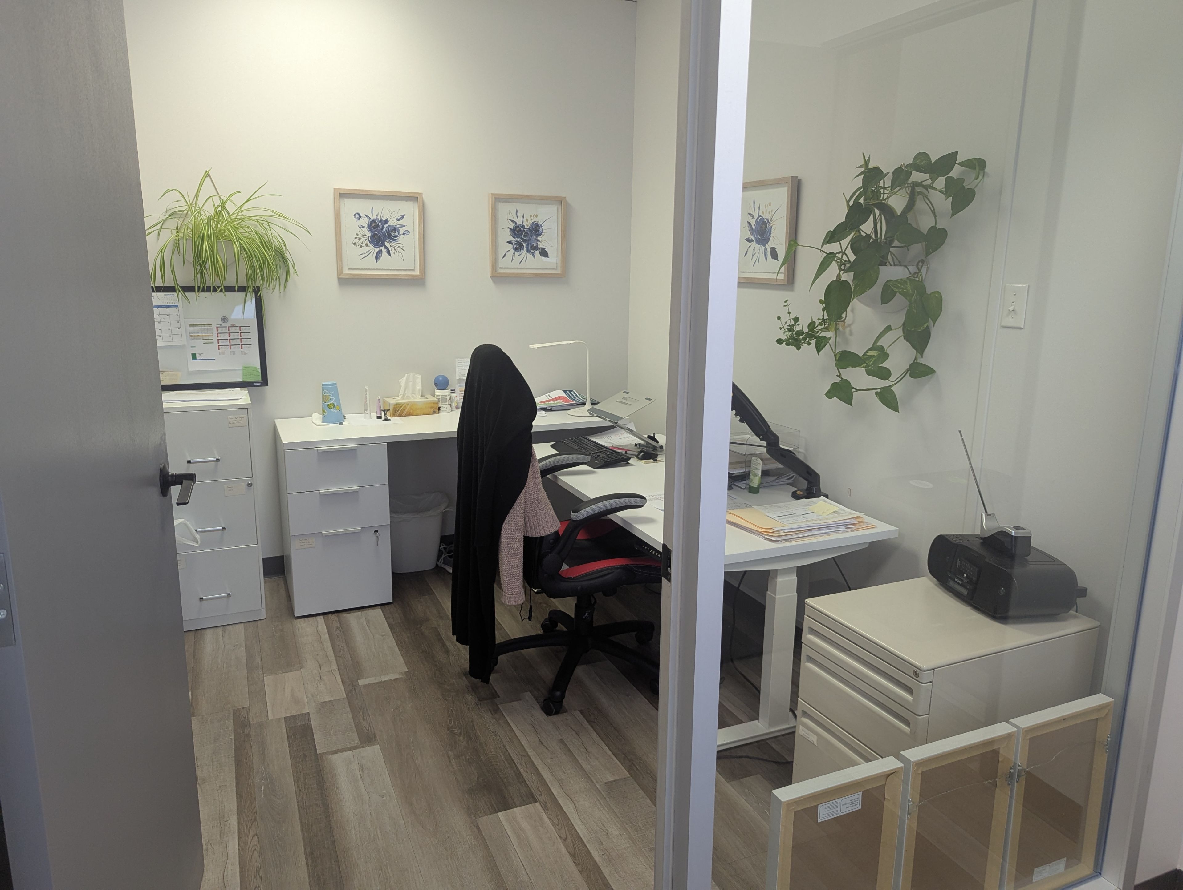 • Includes 5 enclosed offices, meeting room, and open reception area.