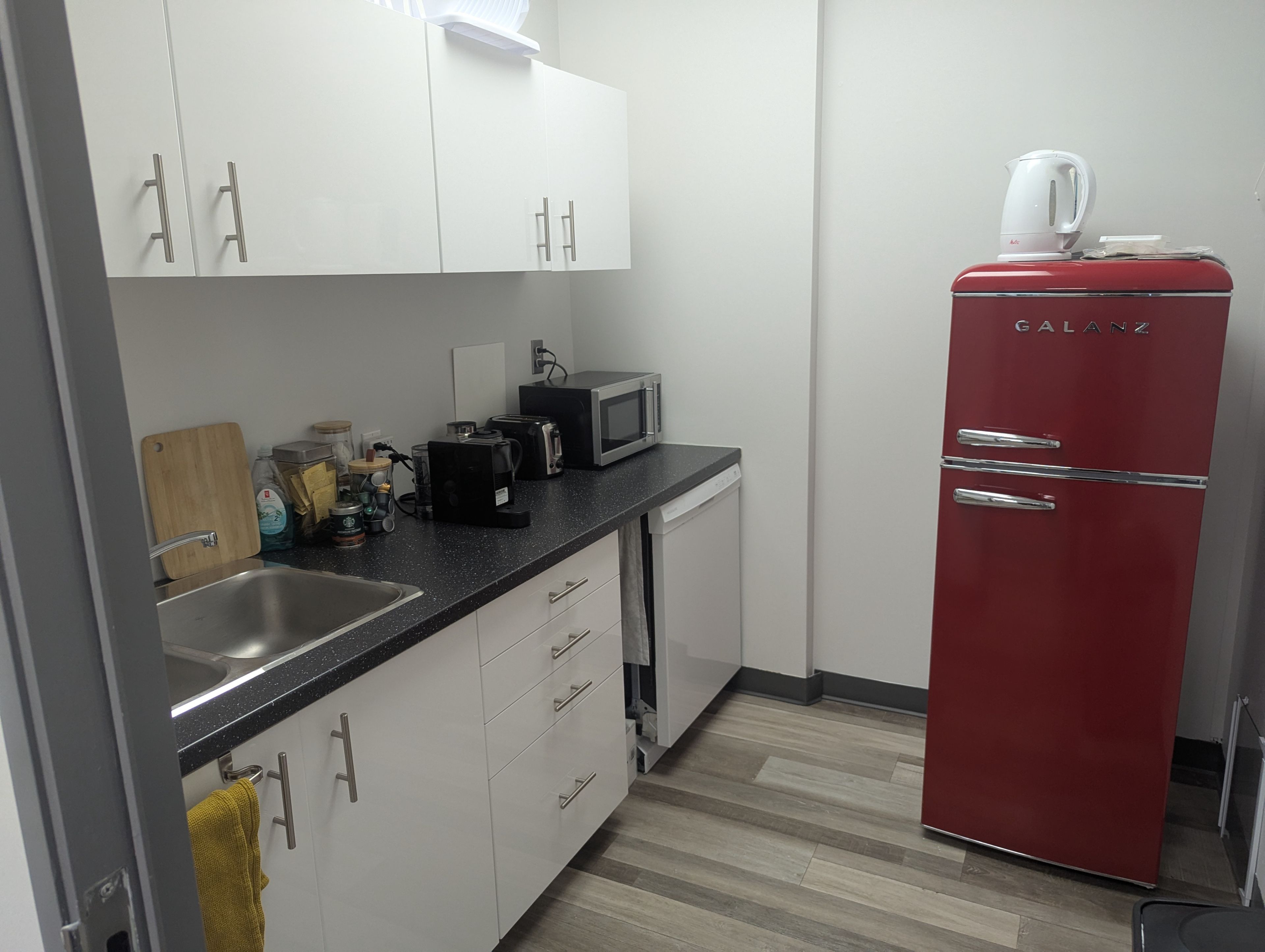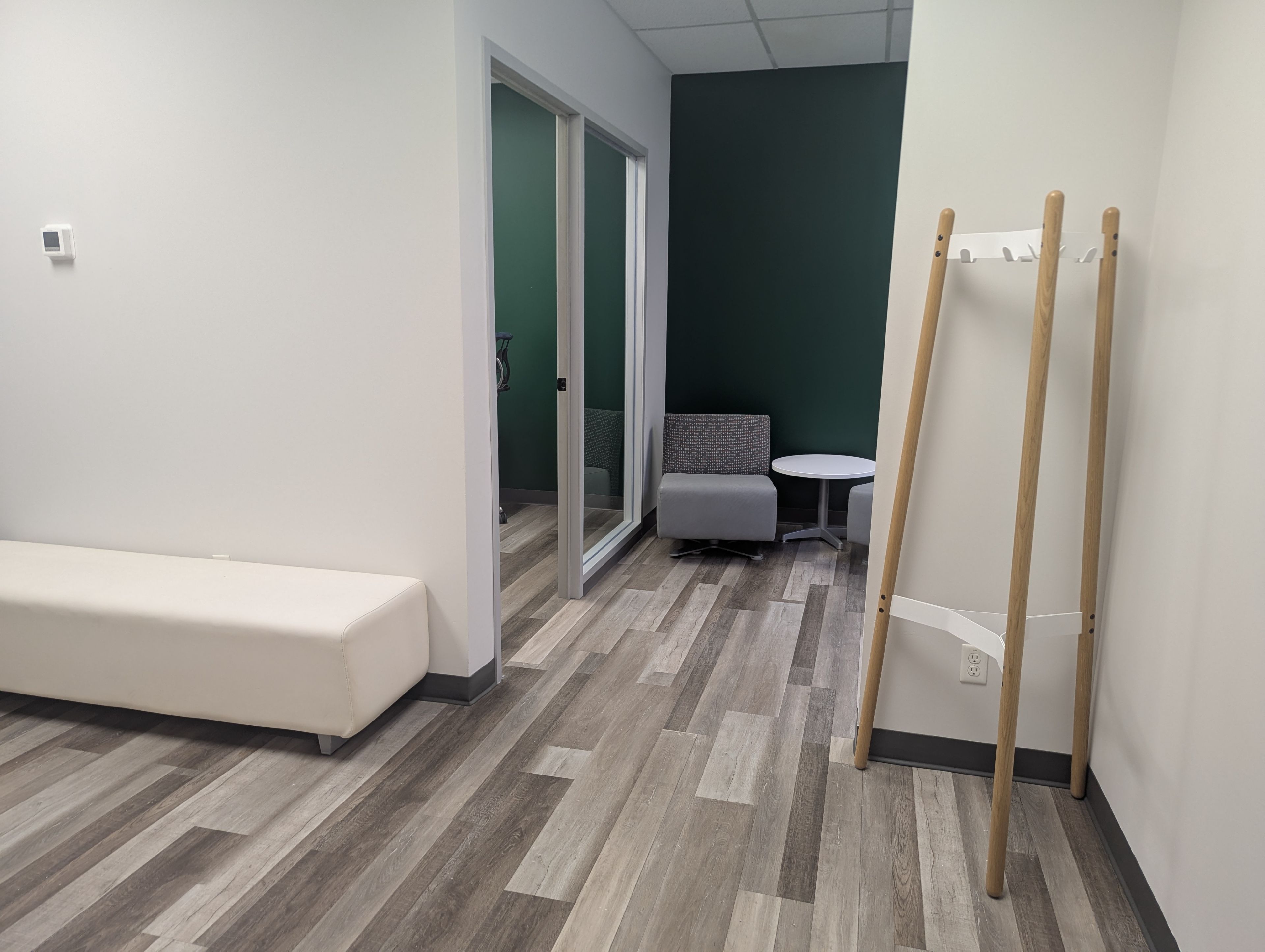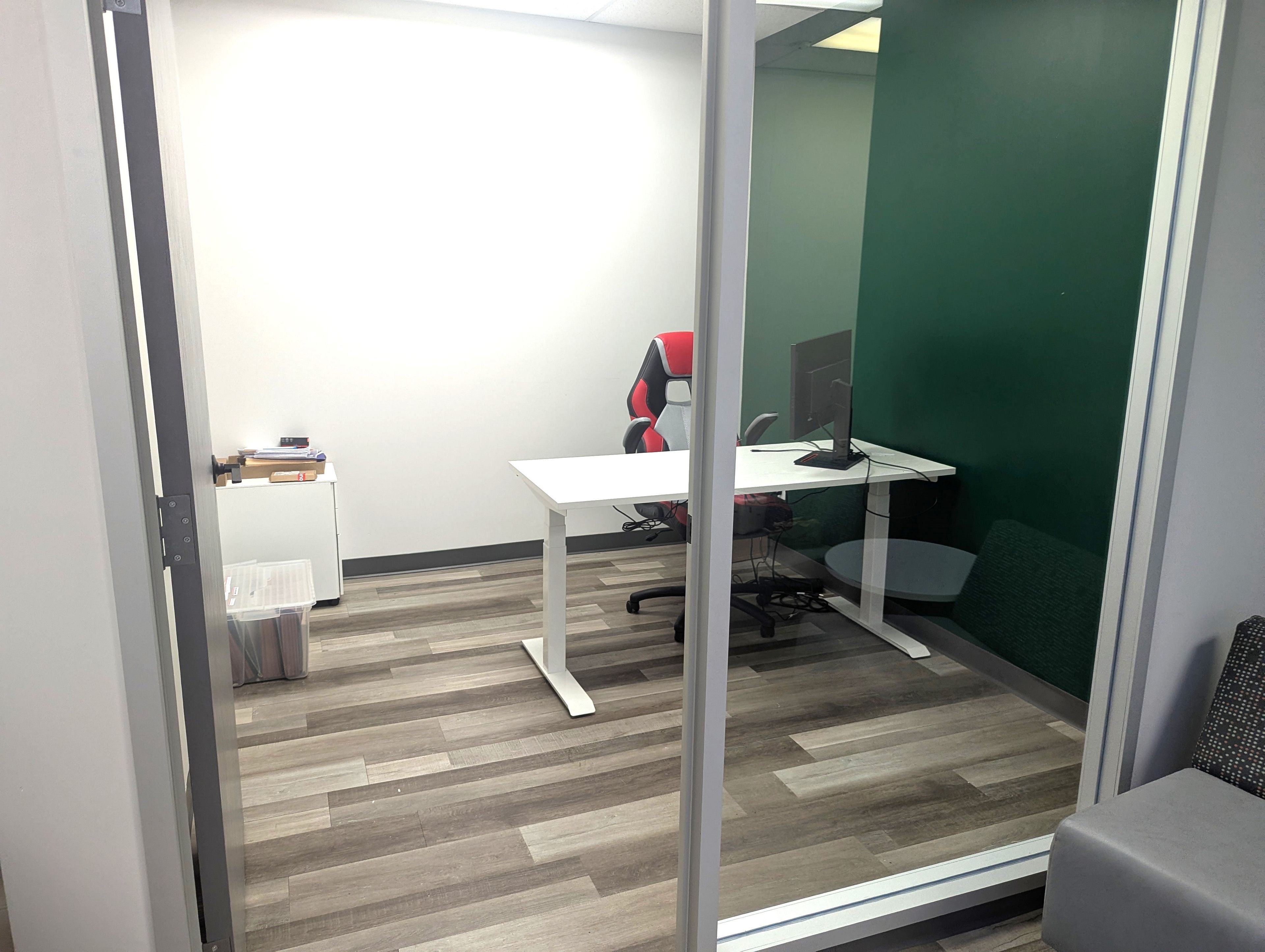 • Includes 5 enclosed offices, meeting room, and open reception area.