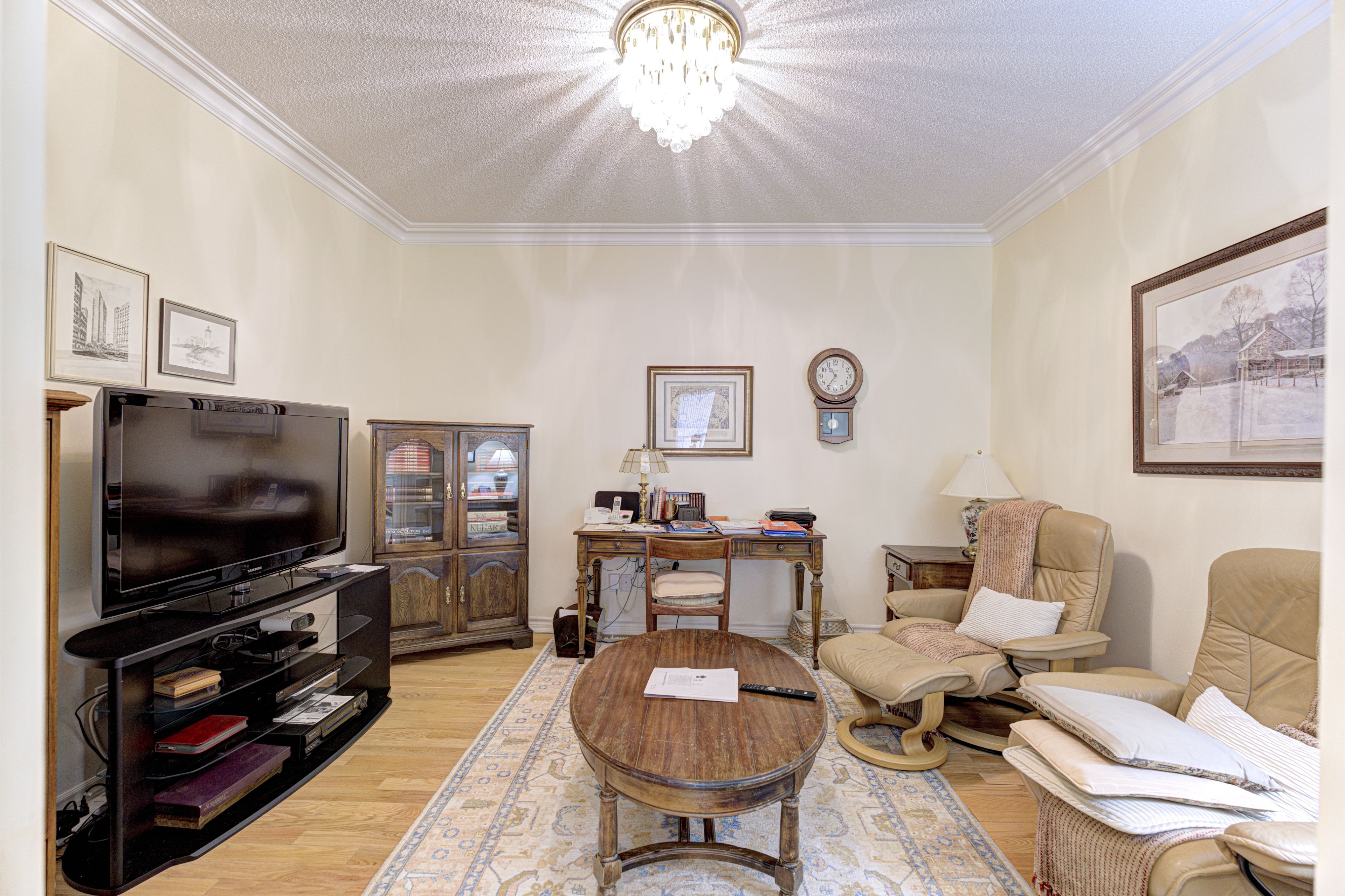 Welcome to "the palace", an aptly named residence offering an opulent lifestyle. This elegant condo building features upscale amenities, including an indoor pool, party room, gym, billiard room, library, hobby room, three guest suites, car wash, and 24-hour concierge security. The on-site superintendent ensures unparalleled safety and convenience for both security and maintenance, all in a sought-after neighborhood including the nearby glenerin inn and spa. You're a short drive from the u of t campus, shopping, hospitals and fantastic restaurants. This generous corner suite boasts over 2,100 sq ft of living space with 9' ceilings throughout. As you step inside you'll be welcomed by the grand front foyer. The separate eat-in kitchen, complete with a built-in pantry and gleaming countertops, simply perfect for entertaining. The kitchen opens to a large living/dining area with a gas fireplace, and a wall of windows allowing the light to pour in. Gorgeous views from your large corner balcony where the family chef will enjoy the convenience of a bbq hook-up. The expansive primary bedroom includes a 5-piece ensuite, a walk-in closet and a second large closet, providing ample storage. The bright and airy second bedroom features a large window, a 4-piece ensuite and a closet. The den offers versatile options for a study, sitting room or extra sleeping space. A powder room for guests discreetly located off the hall, a separate laundry area with stackable washer and dryer and plenty of storage throughout complete this stunning suite. The suite also includes a large private storage room (p3 196) and two conveniently located underground parking spaces. Don't miss your chance to call suite 706 "home".