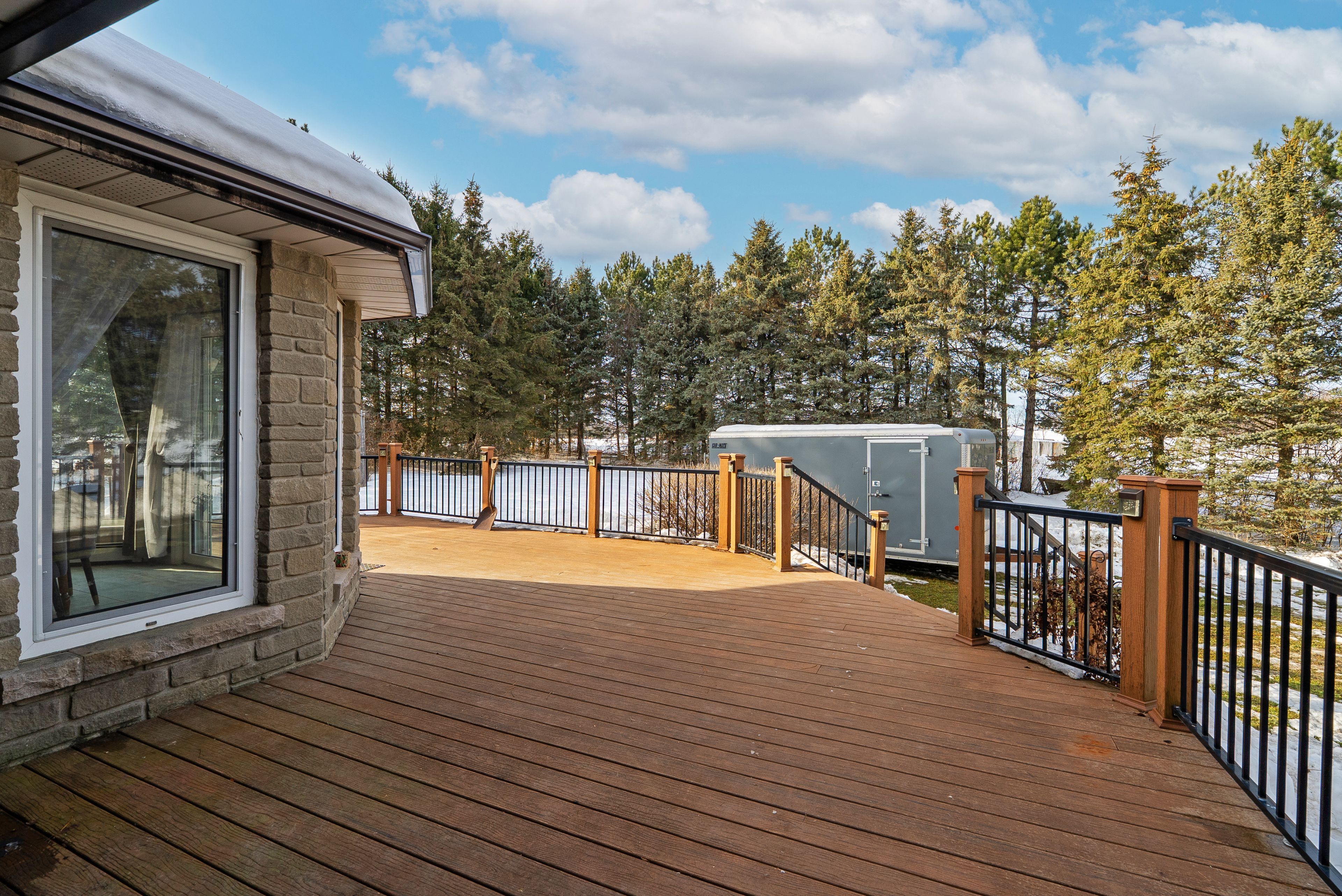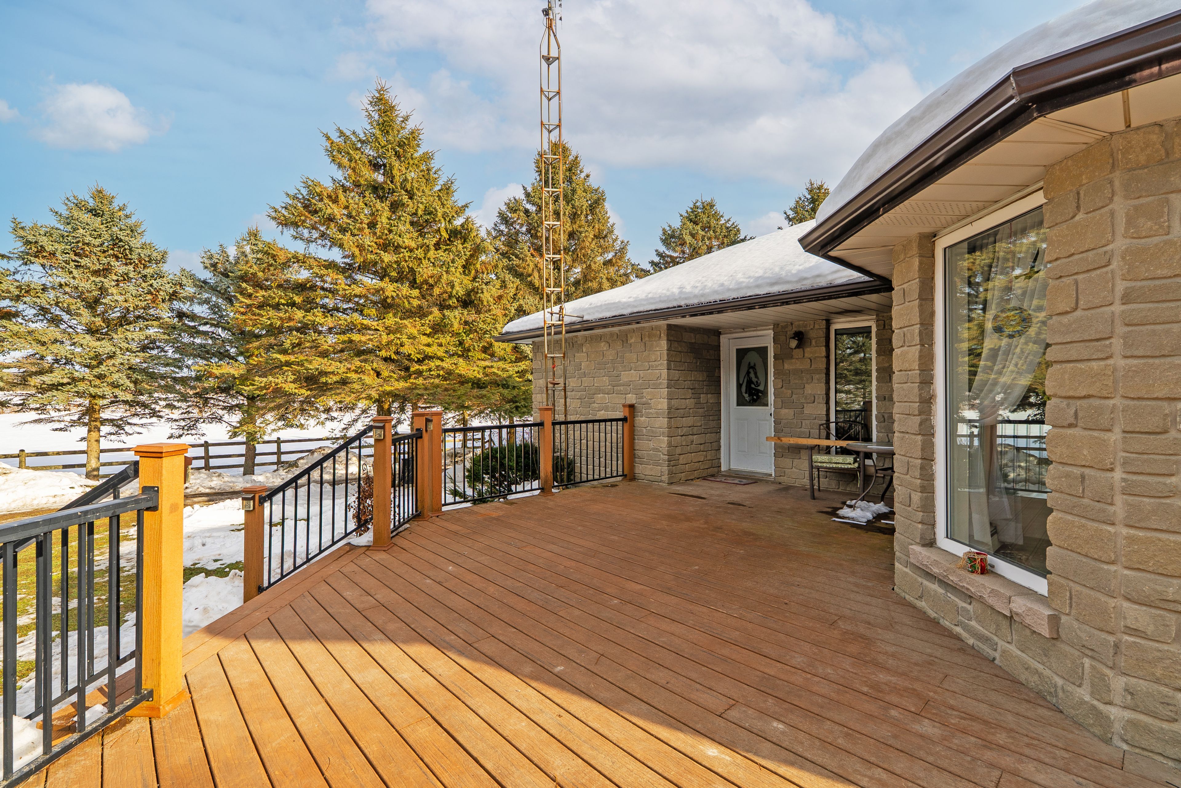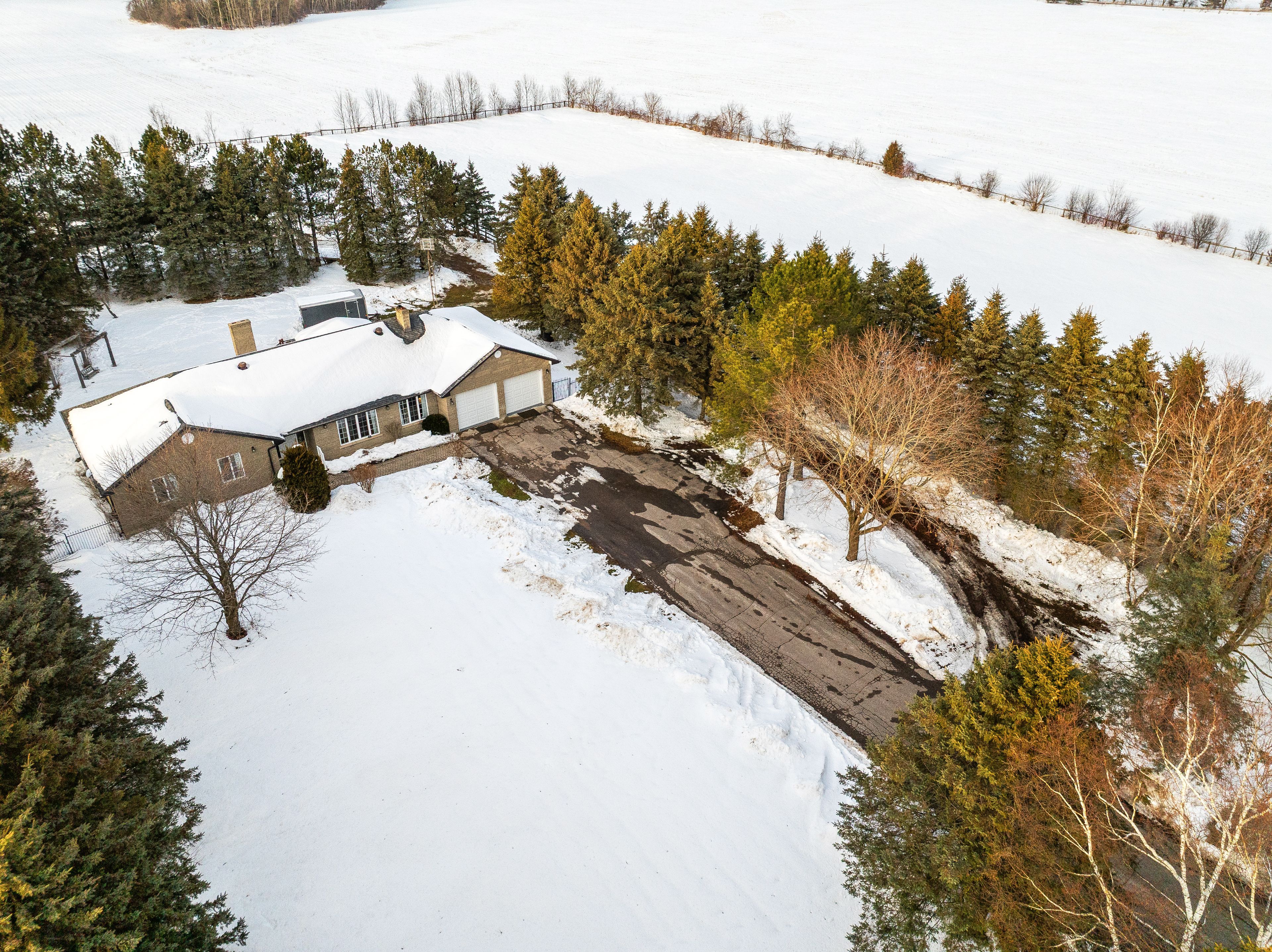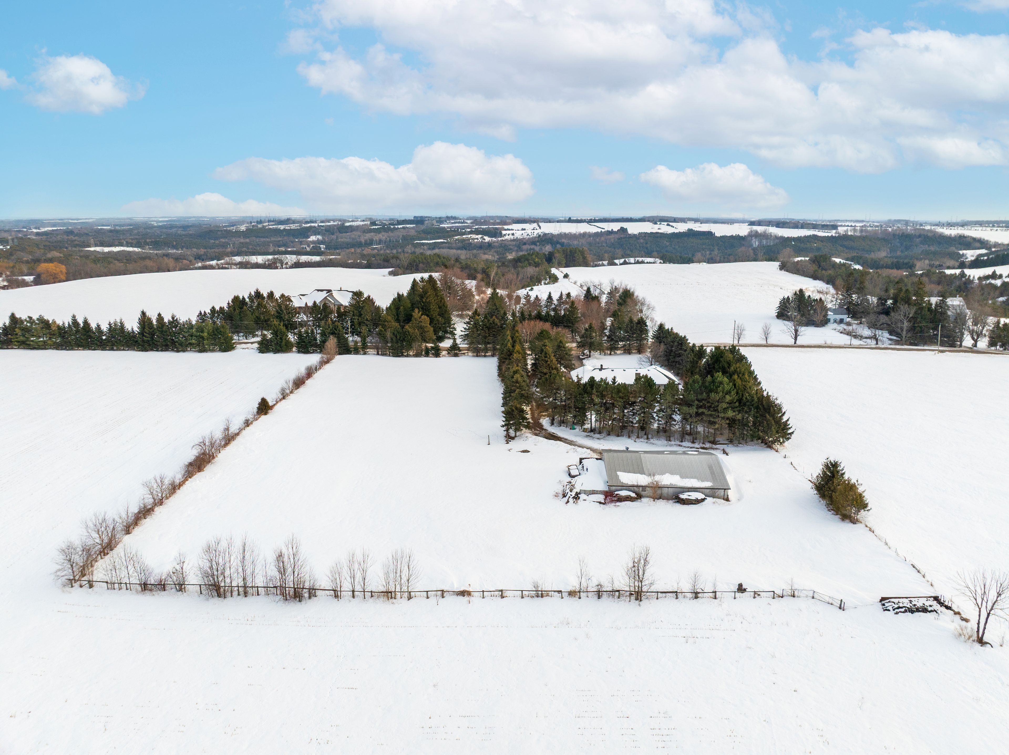 Set on 56 acres of picturesque land, this stunning custom built home features approximately 5000 sq ft of living space. With 3+2 bedrooms and 4 bathrooms, it is perfect for entertaining and embracing country living. Spend sunny summer days exploring the vast property, getting lost in nature, and enjoying the peace and privacy this incredible setting offers. Inside, the main floor boasts beautiful hardwood floors throughout, with a natural field stone fireplace in the great room and a walkout to the maintenance free deck and expansive yard. A formal dining room with french doors and large windows creates an elegant space for hosting. The updated eat-in kitchen features stone counters, a built-in microwave and oven, a large center island and breakfast bar, and a cooktop, offering a perfect spot to enjoy breakfast with serene views. A spacious family room off the kitchen is filled with natural light. The primary suite includes a renovated 4-piece ensuite with a glass-walled marble tile shower and a standalone soaker tub. Two additional generously sized bedrooms complete the main level. The lower level has above grade windows and features a large living room with a natural field stone fireplace, two additional bedrooms, a second kitchen, a workshop, a 3-piece bathroom, cold cellar, and separate entrance. A two-car garage offers direct access to the main floor and a separate entrance to the basement. Additionally, a detached barn/workshop with water and hydro provides ample space for hobbies, projects, or storage. Whether you're entertaining guests, unwinding by the fireplace, or simply wandering the rolling landscape, this is a true country retreat where you can get lost in nature while staying close to home.