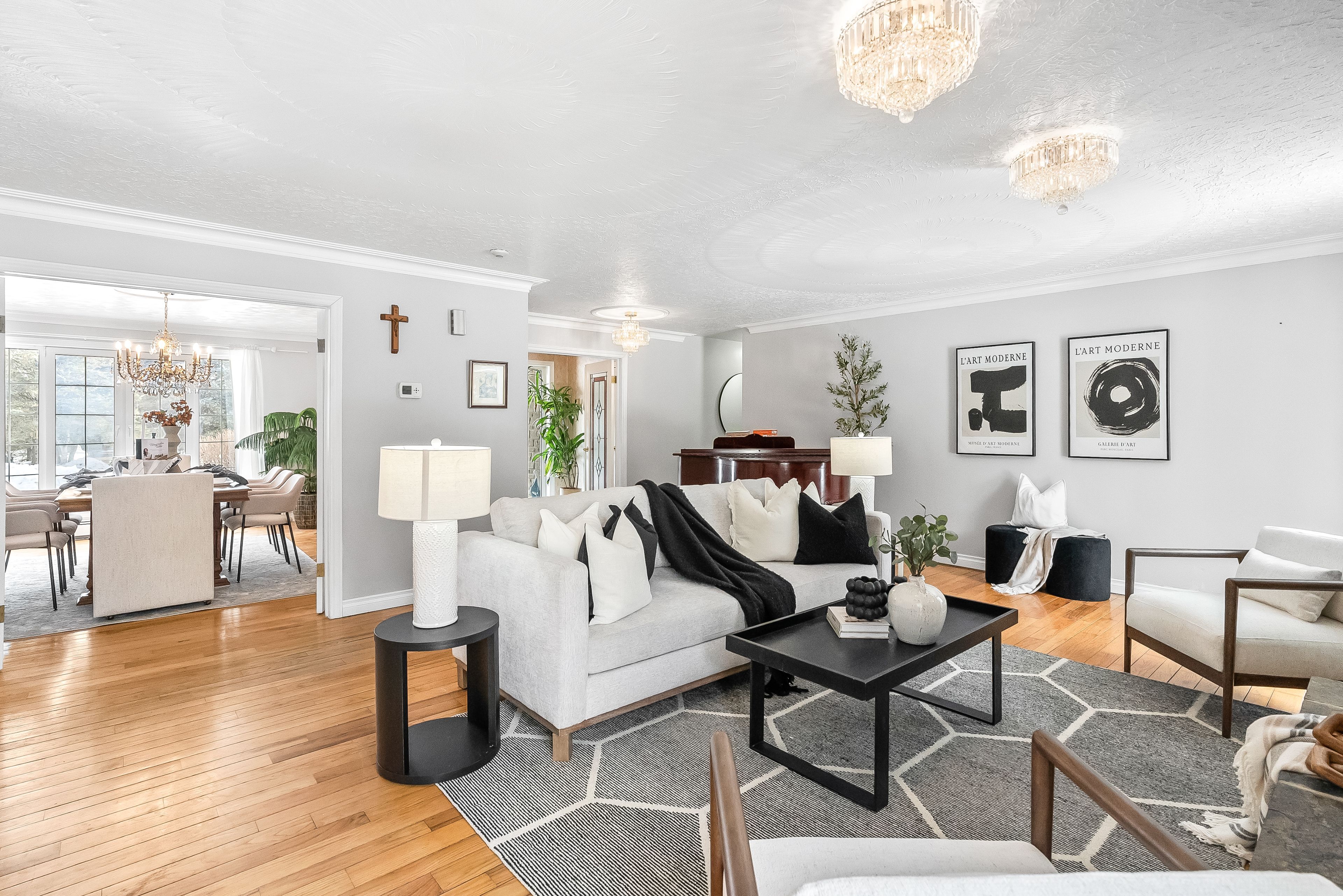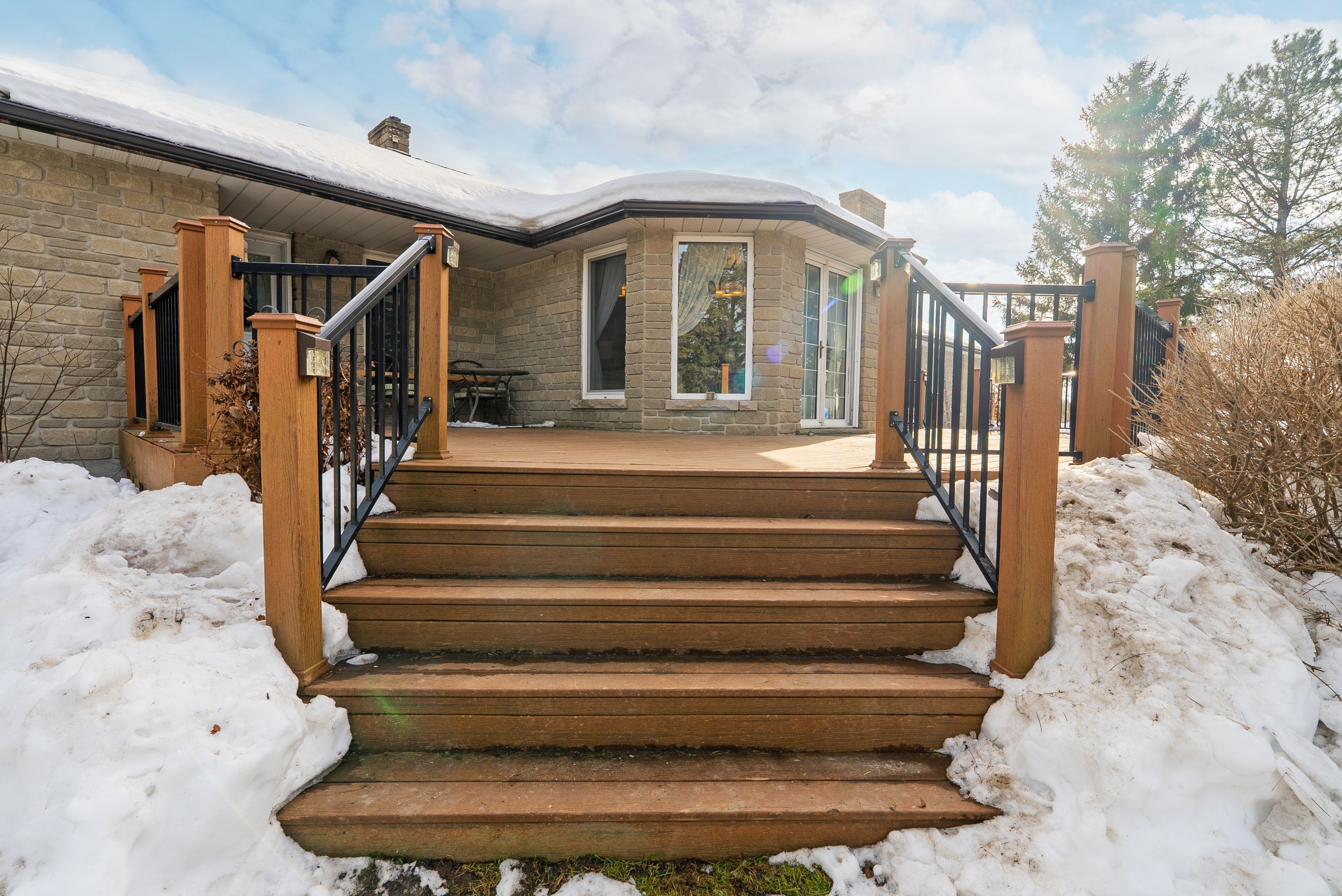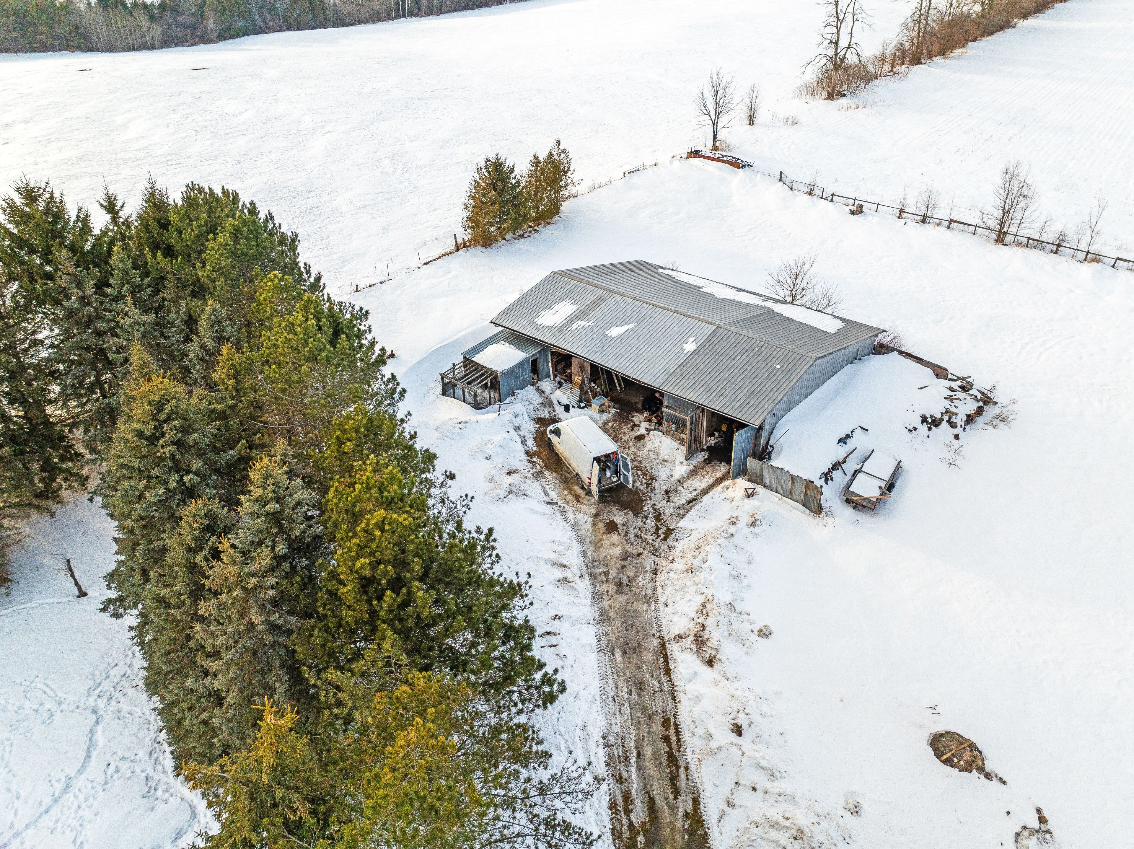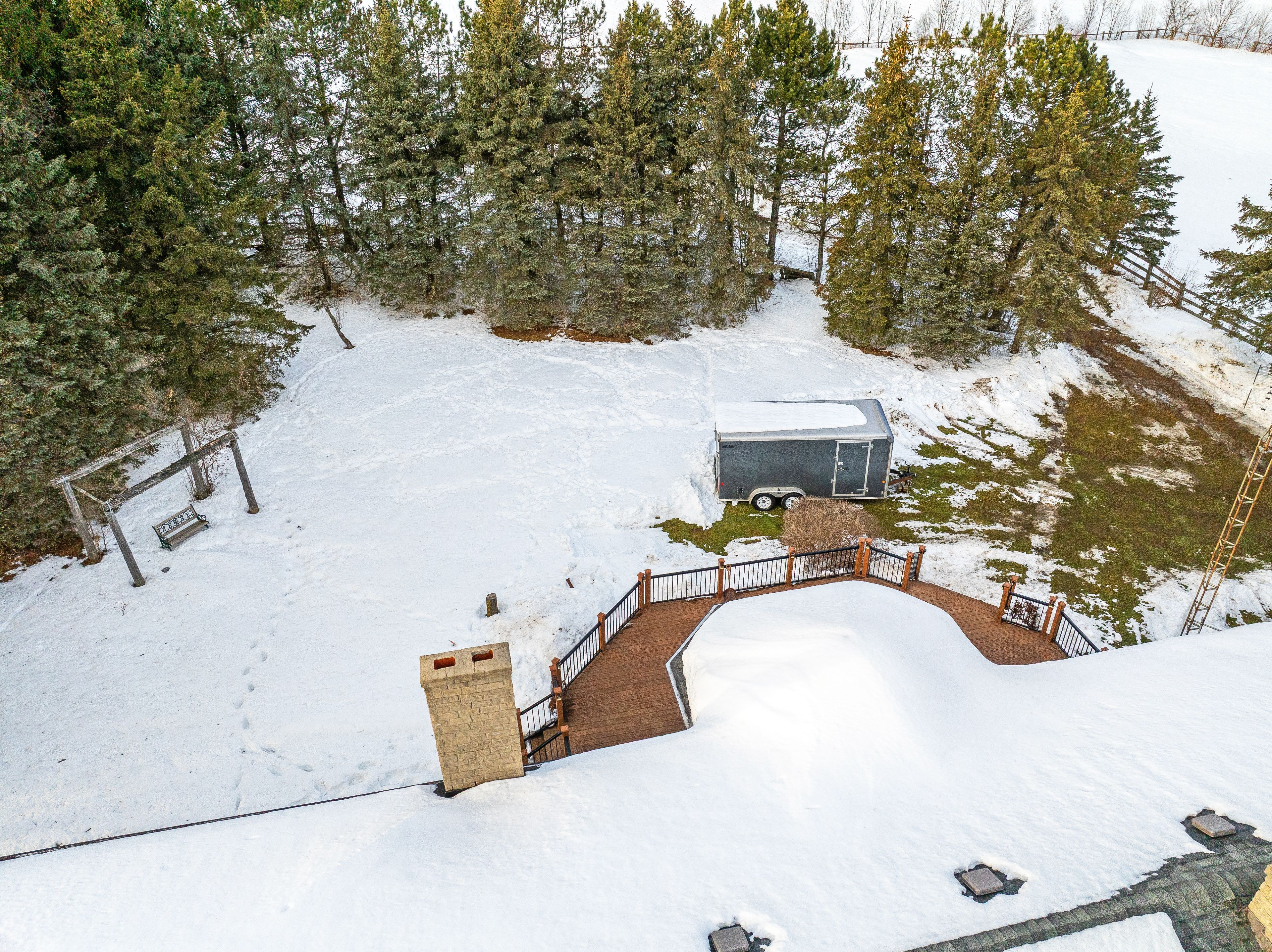Set on 56 acres of picturesque land, this stunning custom built home features approximately 5000 sq ft of living space. With 3+2 bedrooms and 4 bathrooms, it is perfect for entertaining and embracing country living. Spend sunny summer days exploring the vast property, getting lost in nature, and enjoying the peace and privacy this incredible setting offers. Inside, the main floor boasts beautiful hardwood floors throughout, with a natural field stone fireplace in the great room and a walkout to the maintenance free deck and expansive yard. A formal dining room with french doors and large windows creates an elegant space for hosting. The updated eat-in kitchen features stone counters, a built-in microwave and oven, a large center island and breakfast bar, and a cooktop, offering a perfect spot to enjoy breakfast with serene views. A spacious family room off the kitchen is filled with natural light. The primary suite includes a renovated 4-piece ensuite with a glass-walled marble tile shower and a standalone soaker tub. Two additional generously sized bedrooms complete the main level. The lower level has above grade windows and features a large living room with a natural field stone fireplace, two additional bedrooms, a second kitchen, a workshop, a 3-piece bathroom, cold cellar, and separate entrance. A two-car garage offers direct access to the main floor and a separate entrance to the basement. Additionally, a detached barn/workshop with water and hydro provides ample space for hobbies, projects, or storage. Whether you're entertaining guests, unwinding by the fireplace, or simply wandering the rolling landscape, this is a true country retreat where you can get lost in nature while staying close to home.