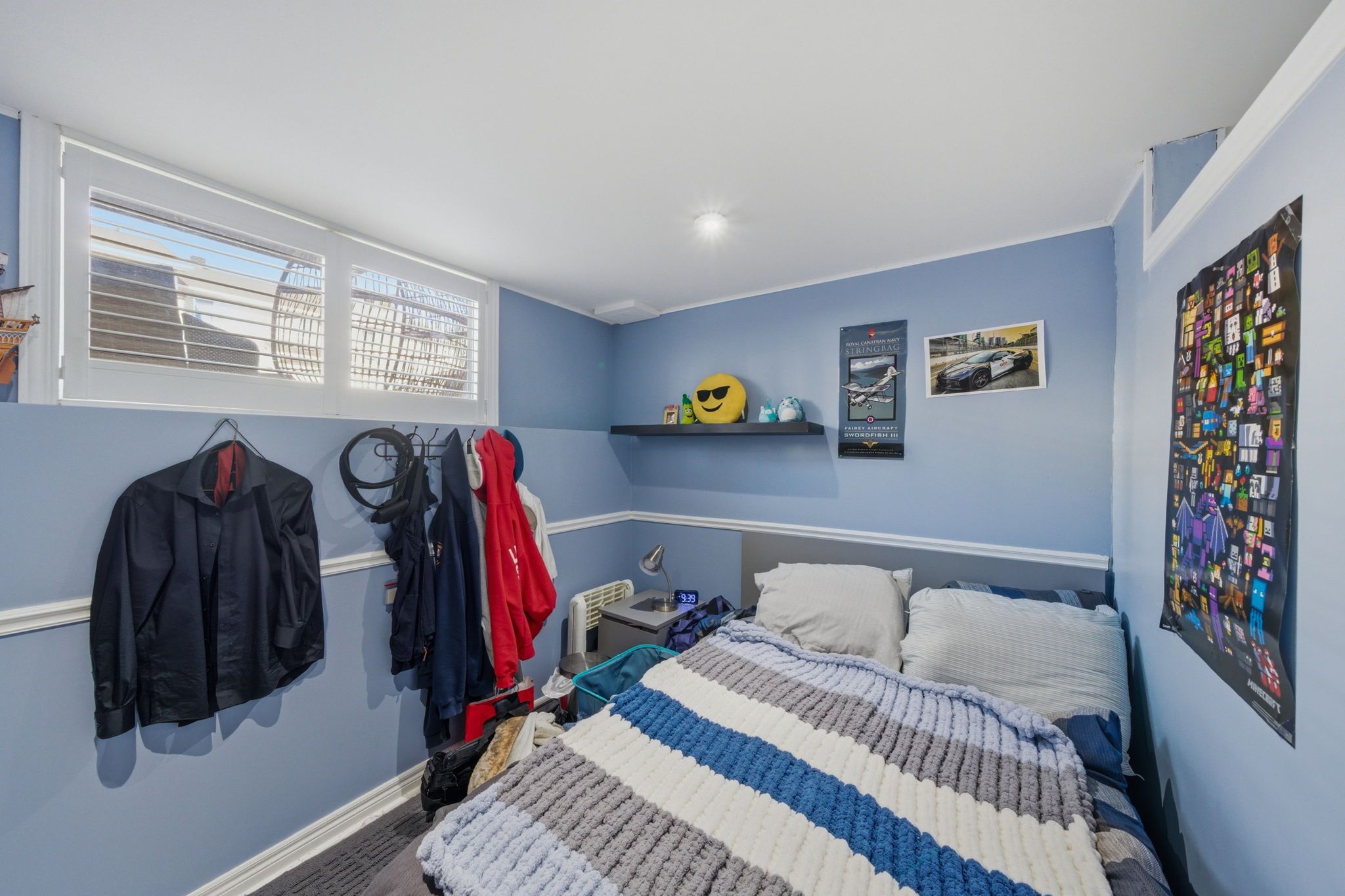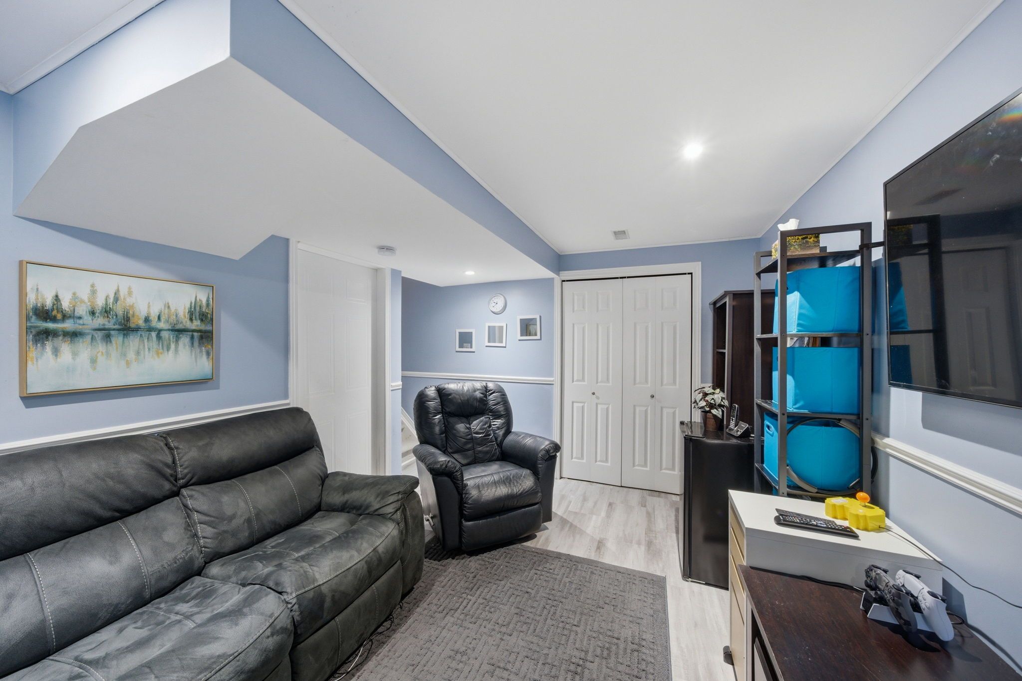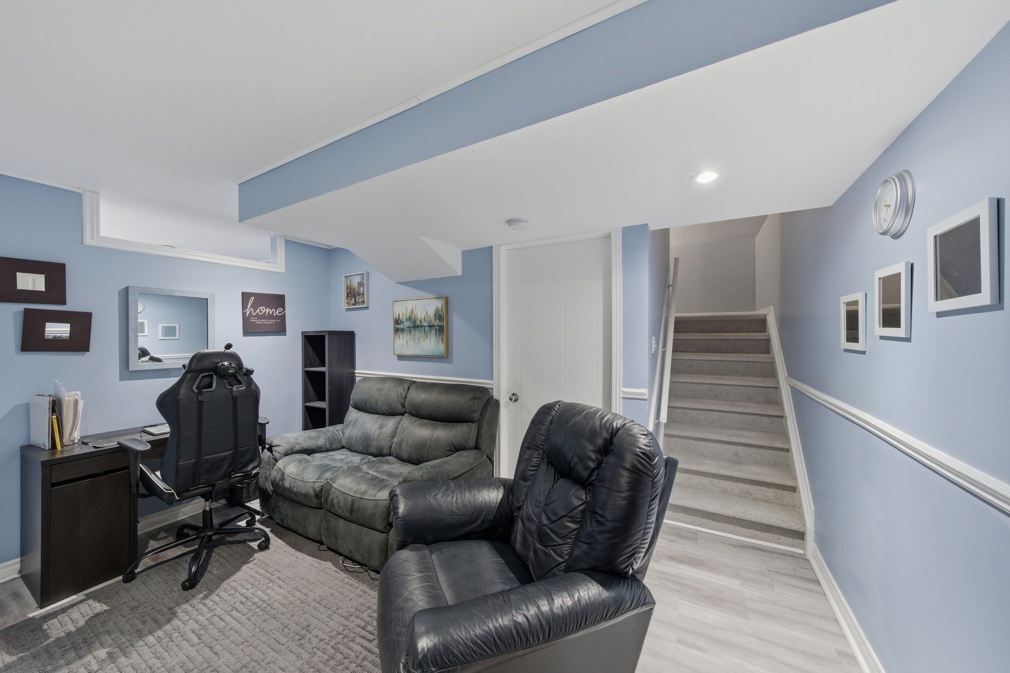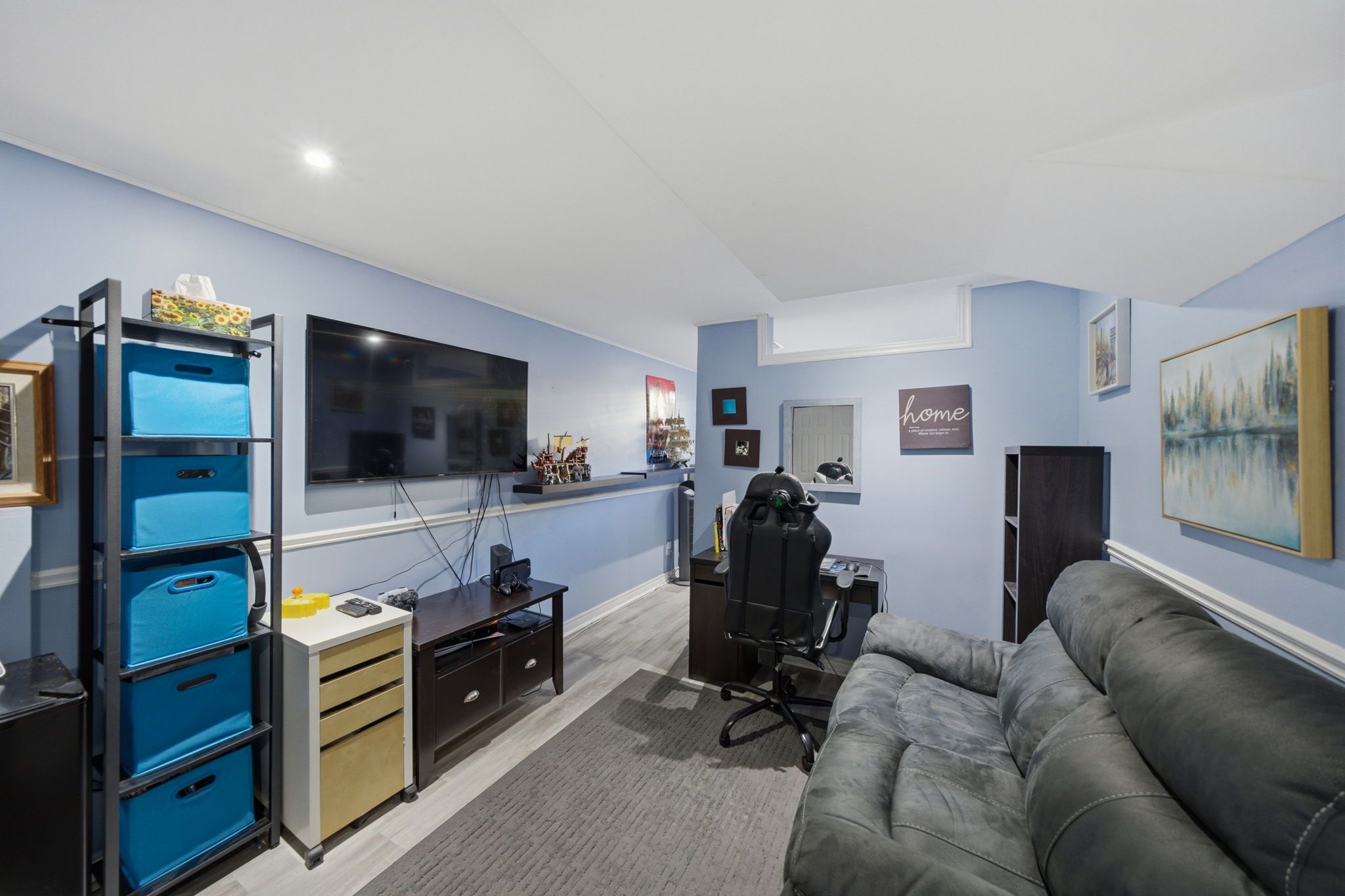 • Versatile finished basement currently used as bedroom and rec room.