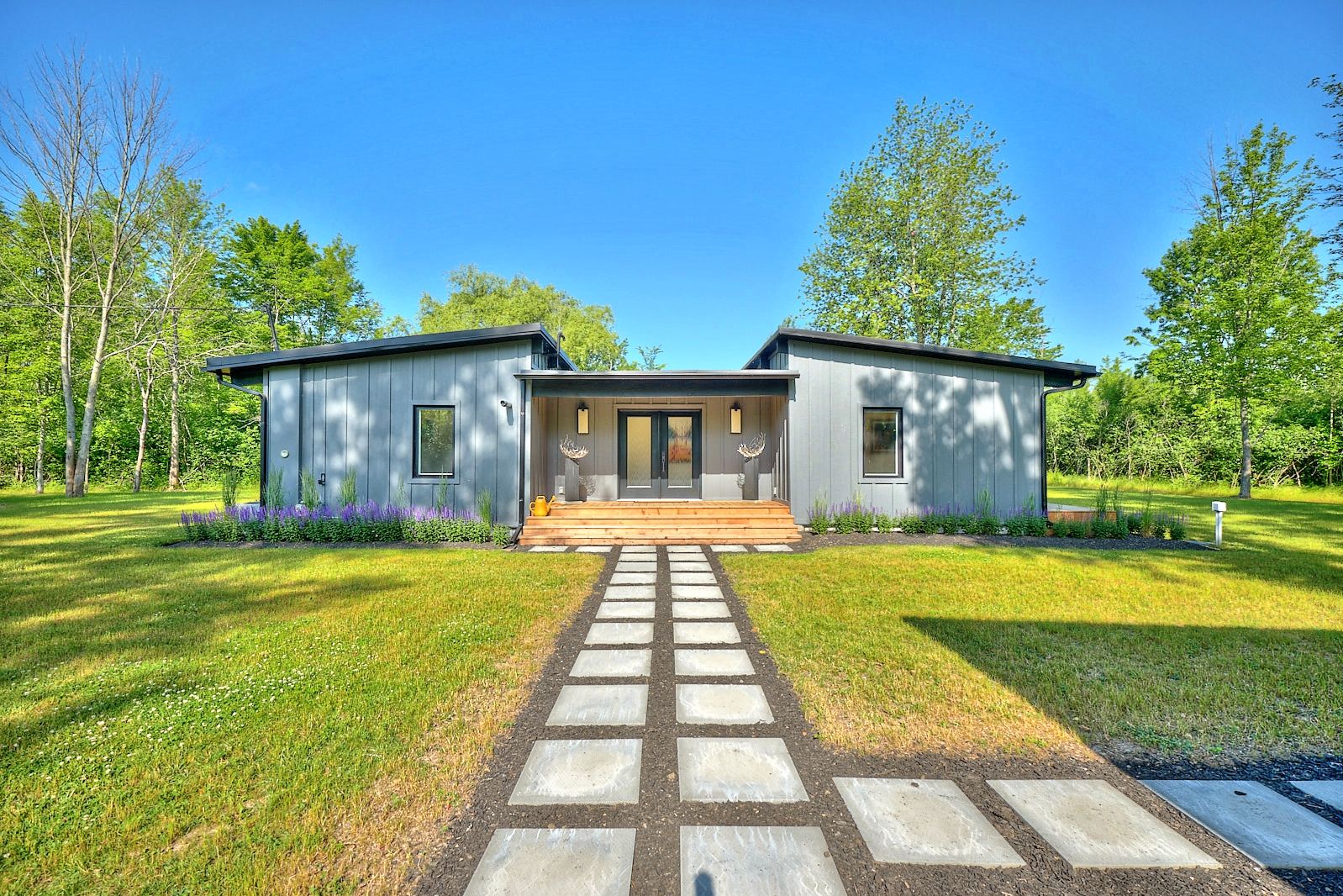 • Frank Lloyd Wright inspired bungalow nestled at the end of a forested road.