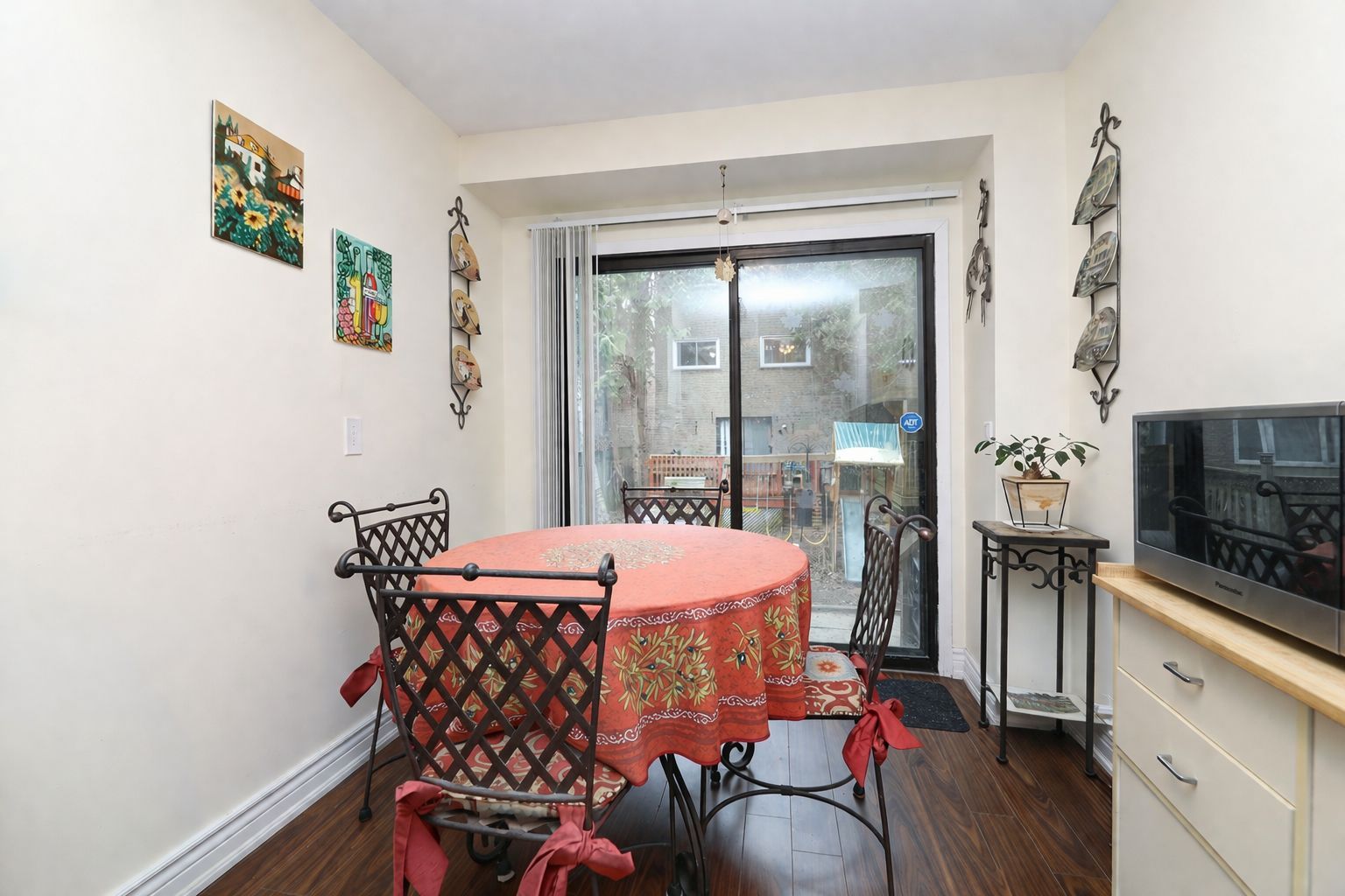 • Treed backyard with deck, perfect for relaxation and gatherings.