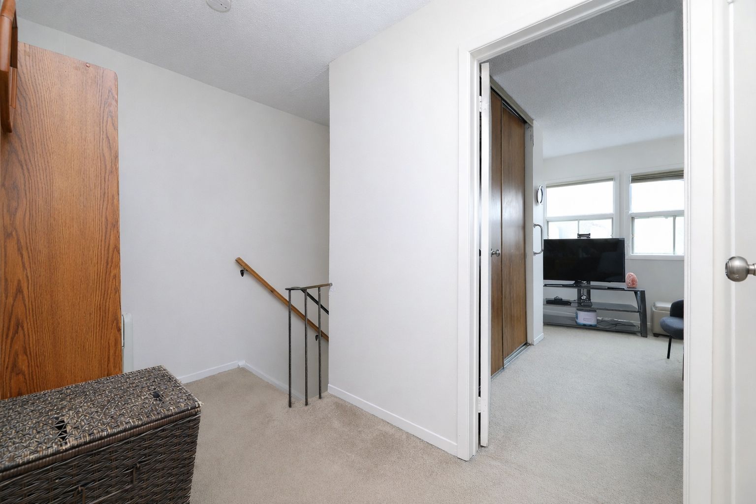 • Spacious main floor with wood flooring and large windows.