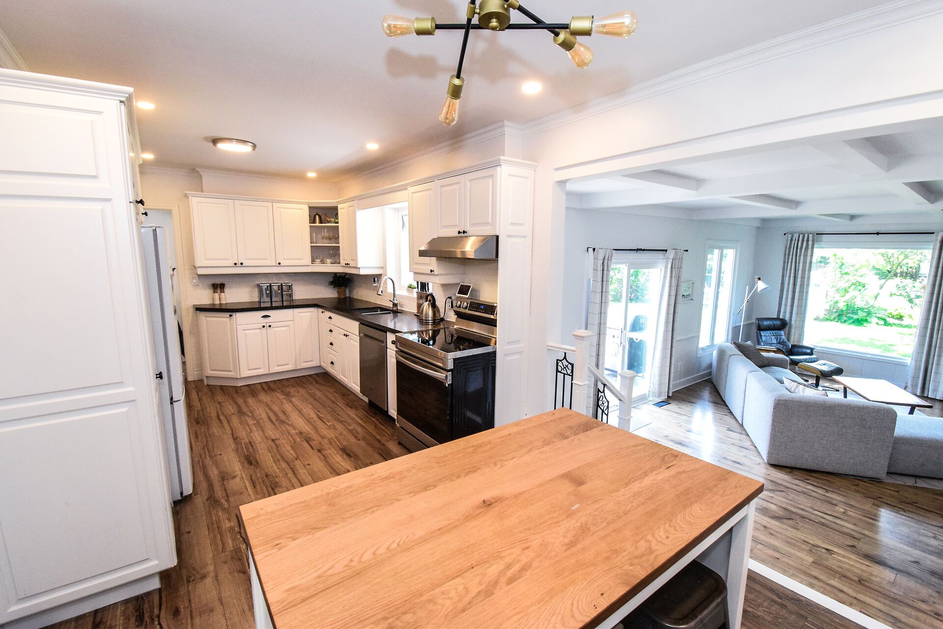 Beautifully updated bungalow located in the heart of port dalhousie. Take a short walk to the beach and enjoy the quaint shops and restaurants, the waterfront trail, lakeside park and the famous carousel. Located in a family friendly neighbourhood within walking distance to parks and schools. When not enjoying all that port dalhousie proper has to offer, you can enjoy the hot summer days in your very own backyard oasis. This stunning property is 183ft deep and features extensive landscaping and a separately fenced 18 x 36 inground pool surrounded by decking and artificial turf. The expansive 3+1 bed, 3 bath bungalow boats over 2000 sq ft of above ground living space plus a fully finished lower level. Step inside the front door to a welcoming foyer and large living room area. From the living room you will be impressed with the updated kitchen with eating area, ample cabinetry and granite countertops. An addition off of the kitchen includes a spacious family room with an office nook and w/b fireplace. The wall to wall windows allow for natural light to flow in and show off a panoramic view of the yard. The main floor mudroom/laundry is a convenient place to drop your coats and boots without having to drag them through the house. A 2pc powder room and flex room can also be found here. The flex room is currently used as storage but could be used as a home office and has direct access to the exterior. The main floor also includes an updated 4 pc bathroom and 3 bedrooms. The primary suite makes for a wonderful adult retreat with a large walk in closet and patio doors to a private deck. That's not all.... The lower lever adds additional living space with an updated 3 pc bath, 4thbed and huge rec room (2022). Plenty of space for everyone. This home has had countless updates over the past 3 years including furnace/ac(21), some windows(22), eaves, soffit, pool heater and salt cell, front porch and railing (23), pool liner (22), concrete driveway (24), fence and more.