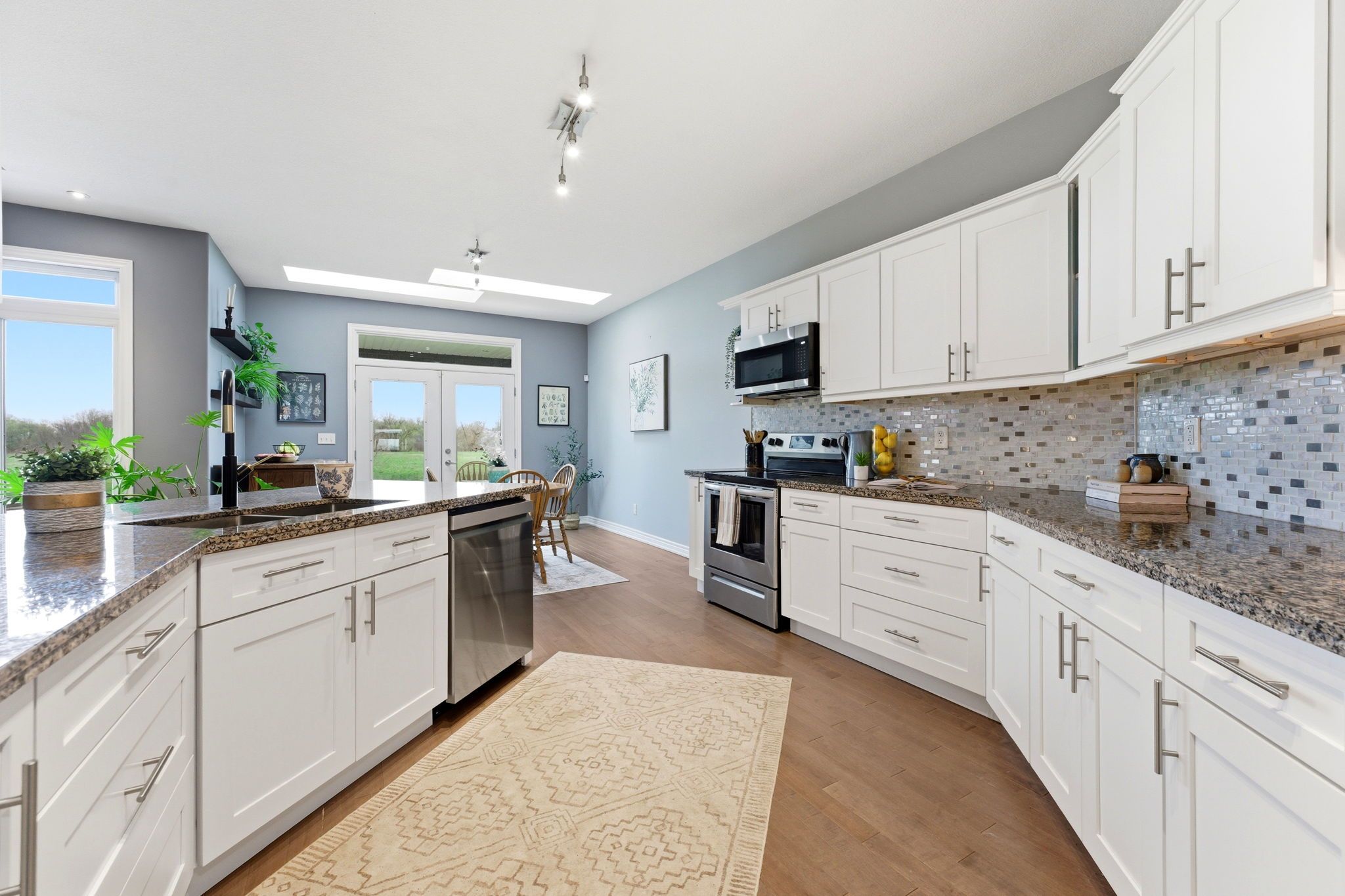 • Stunning kitchen featuring stainless steel appliances and granite countertops.