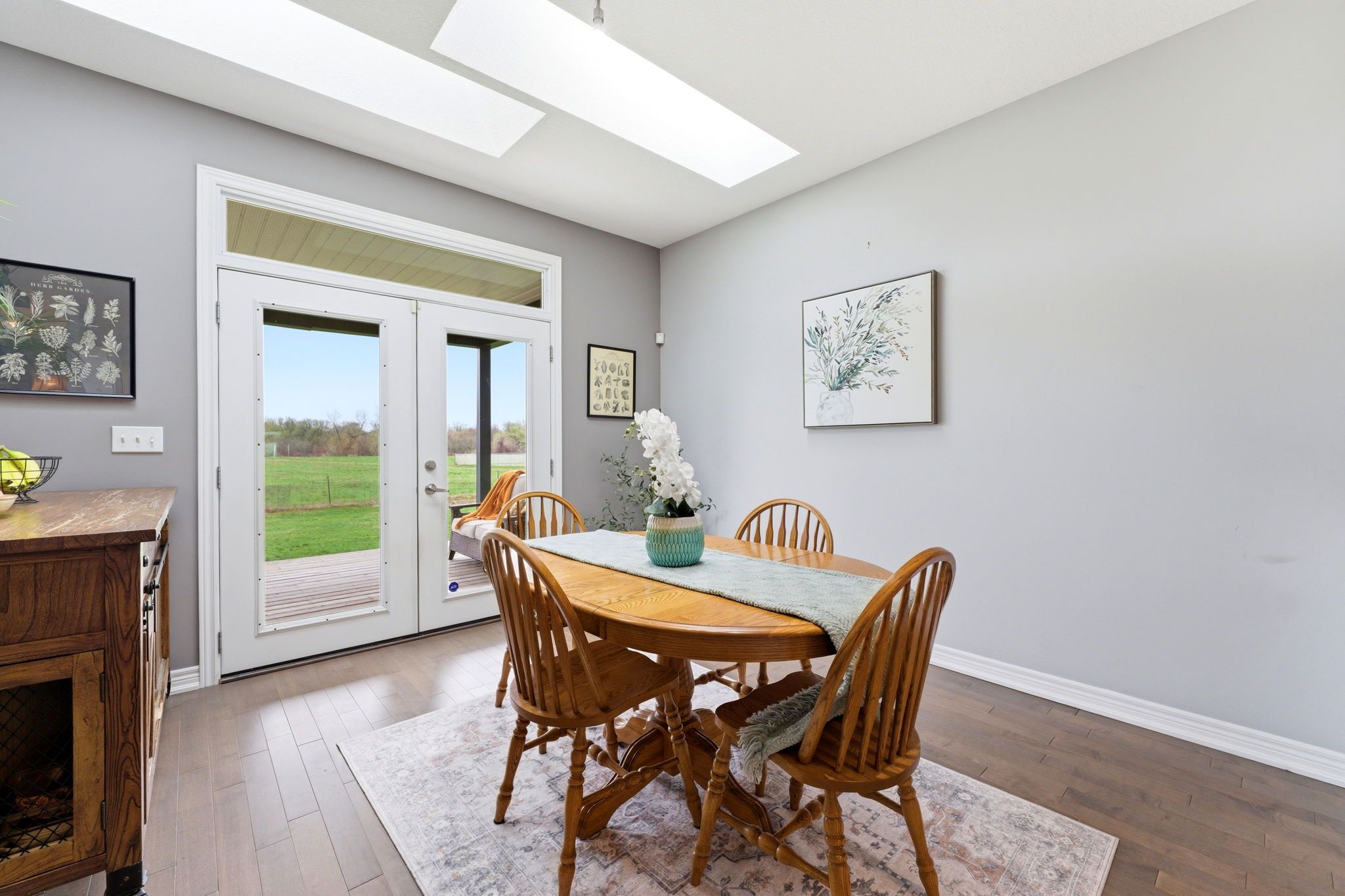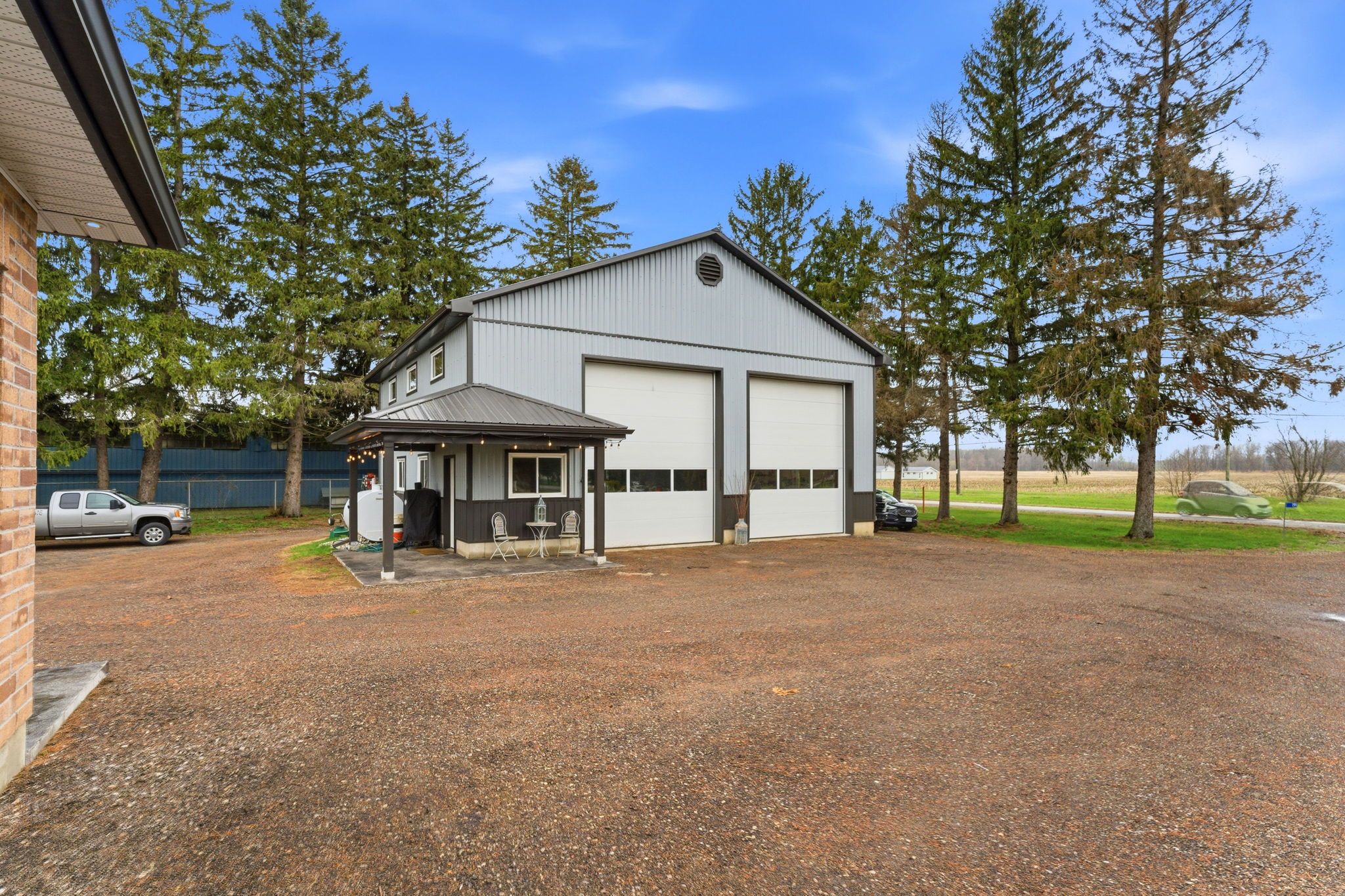 Have you been searching for the perfect countryside home that is completely move-in ready, loaded with upgrades, and features an incredible detached heated shop? Welcome to 191 brant county highway 53 in cathcart. This custom-built 4 bedroom home offers over 2,750 square feet of beautifully finished living space and the perfect balance of country living with modern comfort. A spacious tiled foyer welcomes you into the bright open concept main floor, where natural light fills the home. The inviting living room features a gas fireplace with stone hearth and rustic mantel, while the adjoining dining area is ideal for entertaining. The stunning kitchen offers stainless steel appliances, white shaker-style cabinetry, granite countertops, tiled backsplash, breakfast bar, and ample cupboard and counter space. French doors off the dining area lead to the backyard and large partially covered deck, perfect for relaxing or hosting guests. Thoughtfully designed, the spacious primary suite is privately located on one side of the home and features a walk-in closet plus spa-like ensuite with walk-in shower and soaker tub overlooking the backyard. Additional bedrooms are generously sized, with a 4-piece bathroom and convenient main floor laundry completing the level. The finished lower level adds even more living space with a large rec room, additional bedroom, 3-piece bathroom, utility room, storage, and room for the whole family. Outside, the property continues to impress with an attached 3-car garage plus a remarkable 36 ft x 36 ft detached shop offering approximately 1,300 sq ft of space, an 8 ft x 36 ft mezzanine, 16 ft ceilings, oversized doors, a 2-piece bathroom, full insulation, heat, and hydro. Ideal for hobbyists, contractors, home-based business owners, or storing boats, rvs, and toys. Set on a large country lot just a short drive to amenities in woodstock and brantford, this is the complete package buyers have been waiting for.
