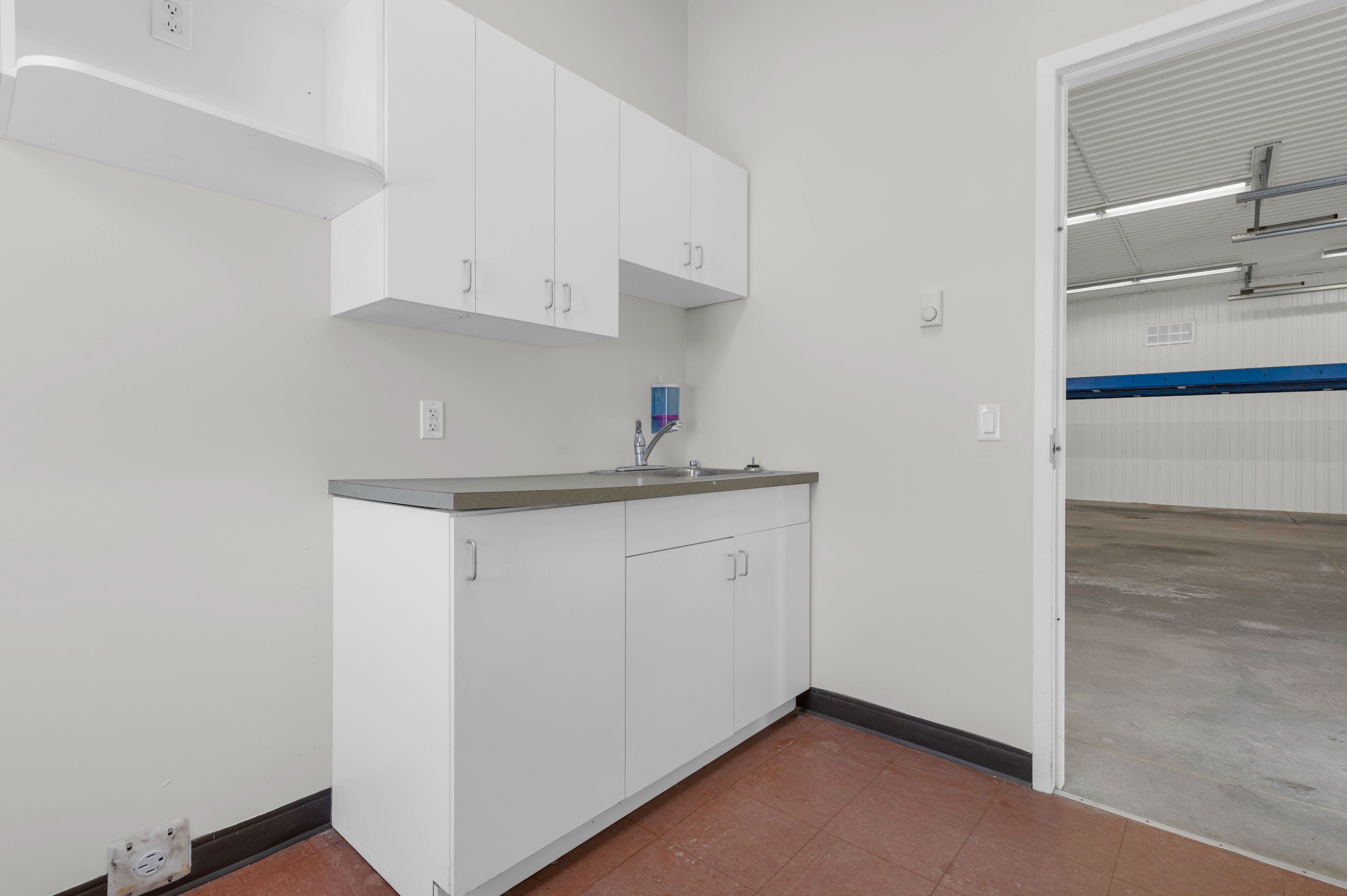 • Includes a front office, kitchenette, and separate utility room.