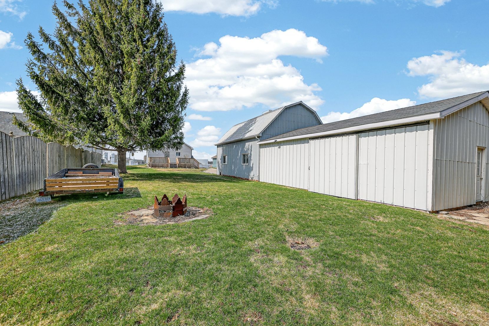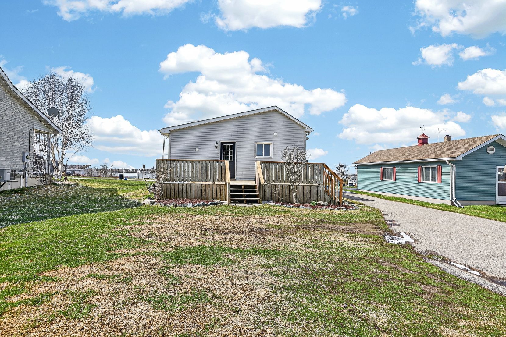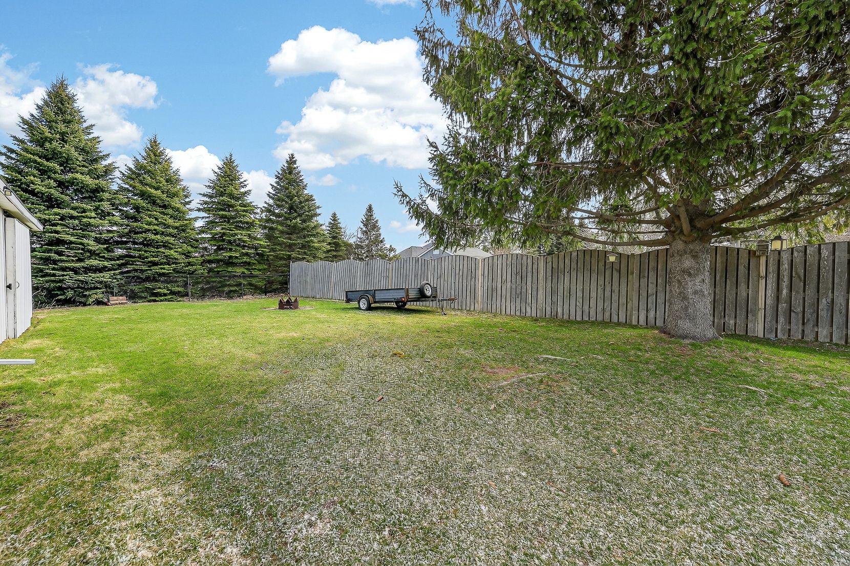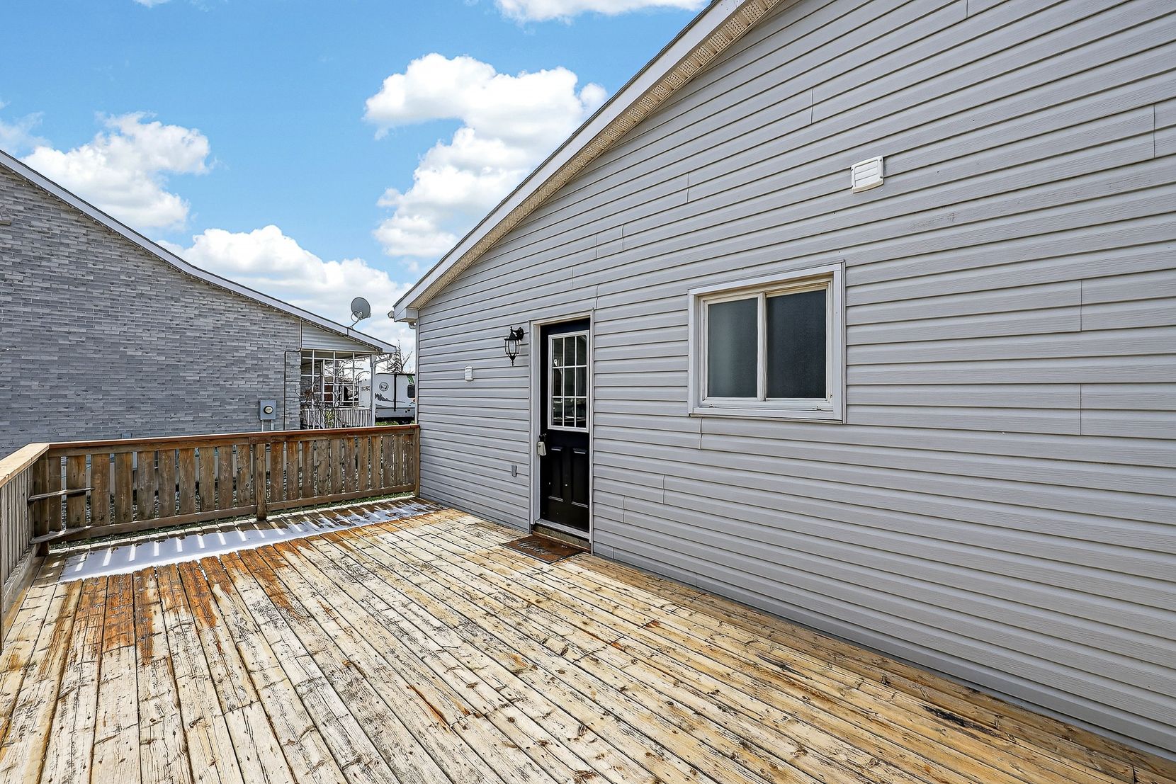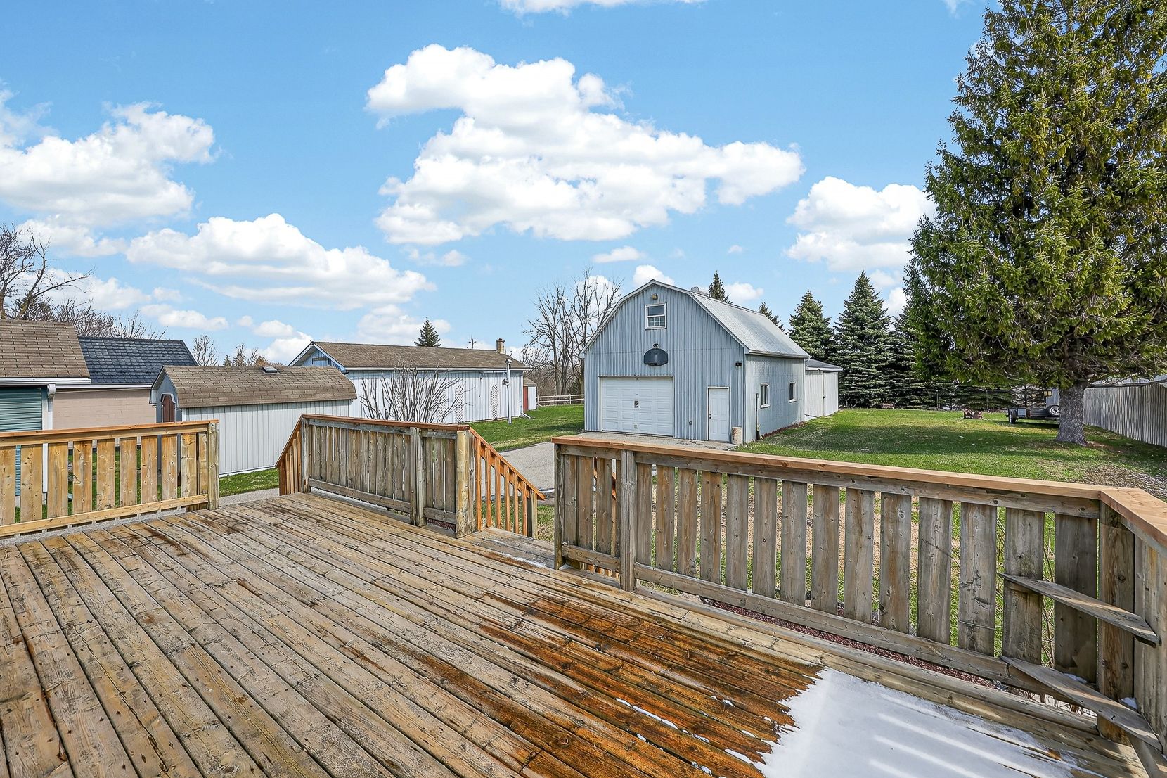 • Large deck overlooking a deep backyard for outdoor enjoyment.