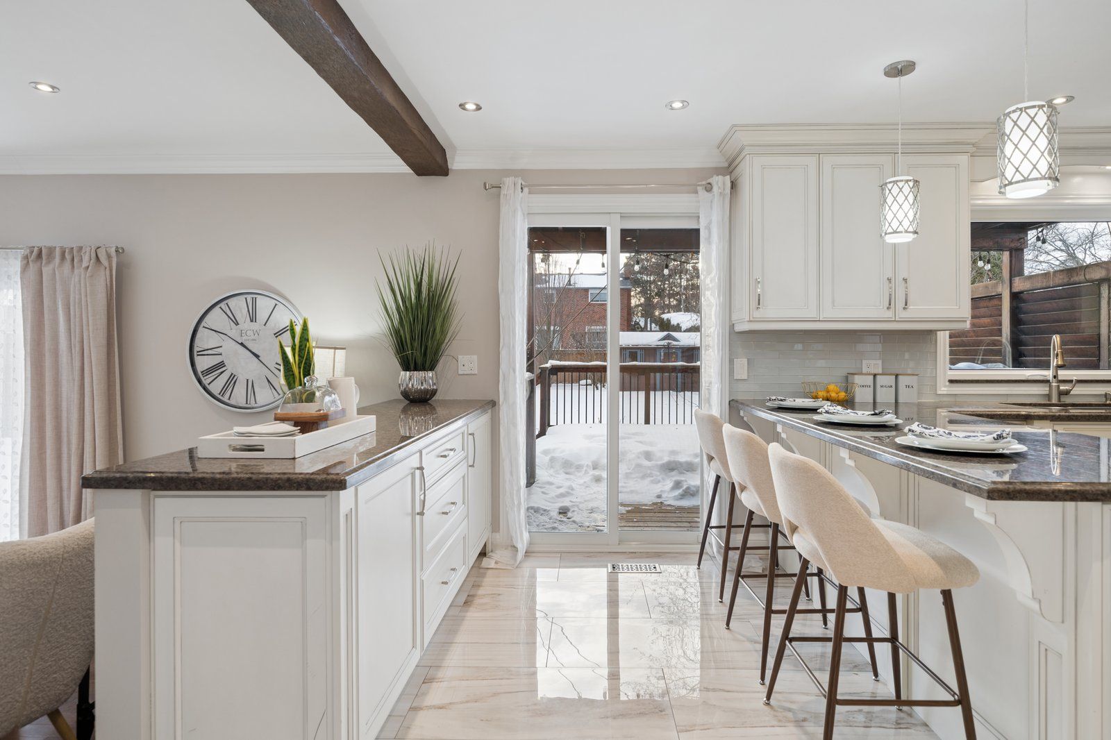 Nestled on prestigious spruce hill road and surrounded by distinguished multi-million-dollar estates, 1910 spruce hill road is a breathtaking residence where late-1970s architectural character has been fully reimagined with timeless, high-end finishes throughout, creating a truly turn-key executive home for the most discerning buyer. Every inch of this property has been thoughtfully renovated, offering an exceptional layout with four generous bedrooms and beautifully appointed bathrooms on the second level, including a serene primary retreat with a private walk-out deck-perfect for enjoying morning coffee or evening sunsets. The main floor showcases expansive principal rooms designed for both daily living and elegant entertaining, featuring a sunken living room, formal dining room, and a spectacular chef-inspired kitchen equipped with premium appliances, a statement breakfast bar, and seamless sightlines to the inviting family room anchored by a top-of-the-line wood-burning fireplace with a custom mantle. The fully finished basement extends the home's versatility, providing an ideal in-law or young-adult suite complete with a massive bedroom, office space, oversized living area, kitchenette, and a private three-piece ensuite. Outdoors, the property transforms into an entertainer's dream, boasting a beautifully landscaped, flat backyard with a balance of open green space and leisure areas, an in-ground pool, mature gardens, and a garden shed, all designed for effortless enjoyment and privacy. Located in one of pickering's most highly sought-after neighbourhoods, spruce hill is celebrated for its exceptional schools, nearby parks, and convenient access to highways 401 and 407, as well as the go train, making it ideal for commuters and families alike. This is a rare opportunity to own an executive home that seamlessly blends iconic 1970s charm with refined modern living, delivering enduring style, comfort, and quality in one of the city's most coveted settings.