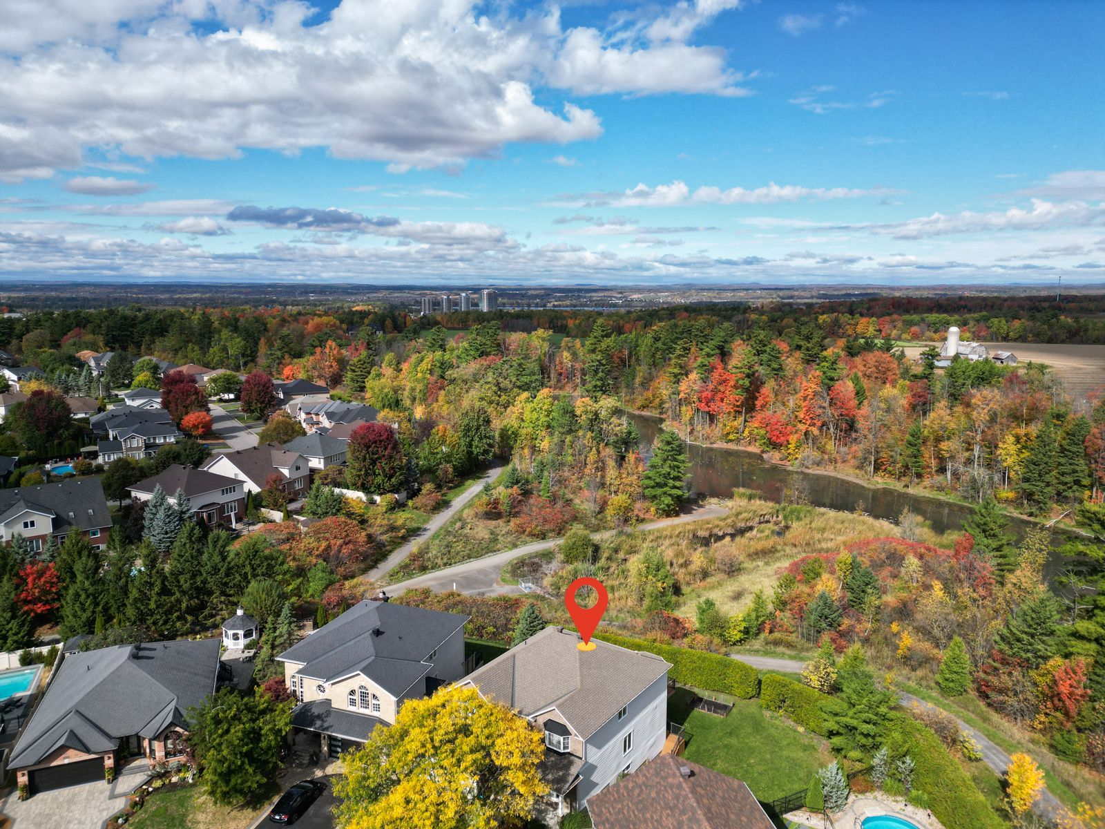 Welcome to 1911 caprihani way, an exceptional 4-bedroom luxury residence nestled in the highly sought-after springridge neighbourhood, backing directly green space and walking paths, it provides a rare, elevated panoramic view of cardinal creek karst. Situated on a quiet, family-friendly street with one of the largest lots in the area, this stunning home offers elevated picturesque views of nature and wildlife from its expansive 2nd floor deck creating a private estate retreat with no rear neighbours giving an absolute "wow factor". This richcraft sheraton model was their gold standard and demonstrated by the elegant open staircase and french doors throughout the home which add timeless sophistication, while oversized windows flood the space with natural light. Designed for both entertaining and everyday living, the gourmet kitchen features a sleek stovetop, double ovens, and an oversized granite island that anchors the heart of the home. More so, the open-concept kitchen-to-great room flow with oversize windows along the back of the house draws magnificent view inwards. With convenient proximity to parks, top-rated schools, and shopping, this location perfectly balances serenity and accessibility. Upstairs, four spacious bedrooms provide exceptional comfort, including two private suites complete with their own ensuite bathrooms and walk-in closets - ideal for growing families or multi-generational living. The thoughtfully designed walk-out basement extends the living space and includes a fully soundproofed theatre room with cork flooring, projector, screen, and surround sound system for an immersive cinematic experience. Every detail of this home reflects quality craftsmanship and refined living, offering both luxurious finishes and functional design. Whether hosting elegant gatherings or enjoying peaceful mornings overlooking the greenspace, this remarkable property delivers an unparalleled lifestyle opportunity in one of orléans' most desirable communities.