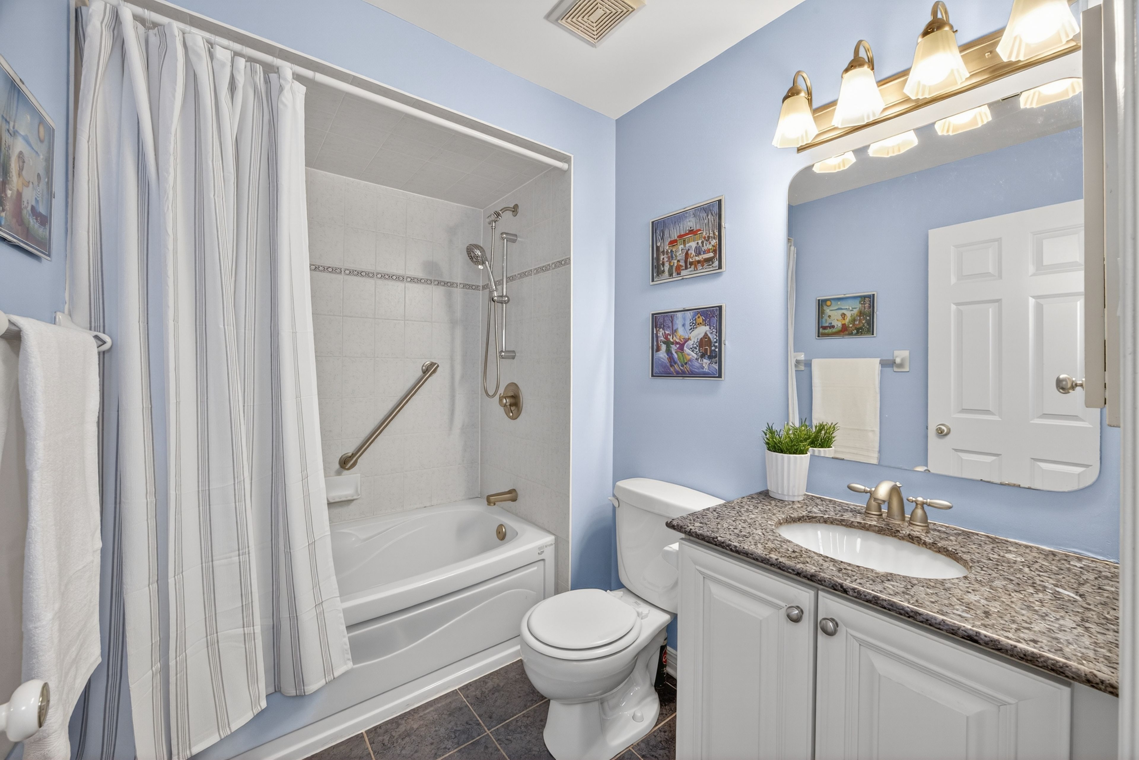 • Gourmet kitchen with granite island, perfect for cooking and entertaining.
