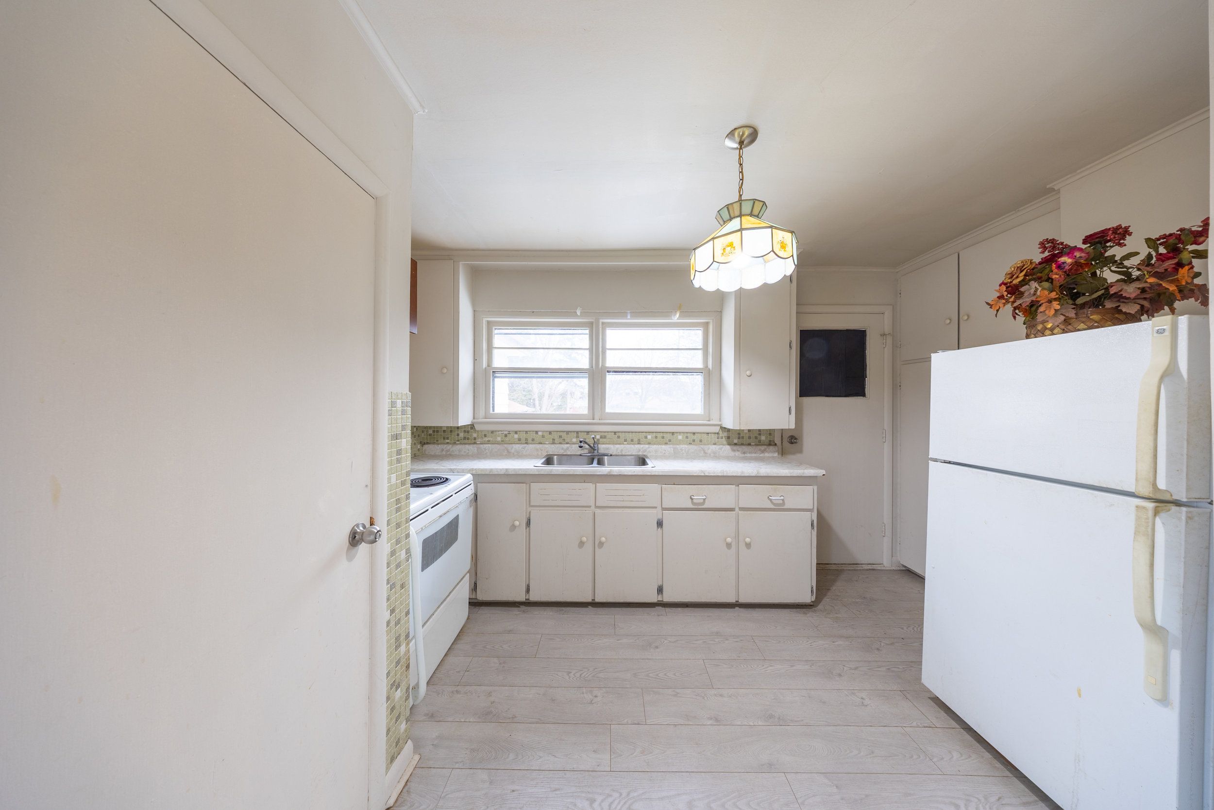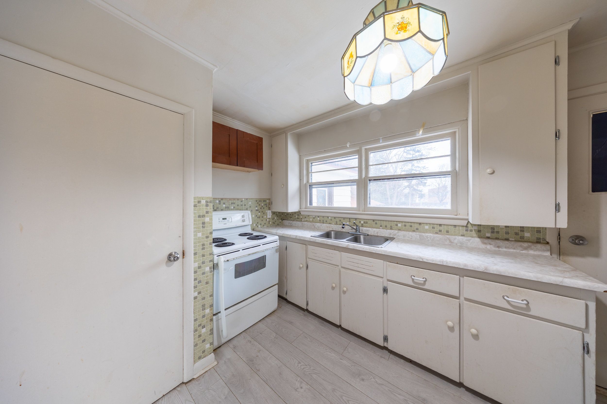 Situated on a quiet street tucked behind a commercial plaza, this property offers an impressive 250 ft x 97 ft (approximate) lot, zoned r3 currently, opening the door of future possibilities. Whether you're looking to build your dream home, explore multi-dwelling potential, or invest in a well-located property. The existing home features 3 bedrooms and a full bathroom on the main floor. The basement has an additional kitchen and living space for multi family use. The detached shed has a large footprint, set back in the property for additional storage or workspace. Roof (2022 approx)