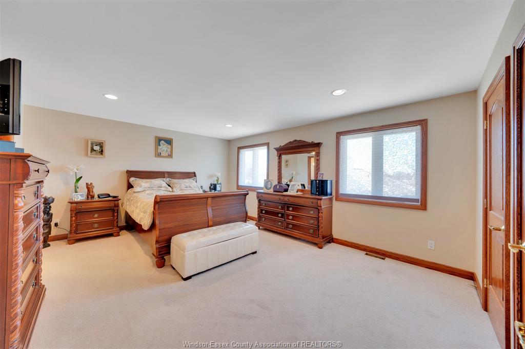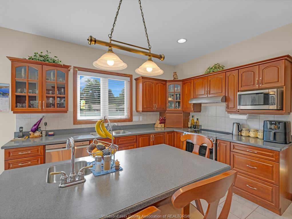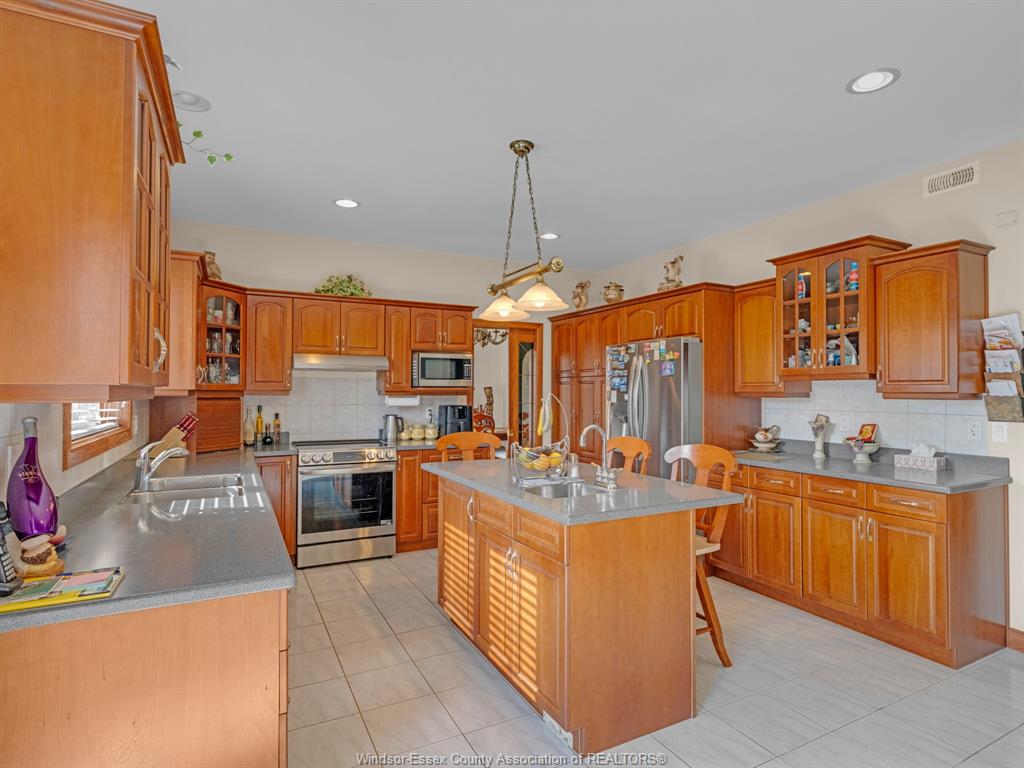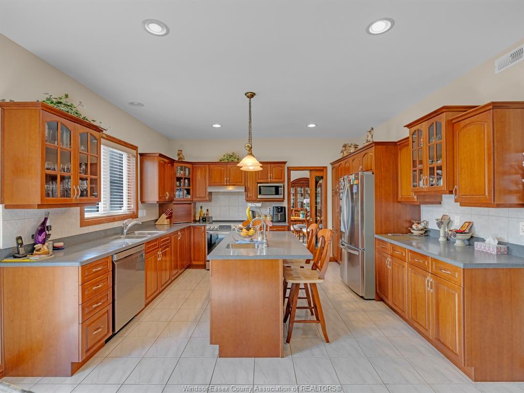 Welcome to this stunning custom built home located on a quiet cul-de-sac in a highly sought after neighbourhood in tecumseh. The home features 3 bedrooms & 3 bathrooms, spacious foyer, large kitchen with custom cherry wood cabinets, formal living room with many windows bringing in lots of natural light, and separate dining room with 11 ft ceilings and main floor laundry. Primary bedroom is complete with ensuite & jacuzzi tub as well as his & her walk-in closets. Heated in-ground salt water pool, storage shed, 2 car garage, massive circular concrete driveway, vinyl fence & sprinkler system. This property offers outstanding curb appeal and a backyard oasis designed for entertaining. Minutes away from tecumseh vista academy and e. C row expressway. Call me today to view this beautiful home!