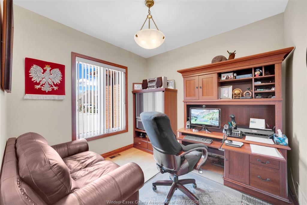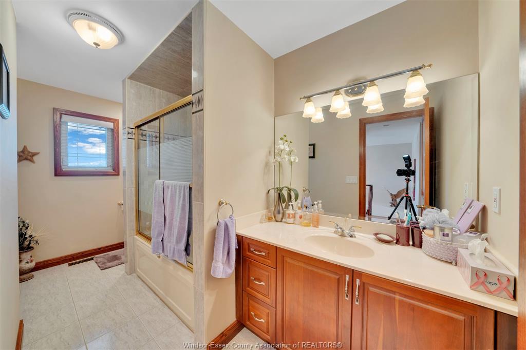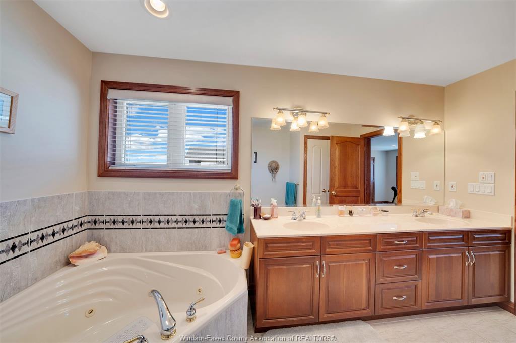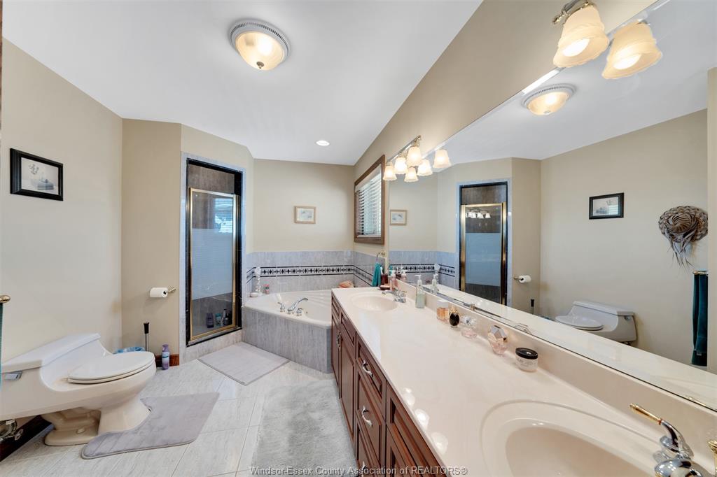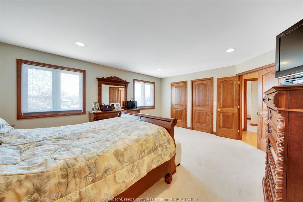 Welcome to this stunning custom built home located on a quiet cul-de-sac in a highly sought after neighbourhood in tecumseh. The home features 3 bedrooms & 3 bathrooms, spacious foyer, large kitchen with custom cherry wood cabinets, formal living room with many windows bringing in lots of natural light, and separate dining room with 11 ft ceilings and main floor laundry. Primary bedroom is complete with ensuite & jacuzzi tub as well as his & her walk-in closets. Heated in-ground salt water pool, storage shed, 2 car garage, massive circular concrete driveway, vinyl fence & sprinkler system. This property offers outstanding curb appeal and a backyard oasis designed for entertaining. Minutes away from tecumseh vista academy and e. C row expressway. Call me today to view this beautiful home!