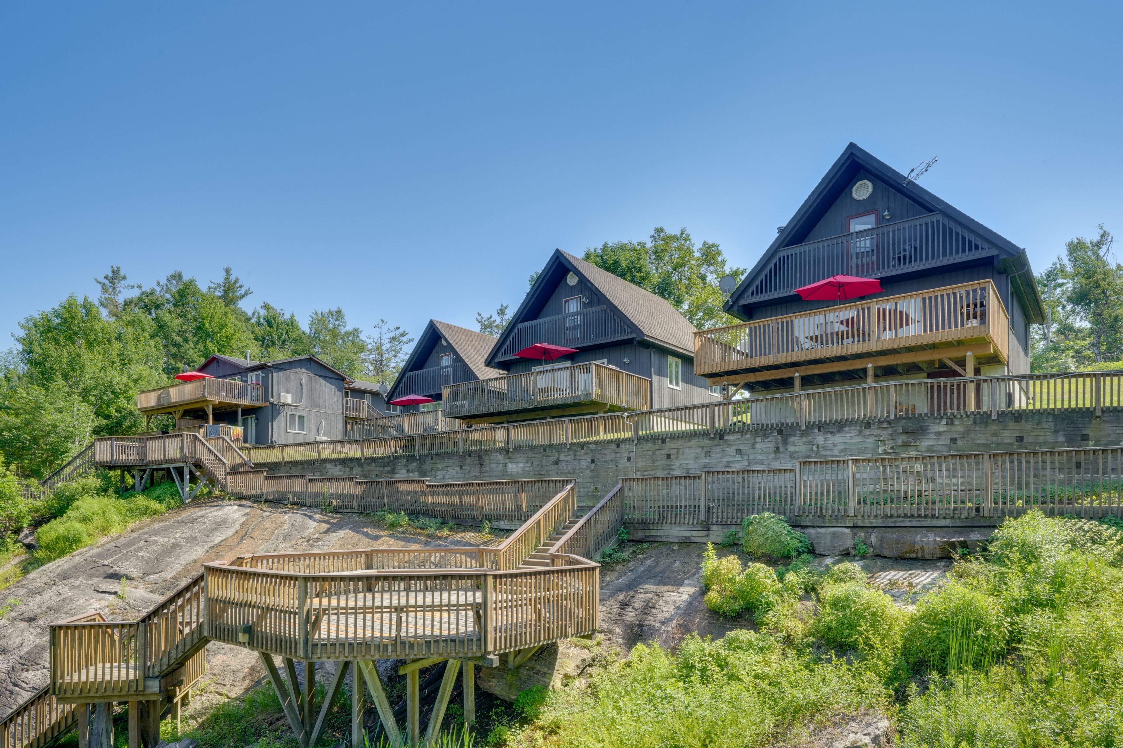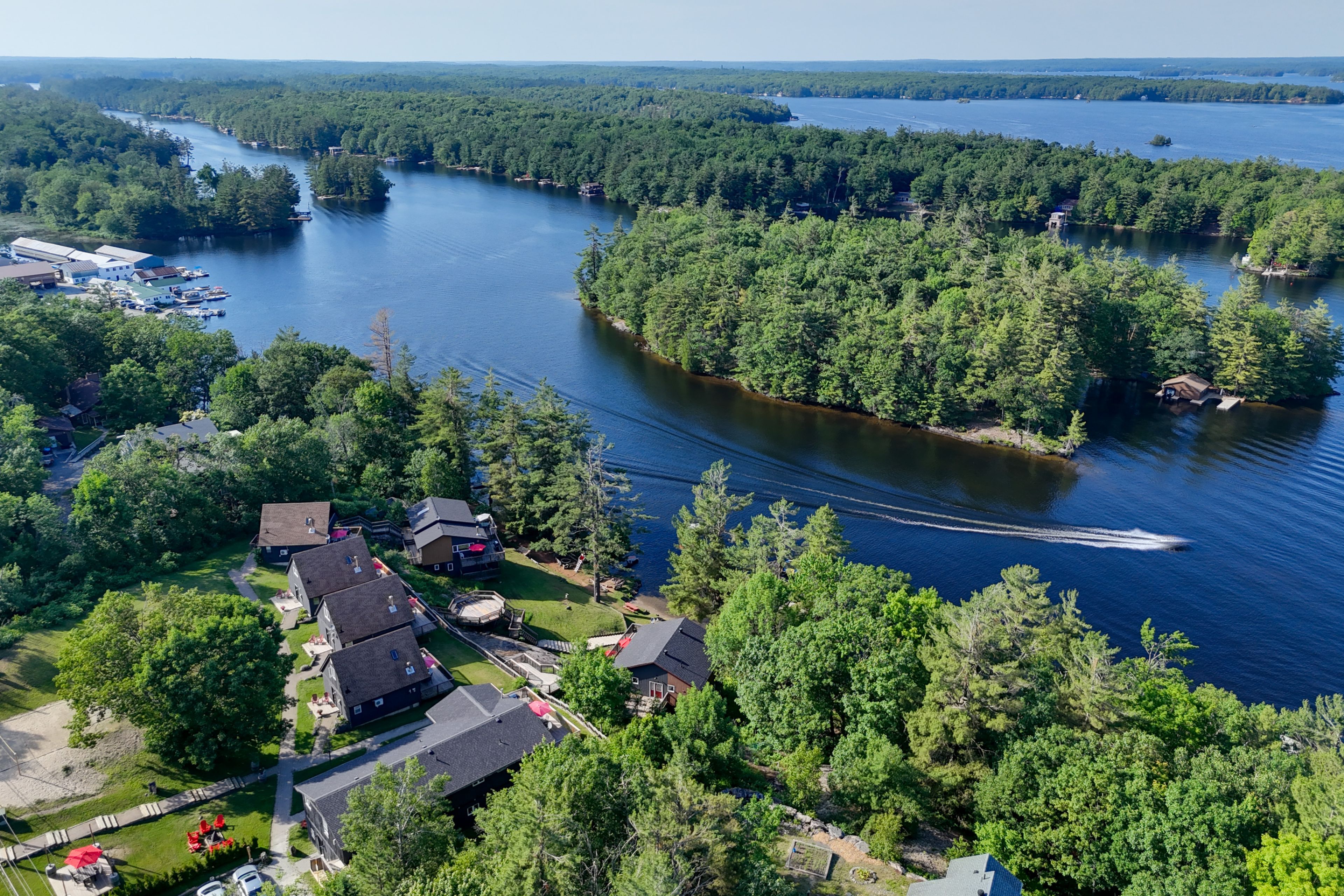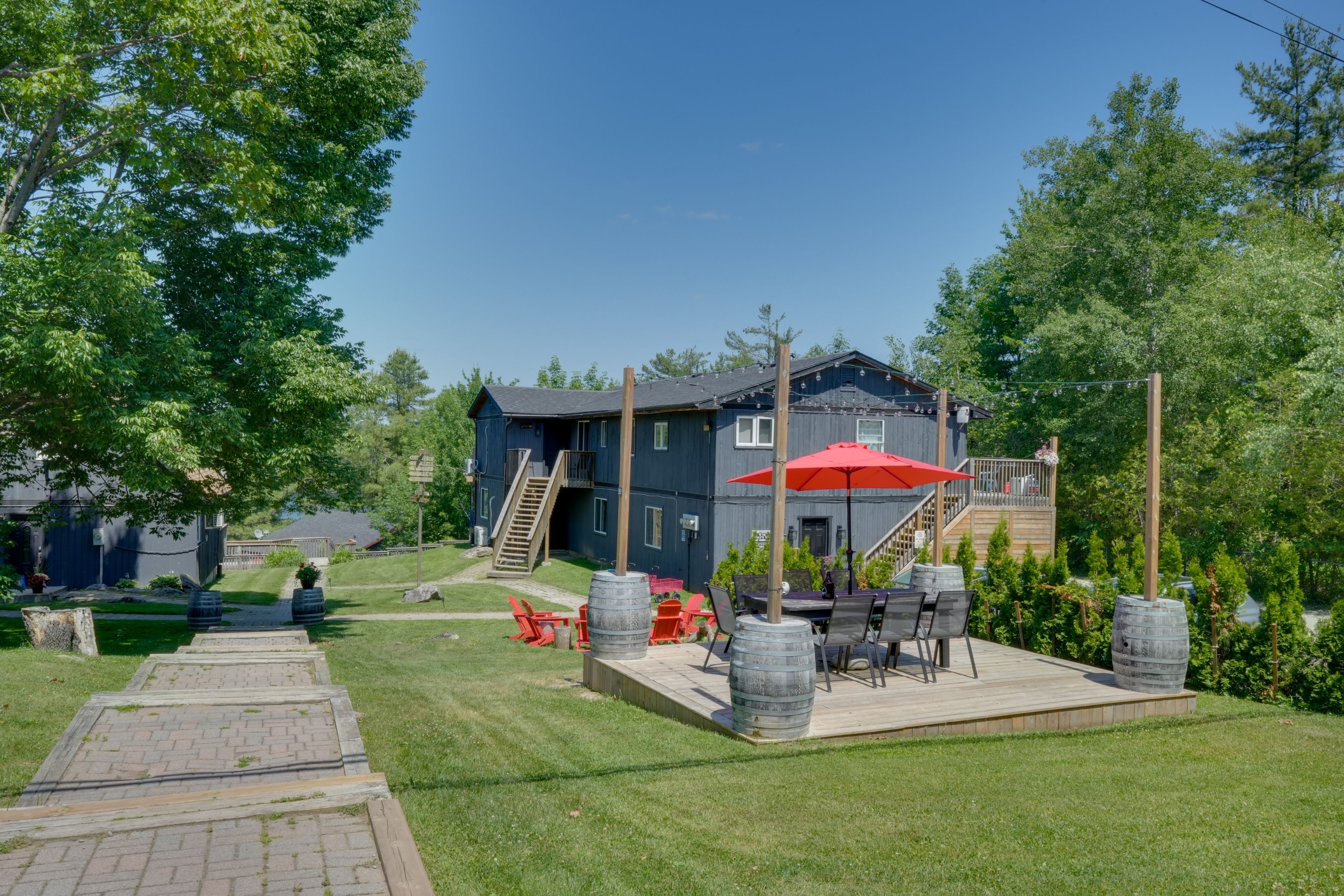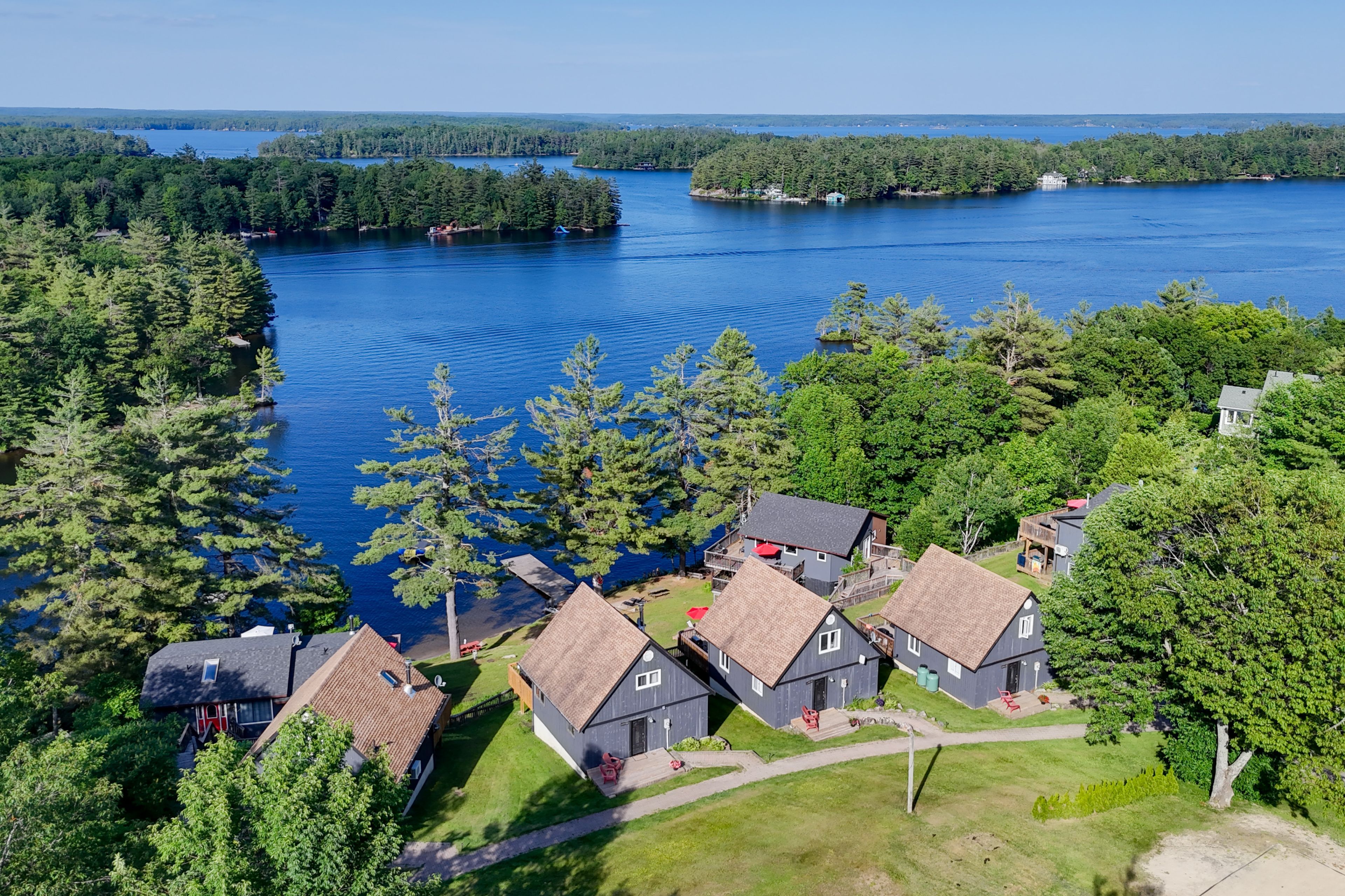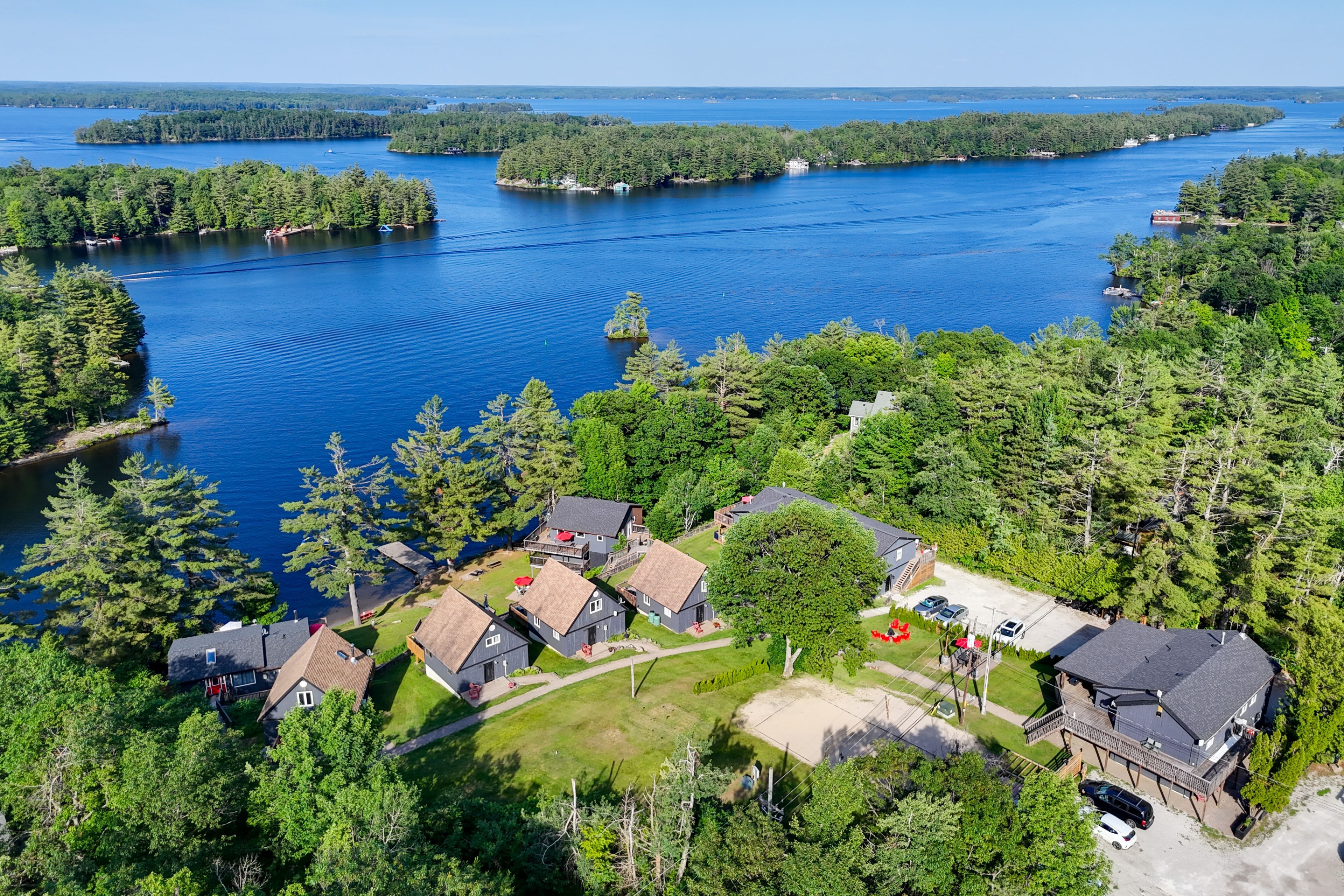 Stunning the chalets on lake muskoka - a lucrative investment opportunity! Discover an incredible opportunity to own a striking property nestled on the picturesque shores of lake muskoka! Spanning just under 3 acres with nearly 500 feet of prime waterfront, this luxury four season resort is designed to maximize both comfort and cash flow while offering breathtaking views. Key features: 8 unique revenue-generating cabins: 4 a-frame chalets: moose, deer, and fox cabins (2 bedrooms each, sleeping 5) and the spacious bear cabin (3 bedrooms, sleeping 8). Muskoka house: a luxurious 5-bedroom retreat that accommodates 14 guests. Cabin house: a large, family-friendly 6-bedroom home that sleeps 16. Loon lodge: a 4-bedroom lodge sleeping 10 guests. Goose and duck cabins: cozy 2-bedroom spaces sleeping 5 each. 65 guest capacity: perfect for family reunions, retreats, and group getaways, accommodating a variety of guest needs year-round. Impressive revenue potential: at full occupancy, this property boasts a staggering $1. 9 million in annual revenue, presenting an outstanding investment opportunity for savvy entrepreneurs looking to capitalize on the thriving vacation rental market. Amenities galore: enjoy the sand beach, swimming dock, water trampolines, and water slide, truly an oasis for guests, generating repeat and referral business. Recent renovations: with $2. 2 million already invested into renovations, you can rest assured knowing that this resort is both modern and well-maintained, ready for immediate operational success. Unlock the upside! Take action now to secure your own piece of paradise! This magnificent property represents not just a place for relaxation, but a smart financial venture with significant upside potential. With its alluring location, extensive amenities, and impressive income capabilities, your dream of owning a successful luxury resort awaits! Don't miss out on this rare chance to invest in one of ontario's most sought-after destinations.