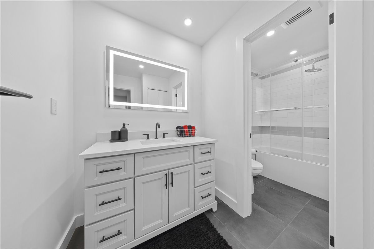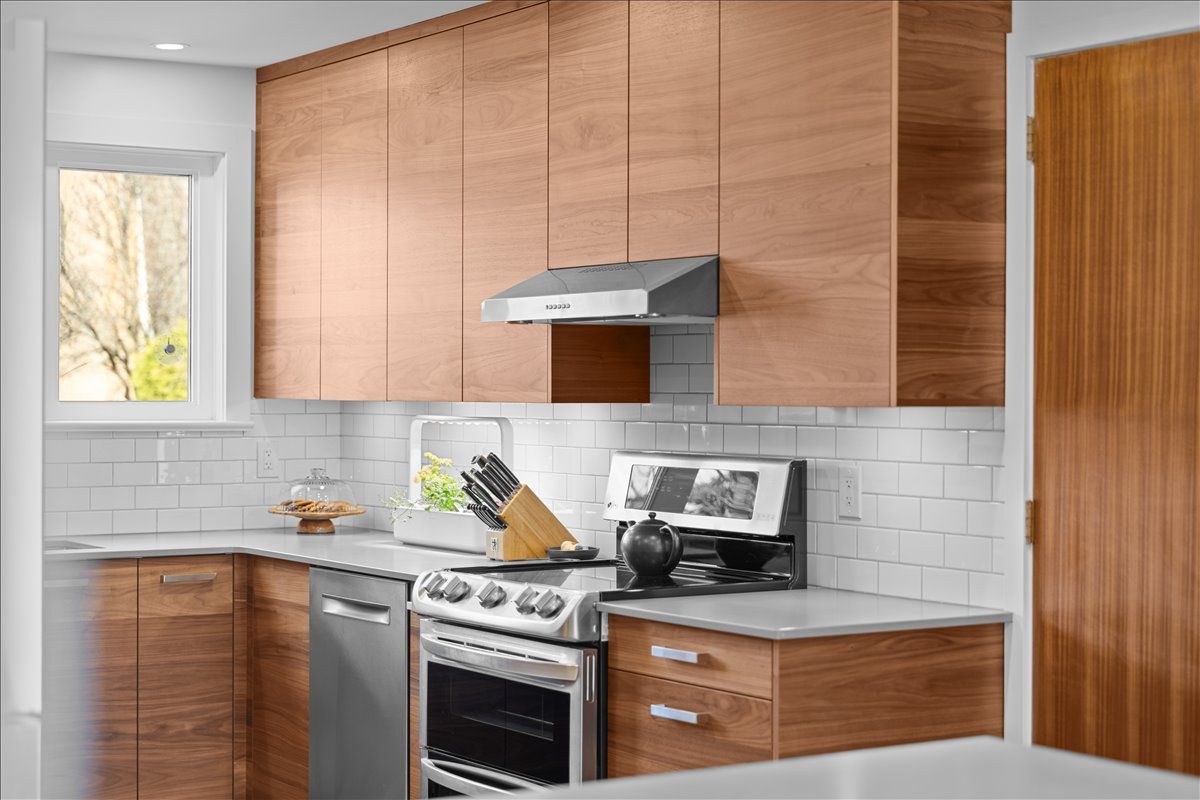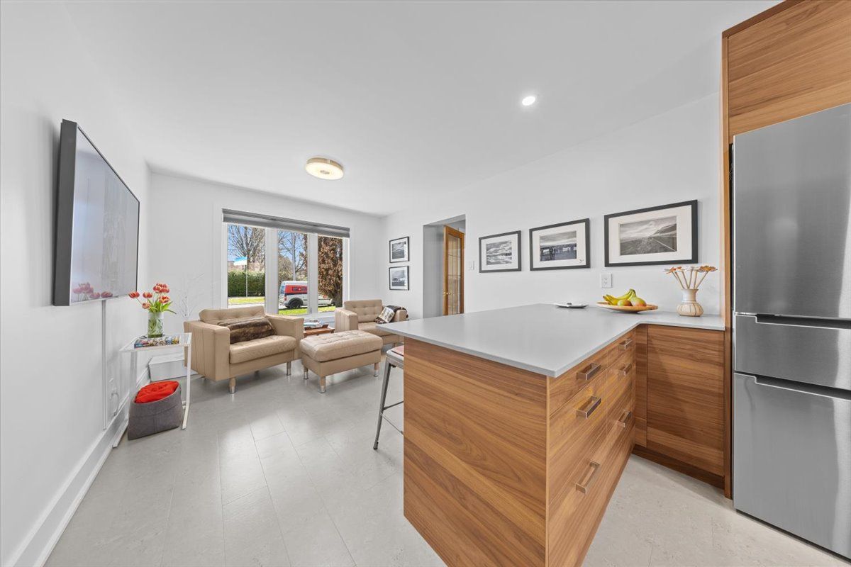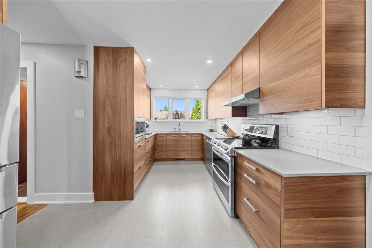• Updated kitchen featuring quartz countertops and stainless steel appliances.