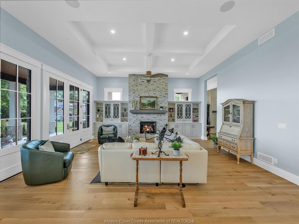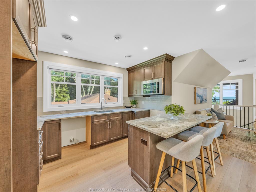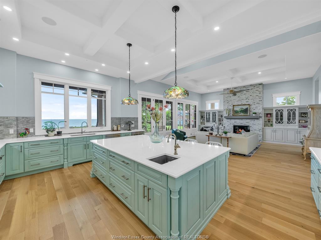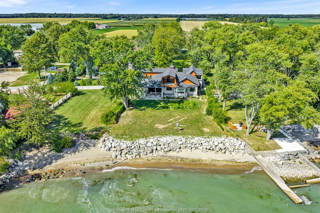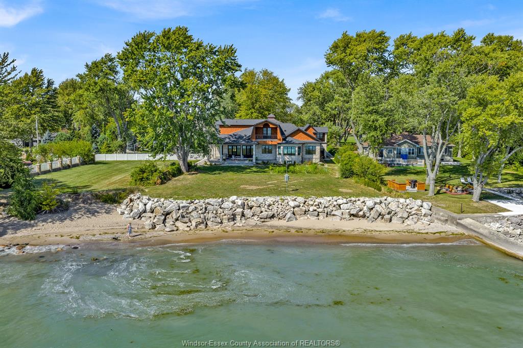 hamptons-style living finished with natural indiana limestone stones and pillars. Set on an extraordinary 102' waterfront lot with sandy beach and armor stone shoreline, this residence isas much a retreat as it is a home. Spanning over 7,500 square feet across three distinct living areas, the property offers both grand