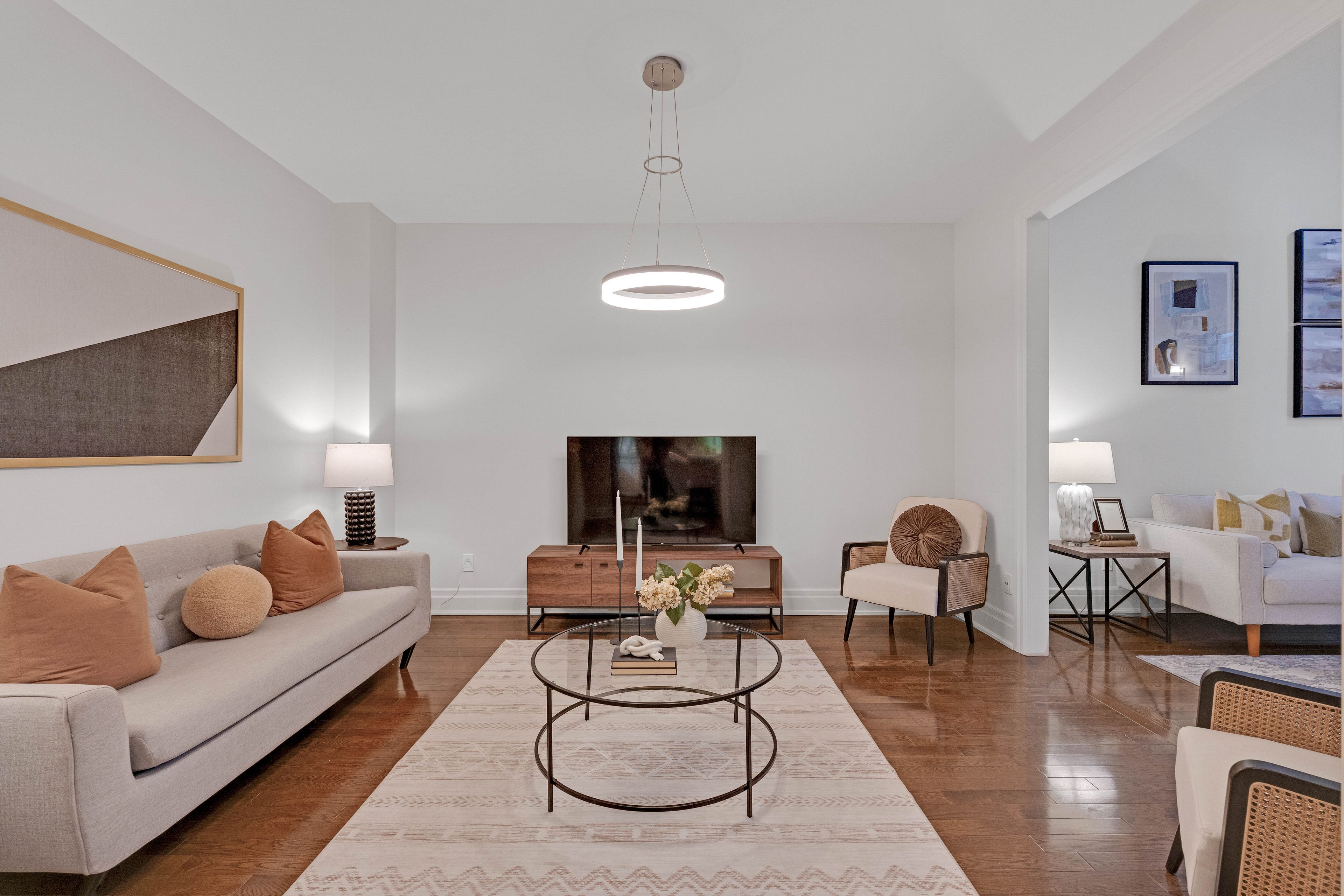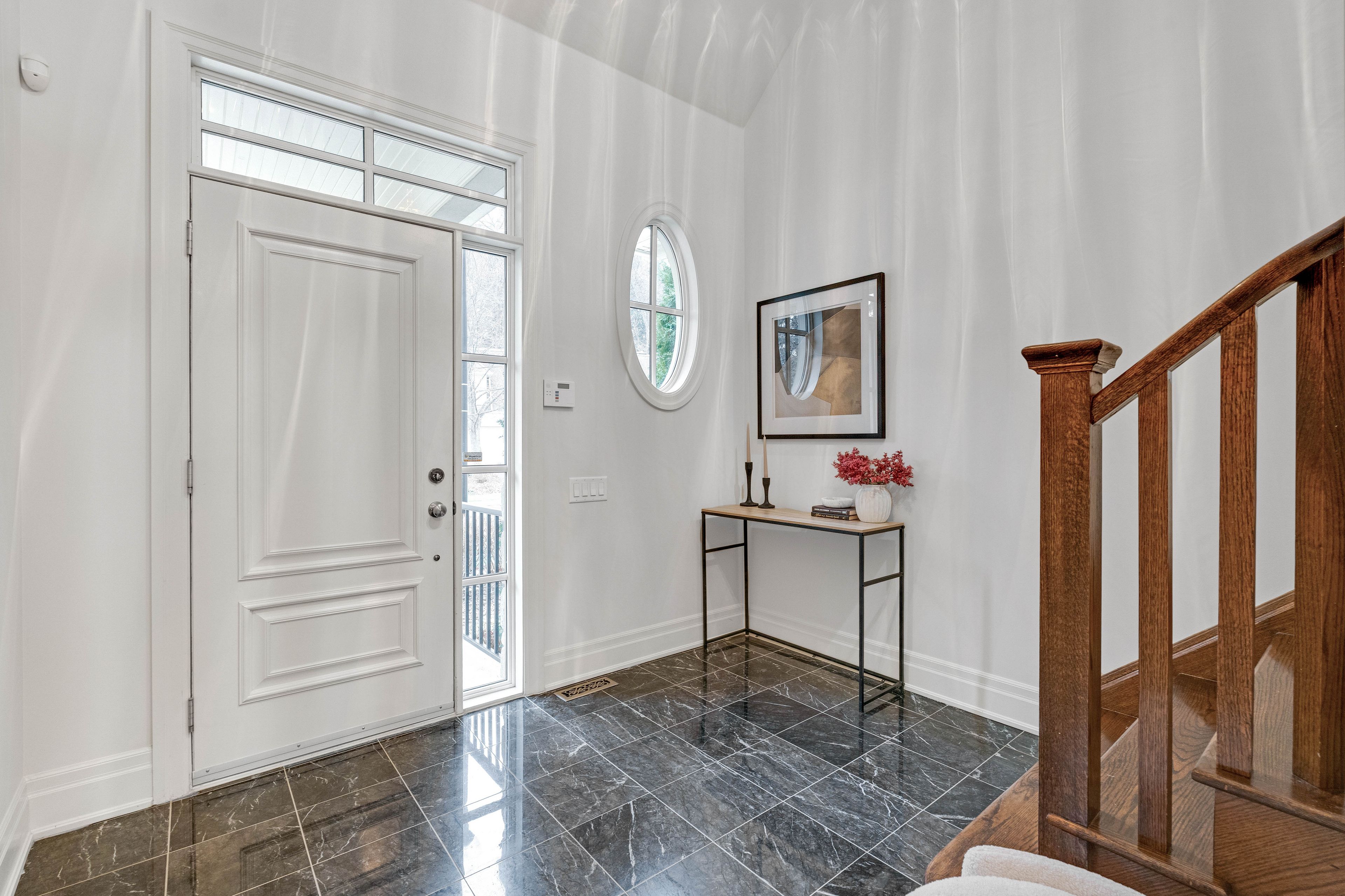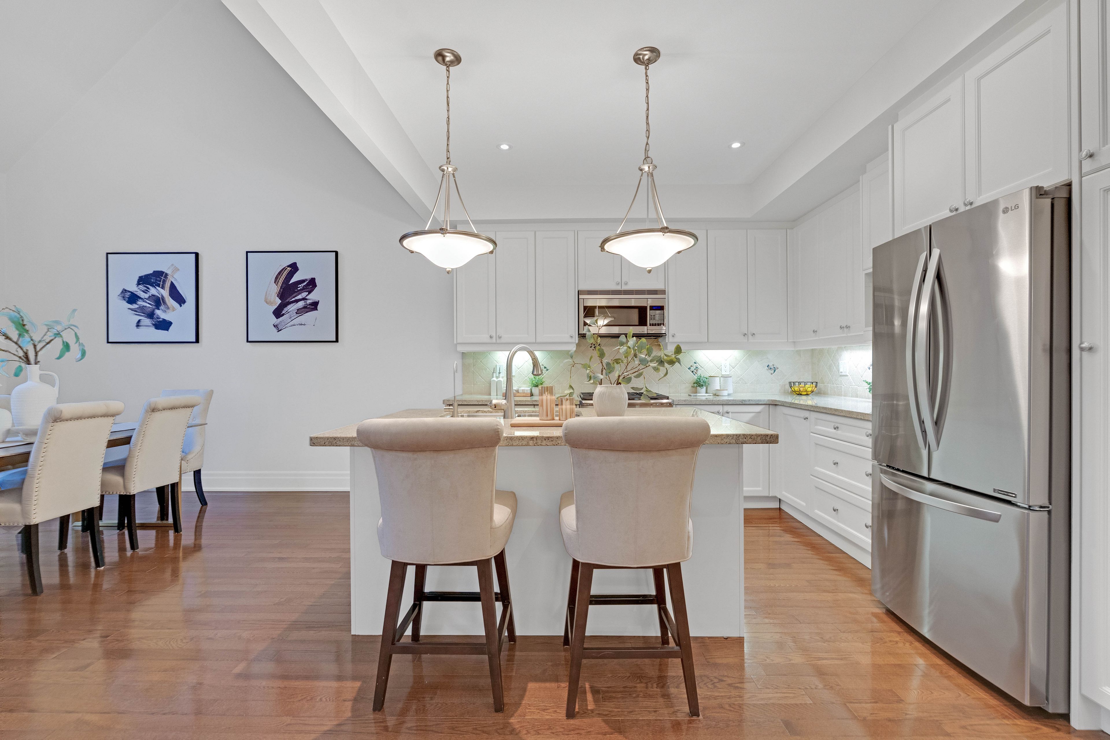 • Dramatic two-storey windows create bright and welcoming living spaces.