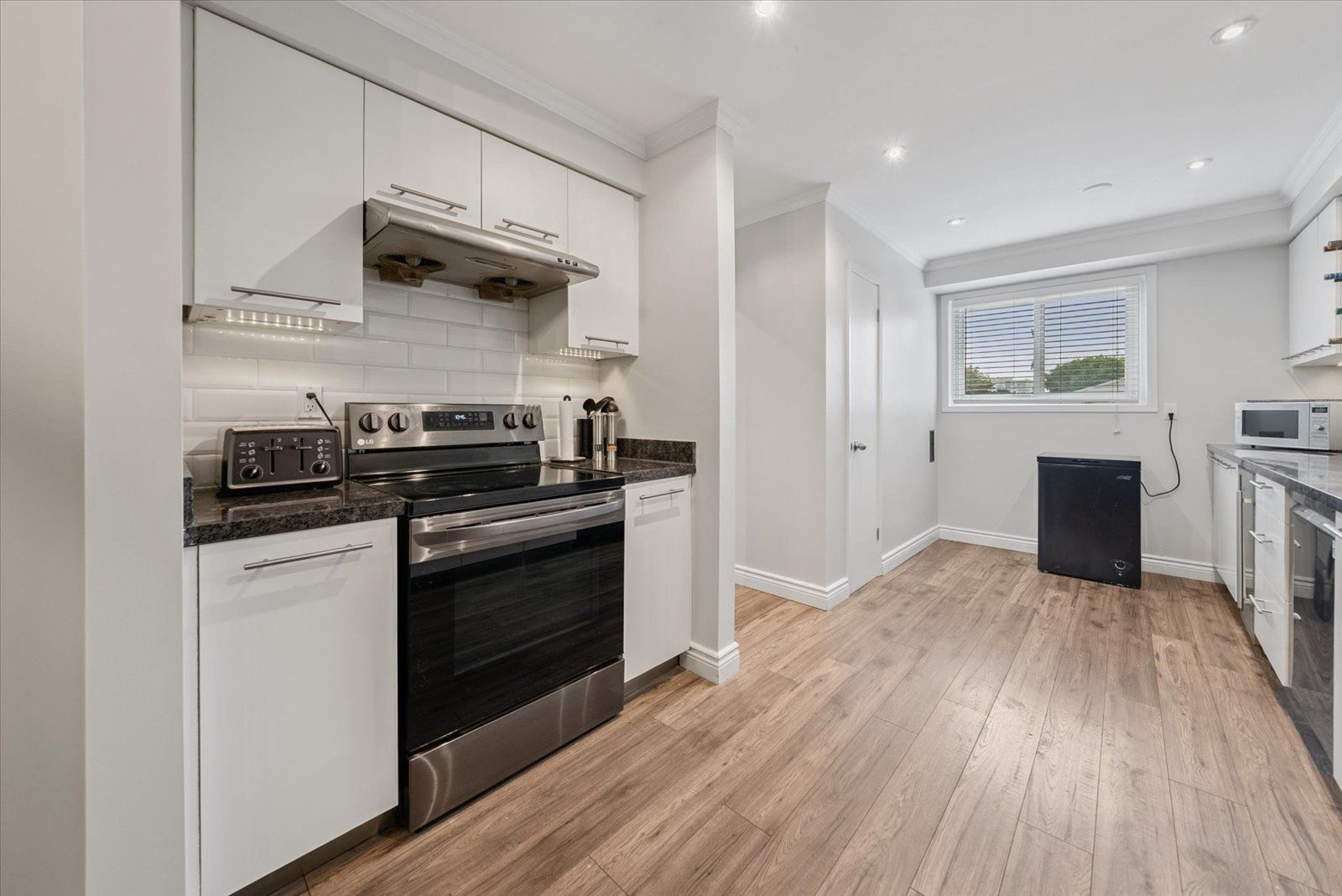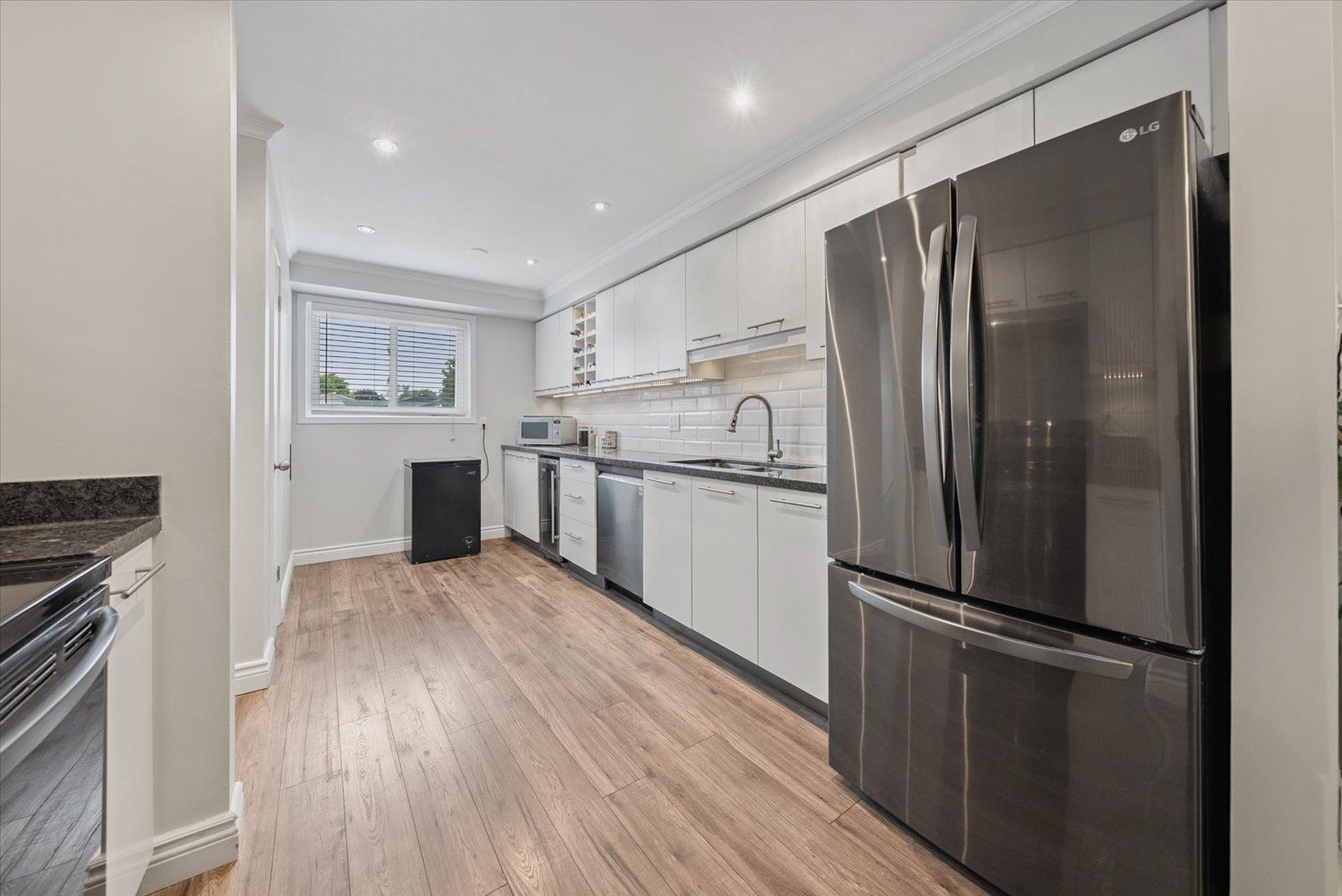 • Updated kitchen with granite counters, stainless steel appliances, and wine fridge.