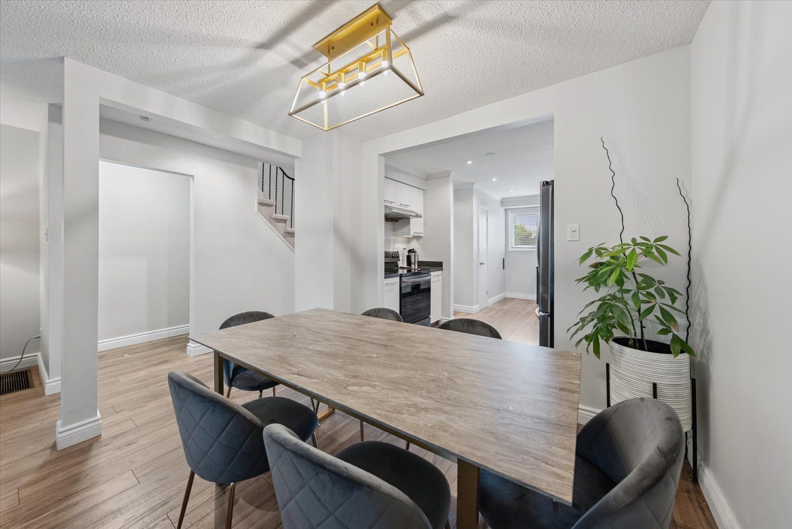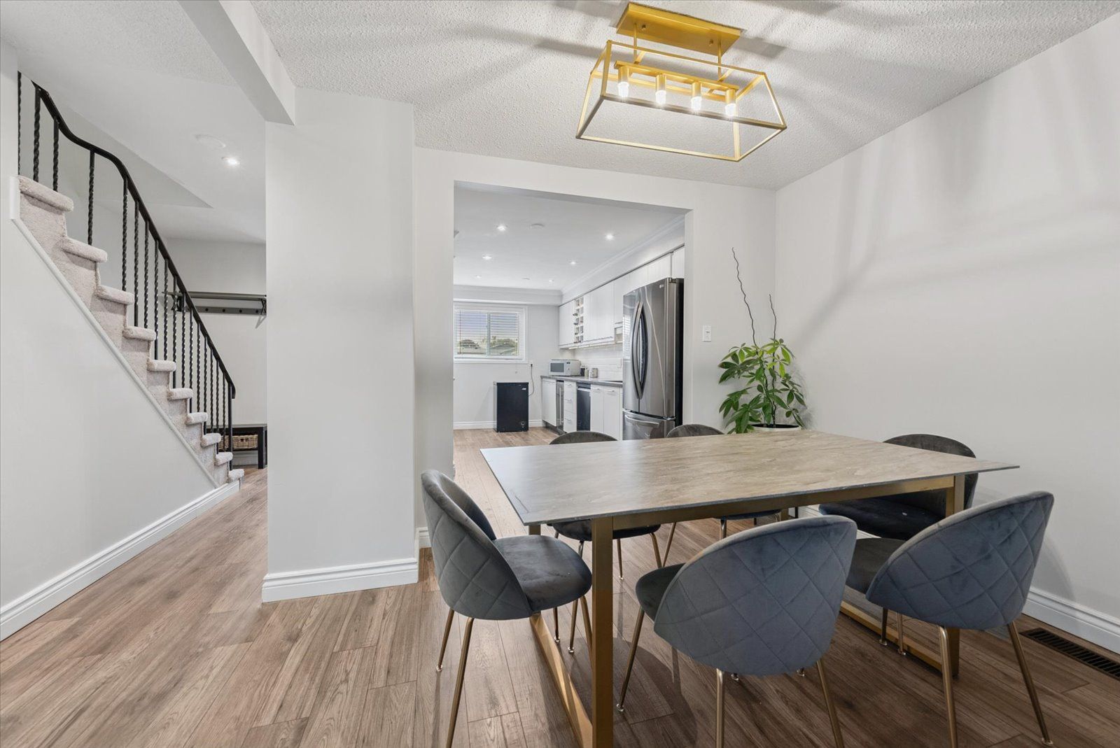 Welcome to this move-in ready townhome in the highly sought-after pickering village east community. Unlike many similar townhomes, this one has with efficient forced air heating and central air conditioning ensuring comfort in every season and reasonable utility costs. Bright and inviting, its been updated with modern finishes that will impress even the most selective home buyers. The main floor features stylish updated flooring throughout the open-concept living and dining areas, along with the kitchen, creating a warm and cohesive space. The kitchen is beautifully appointed with granite counters, an under-mount sink, newer stainless steel appliances, a wine fridge, pot lighting, and an abundance of cupboards for storage ideal for both everyday cooking and entertaining - it's one of the nicest condo townhouse kitchens i've seen! Upstairs, you'll find three spacious bedrooms with large closets and custom organizers. The finished basement offers even more living space with a walk-out to a private, fenced yard and patio, perfect for relaxing or hosting gatherings. This is truly a low-maintenance property lawn care is handled by the property management company, leaving you more time to enjoy life. The central pickering location is unbeatable, with shopping, parks, playing fields, the 401, and the pickering go station all just minutes away. Don't miss the video tour - this home is a must-see!