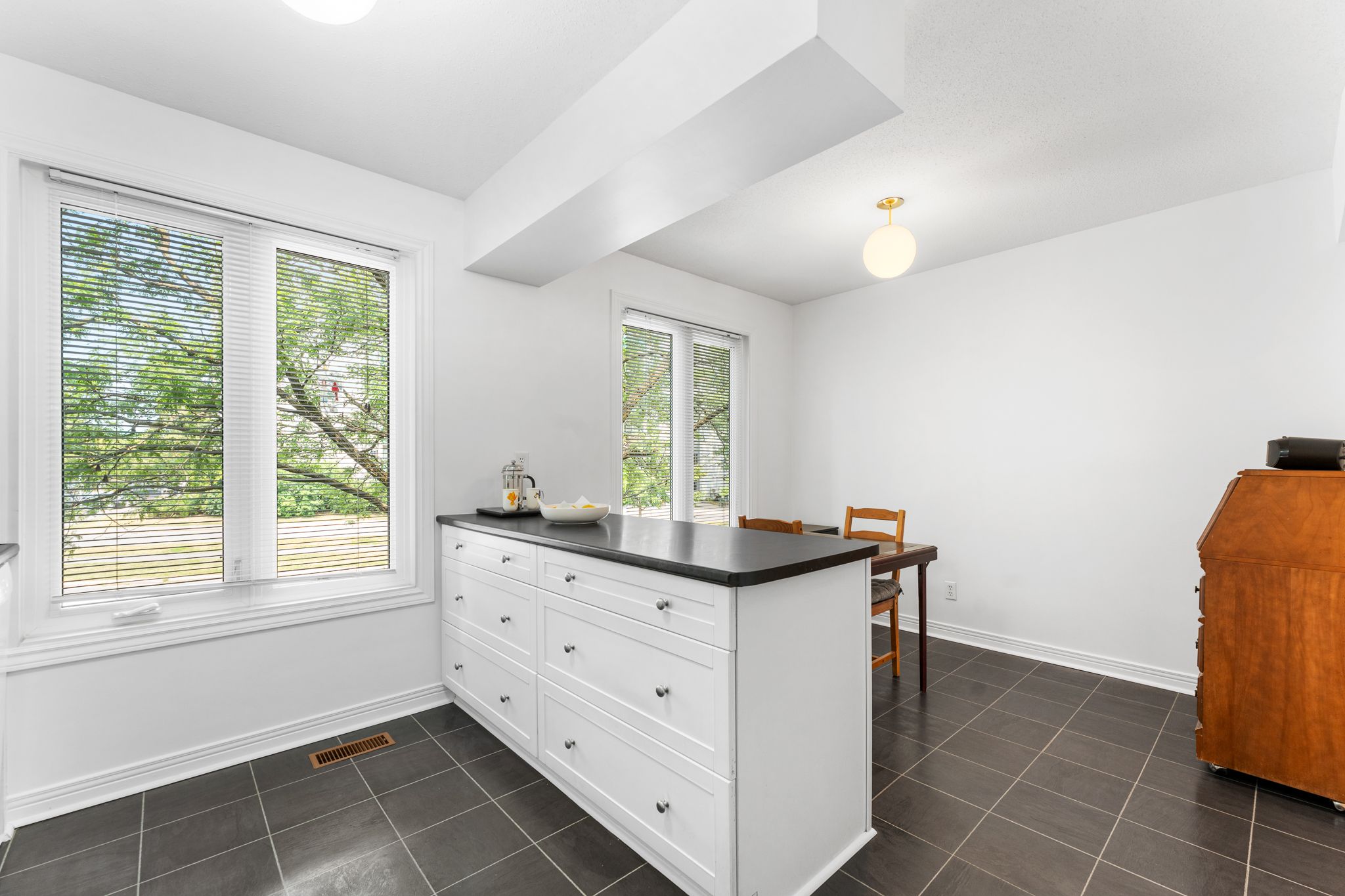 • Bright ground floor family room with access to a fenced backyard.