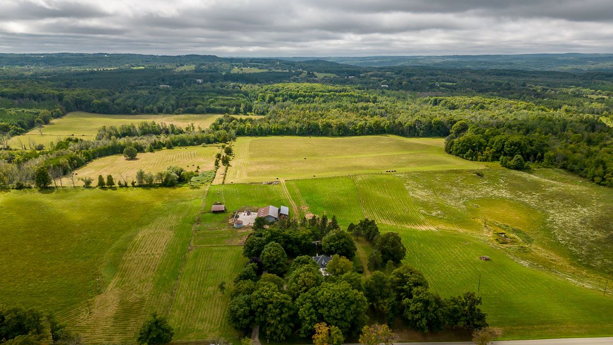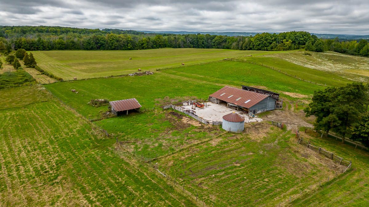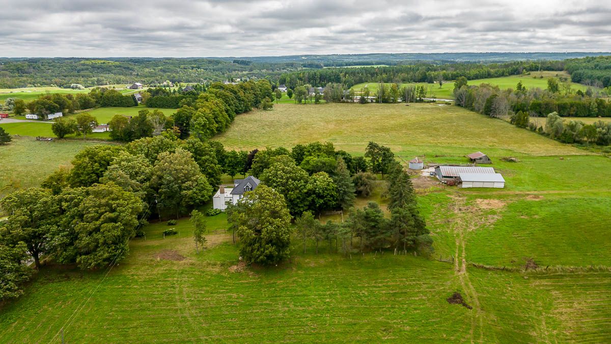 Exceptional 100-acre farm in south adjala, surrounded by estate properties and just minutes from caledon. Features gently rolling farmland with approximately 25% mature mixed forest and an impressive 2,000 ft frontage with no severances. The property includes a spacious, updated farmhouse with additions, a cattle barn, and a concrete barnyard. Motivated sellers offering a short closing opportunity.
