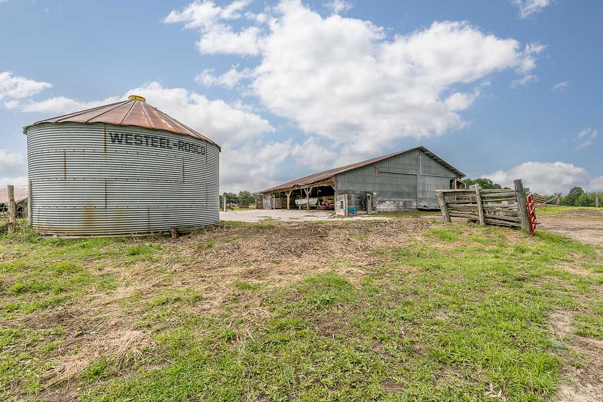 • Cattle barn and concrete barnyard for farming activities.