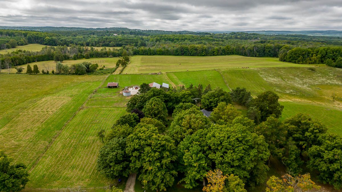 • 100-acre farm with a mix of farmland and mature forest.