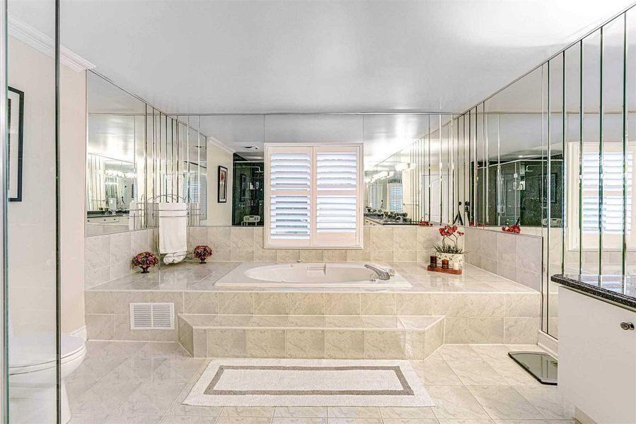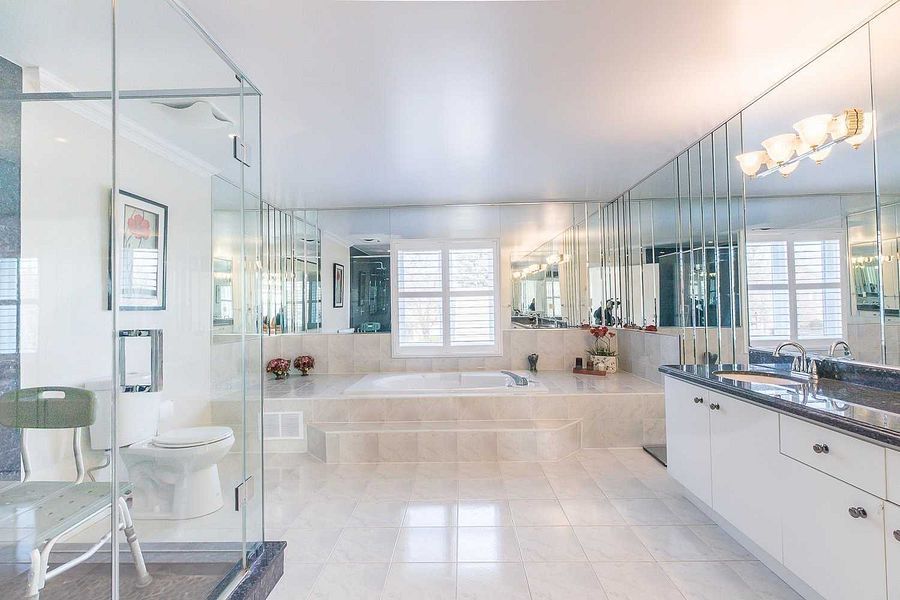 Great opportunity to own this masterpiece luxury home in central mississauga ** premium 225 ft deep corner lot home off high demand intersection of mississauga rd/ eglinton ** grand interlocked driveway w/ dbl door entry ** approx over 6500 sqft living space. This large executive home located on a quiet court in credit mills features brazilian cherry wood cabinets brazillian cherry wood floors custom deck with a waterfall and concealed lighting premium lot close to hospital shopping and hwy* sun-filled sep living & formal dinning w/bar area* chef kitchen & breakfast area w/ w/o to deck* main flr office* master w/ loft & 5pc ens w/ whirlpool tub*updated kitchen with brazilian cherry wood cabinets brazillian cherry wood floors custom deck with a waterfall and concealed lighting premium lot close to hospital shopping and hwy. Previous taken photos are in the mls.