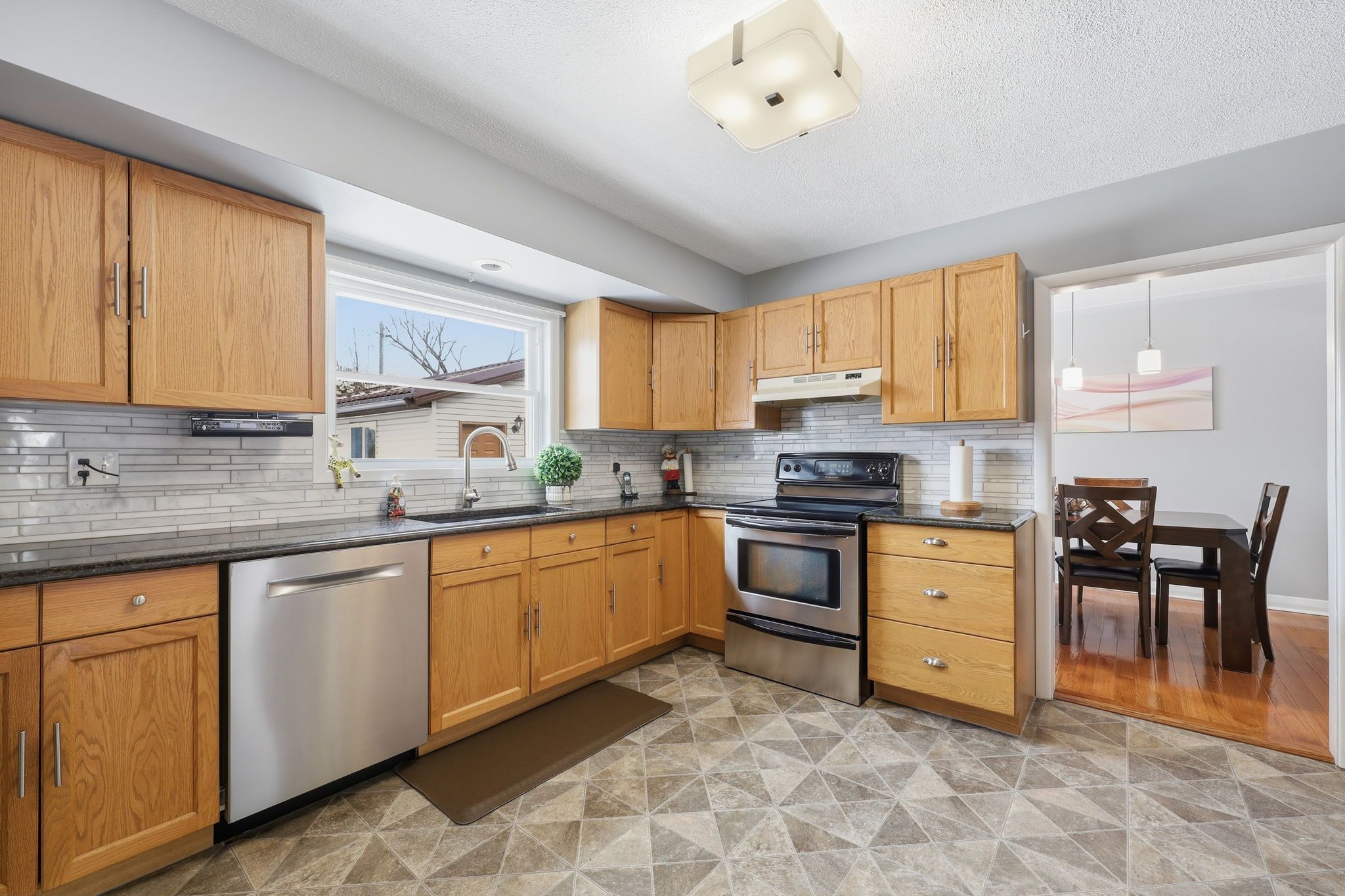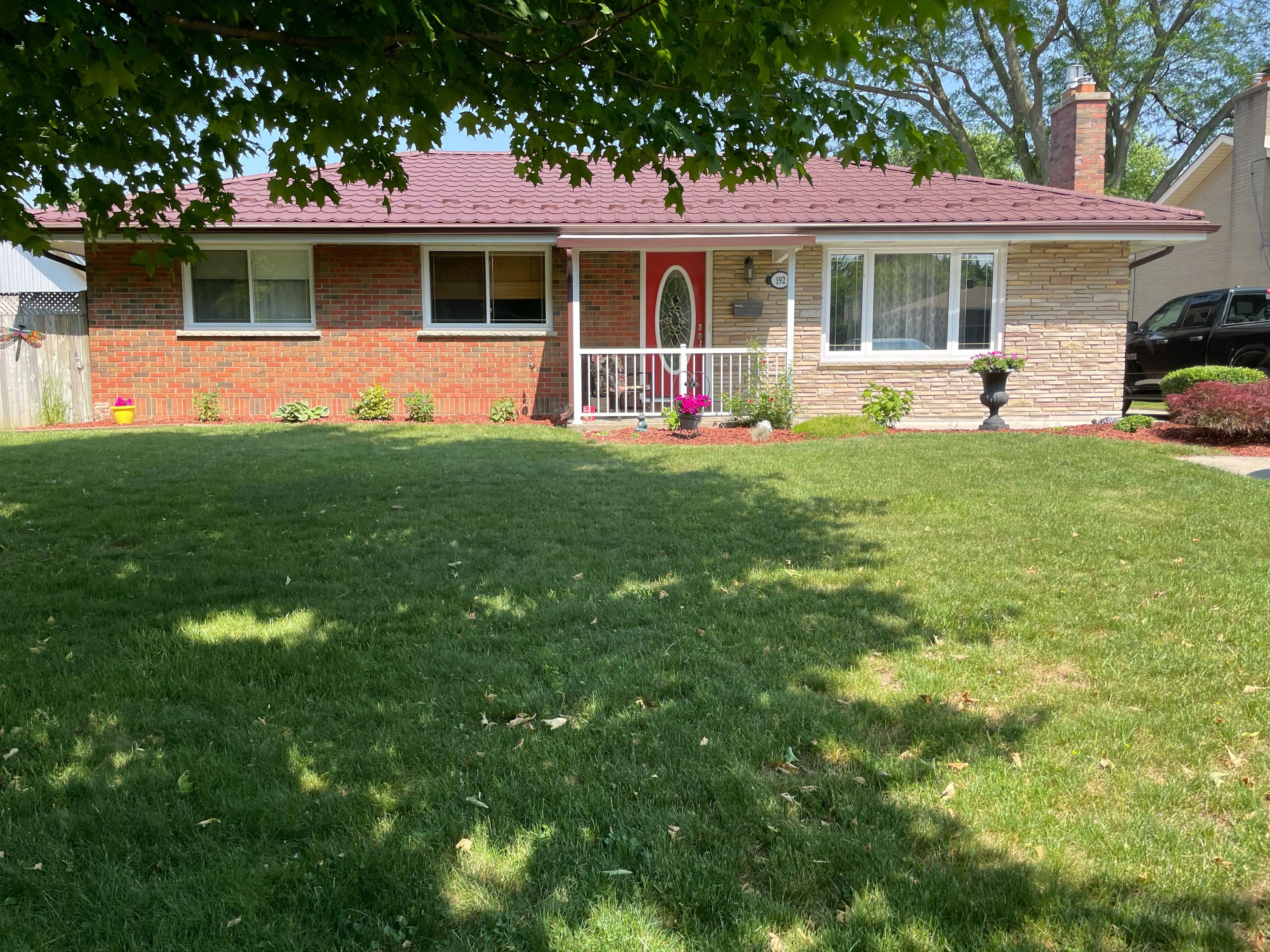 Welcome to 192 buckingham st in desirable south east london - a beautifully updated, impeccably maintained brick bungalow that blends timeless charm with modern comfort. Exceptional curb appeal begins with a double concrete driveway and inviting covered front porch. Inside, rich hardwood flooring flows through a bright living room anchored by a cozy gas fireplace, while the formal dining room overlooks the lovely backyard through a large picture window. The kitchen is both stylish and functional, featuring granite countertops, stainless steel appliances, and abundant cabinetry with built-in roll outs. Three spacious bedrooms and a tastefully updated 4-piece bath complete the main level. The fully finished lower level expands your living space with a spacious family room, 3-piece bath, two versatile bonus bedrooms perfect for a home office, gym, or guest space, and generous storage in the laundry/utility area. Step outside to your fully fenced backyard retreat showcasing a covered concrete patio, wired hot tub (installed 2020), a garden shed, and an oversized heated single garage (heater installed 2025) with 240v hydro, ideal for hobbyists or extra workspace. Major updates include furnace (2024), some windows (2024), a/c (2021), steel roof on house and garage (2018), gas fireplace (2018), granite counters (2016), concrete driveway & pad (2014) and more (full detailed list of all updates available). Ideally located minutes to highway 401, victoria & children's hospitals, shopping, schools, and trails... This move-in-ready home checks all the boxes!