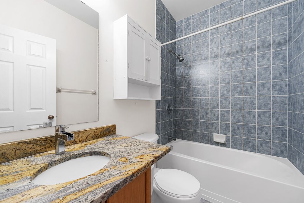 • Open concept kitchen with granite countertops and plenty of storage options.