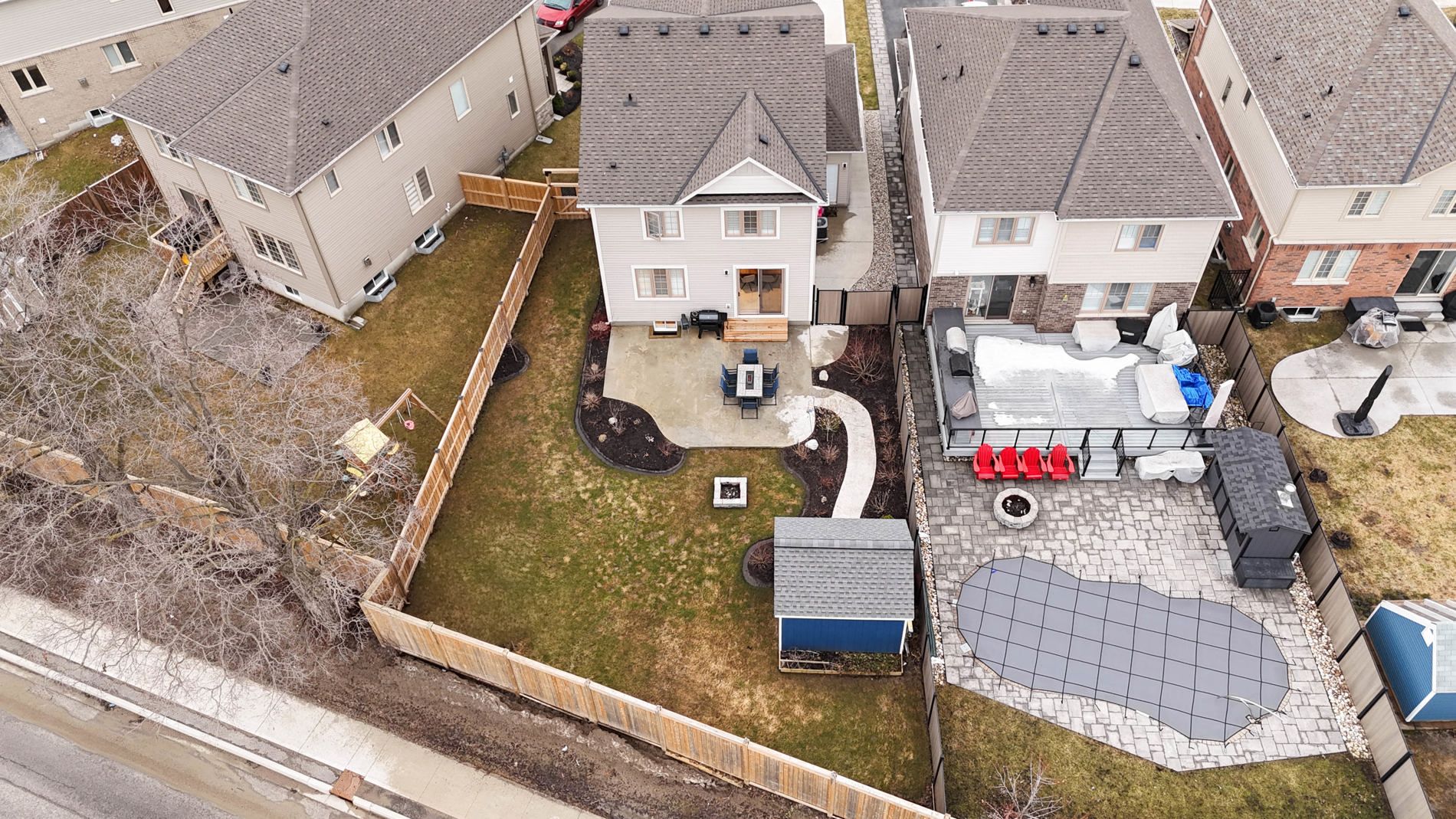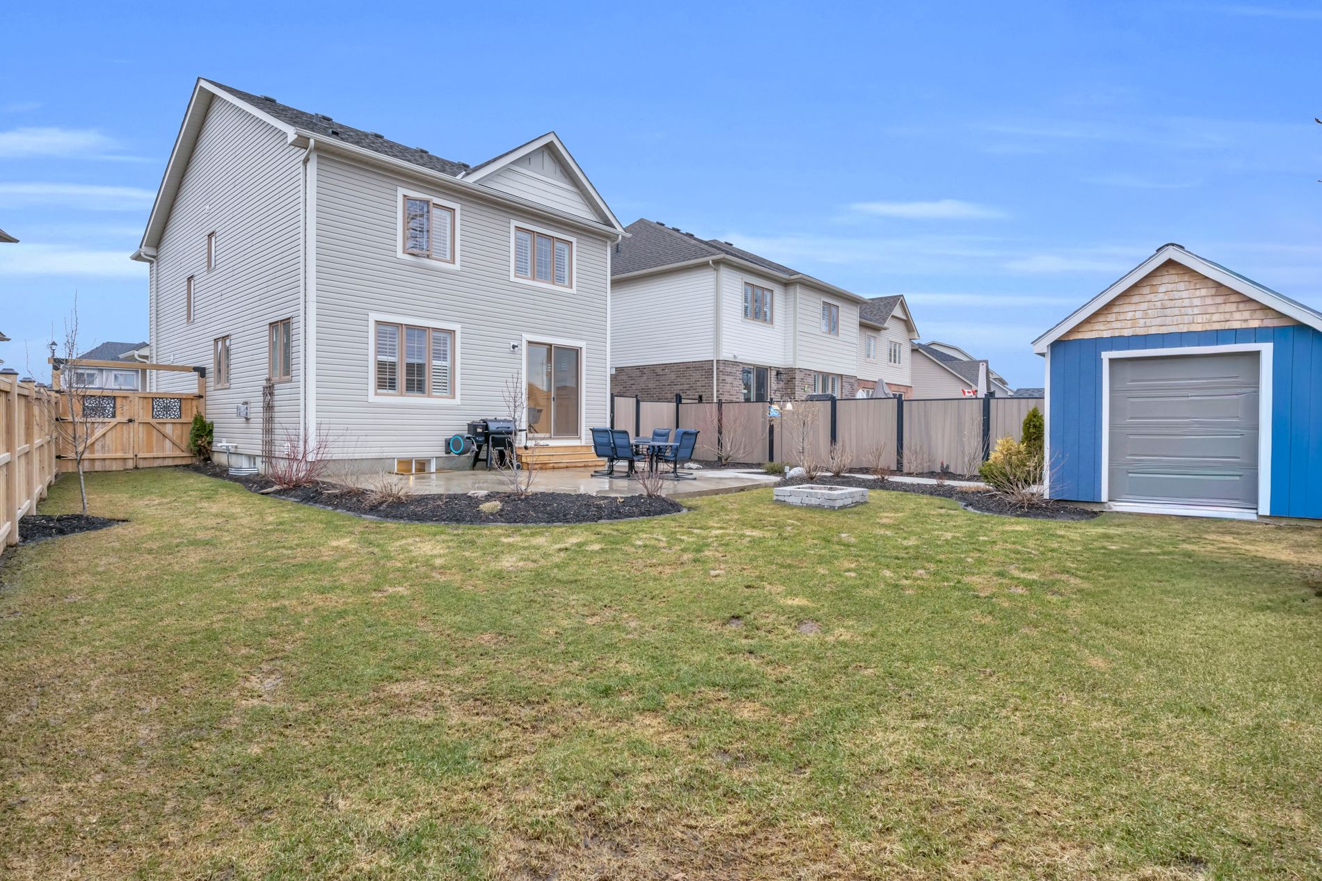 • Fully fenced backyard with patio, shed, and extra parking options.