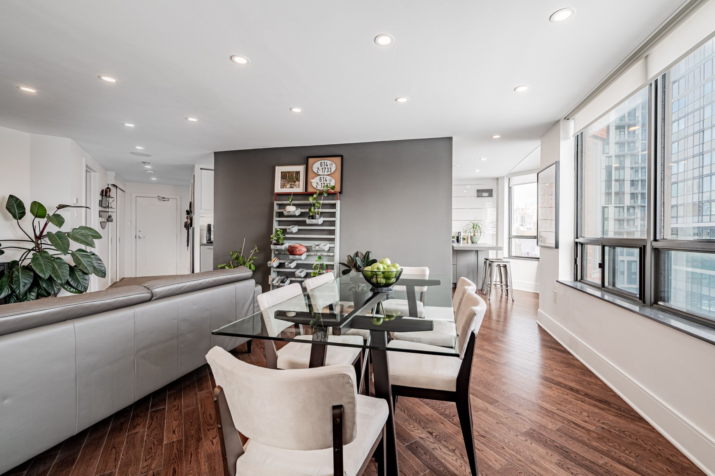An exceptional downtown residence offering space, privacy, and finish rarely found in condo living. Welcome to jarvis gardens: a boutique building, known for long-term ownership and limited turnover in the heart of the city, featuring a fully renovated 2-bedroom, 2-bath home designed for long-term comfort and everyday ease. This suite offers 1,300+sq. Ft. Of interior space with a split-bedroom layout providing true separation of living areas. The open-concept living and dining space is filled with natural light and opens to a large southeast-facing balcony with open city views, ideal for entertaining in luxury or quiet evenings at home. Engineered hardwood flooring runs throughout, complemented by heated tile flooring at the entrance, and clean, contemporary finishes. The kitchen features quartz countertops, premium integrated appliances, a breakfast bar, and a custom laundry area offering quartz counter tops, additional prep space, large sink and storage, a highly functional upgrade. The primary bedroom includes balcony access, custom integrated closets, and a renovated ensuite with heated floors, double vanity, and oversized glass shower with multi-jet shower heads. The second bedroom is generously sized and located beside a full bathroom, suitable for guests, a roommate, or home office use. Jarvis gardens is a quiet, well-managed pet friendly building with only 44 suites and just 4 units per floor. Amenities include rooftop terrace with garden plots, gym and yoga studio, sauna, party room with walk-out patio and bbq, and on-site superintendent. Parking and large ensuite storage included. Steps to st. Lawrence market, financial district, ttc, parks, cafés, and daily essentials. This is downtown living without compromise, offering space, quality, and a layout designed to grow with you.