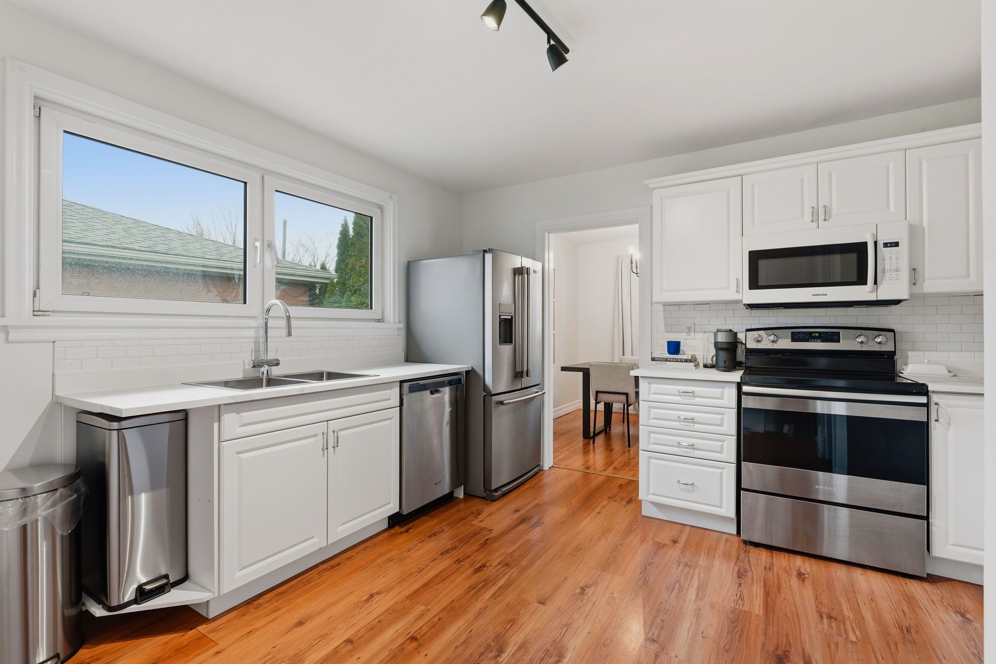Don't miss this incredible opportunity to own a charming and versatile bungalow in a prime peterborough location. 192 mcclennan is ideal for first-time homebuyers, young families, investors, or downsizers seeking both comfort and income potential. This well-maintained home features many fresh upgrades, offering a bright, clean, and move-in-ready space. The main floor features a welcoming open-concept layout with a spacious living area highlighted by large casement windows that fill the home with natural light. Walk out from the front entrance to a cozy porch-perfect for morning coffee or relaxing evenings. The kitchen is equipped with stainless steel appliances and brand new counter tops, while durable laminate flooring runs throughout the upper level for a modern, cohesive look. Convenient main floor laundry adds to the home's practicality. Step outside from the main level to a spacious backyard retreat, complete with a patio area ideal for entertaining, relaxing, or summer dinning, as well as a garden for those who enjoy outdoor living. The built-in garage adds everyday convenience, extra storage, and secure parking. The fully finishing lower level expands your living space significantly, complete with a large recreation room, a full kitchen with pantry, a generously sized bedroom, and a renovated bathroom with integrated laundry. With its separated entrance, this level is perfectly suited for multi-generational living, an in-law suite, or potential rental income. Located in a desirable area of peterborough, this home is just minutes from transit, shopping, school, and parks-offering both convenience and a strong sense of community. A rare find with flexibility, functionality, and income potential-this is one you won't want to miss.